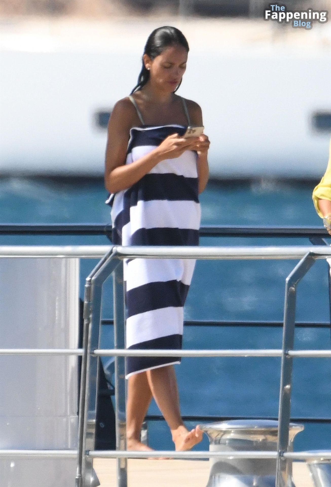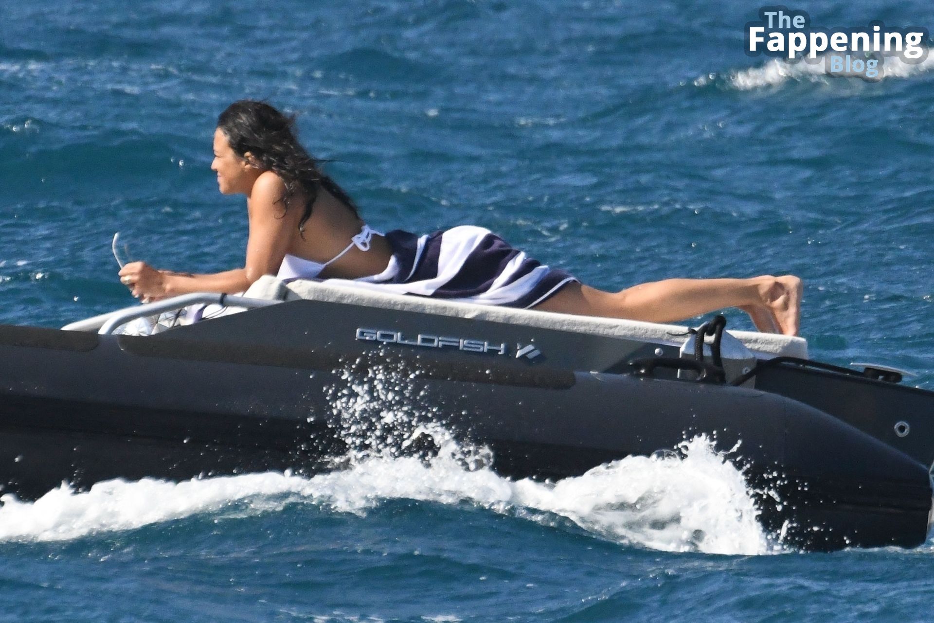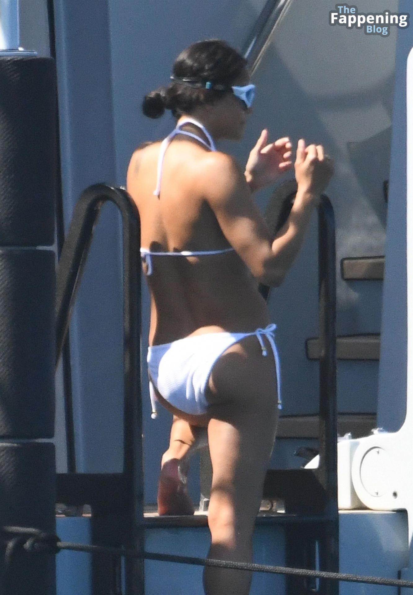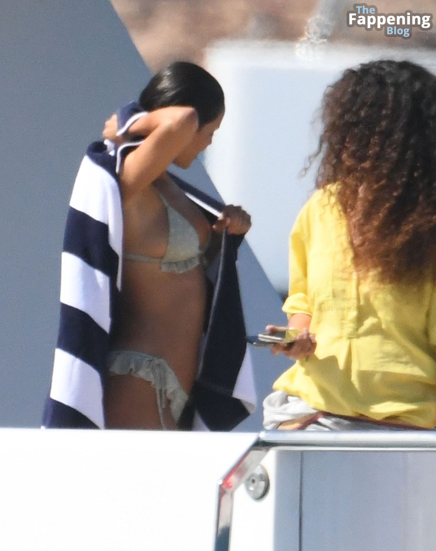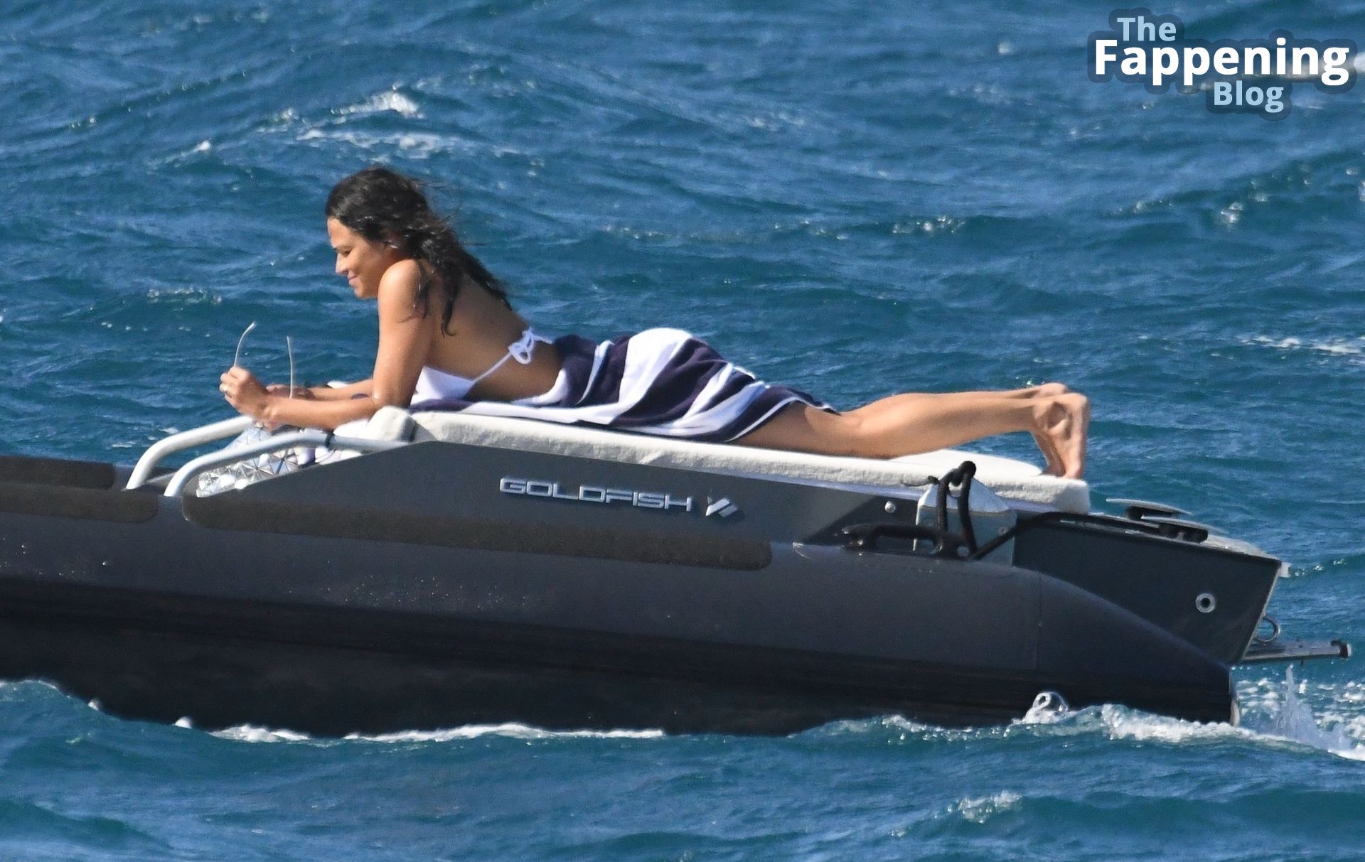 Purtroppo per Michelle, il divertimento con il basket è finito quando la palla è rotolata in mare, ma Eiza è intervenuta in soccorso tuffandosi in acqua per recuperare la palla; poi Eiza è tornata sullo yacht per fare una doccia, mostrando il suo fisico sexy.