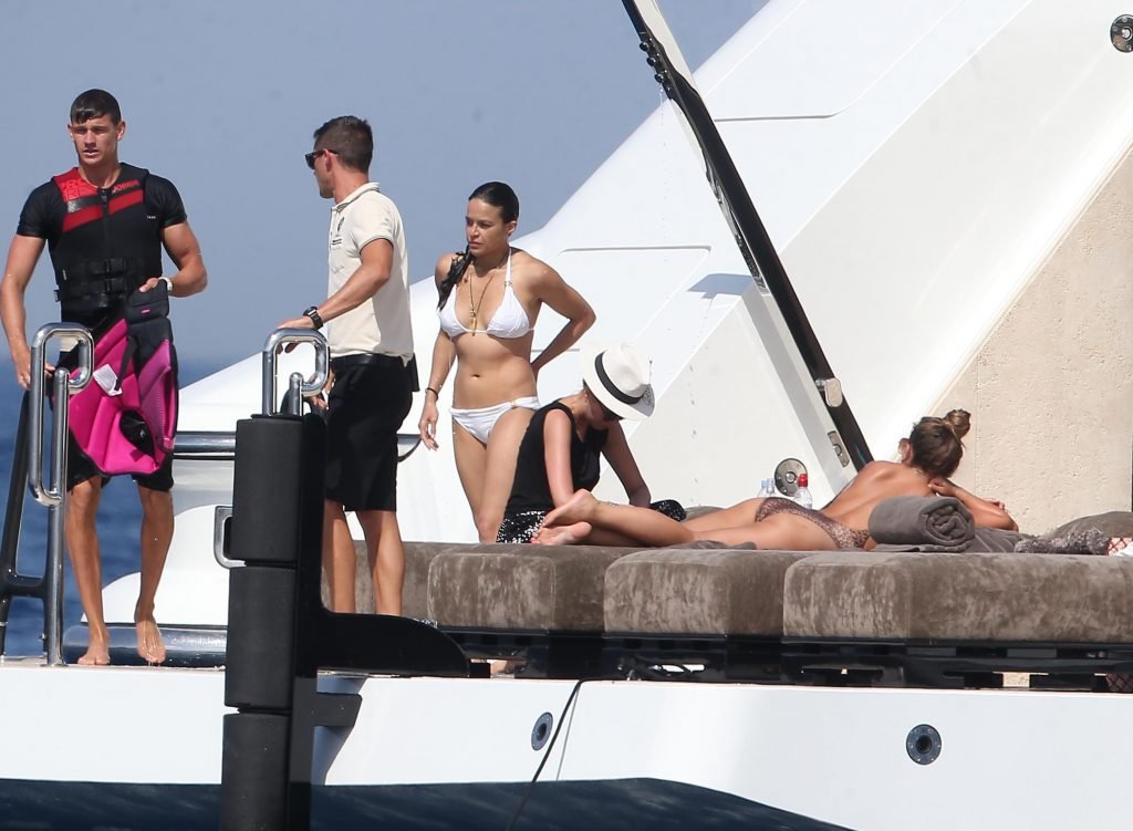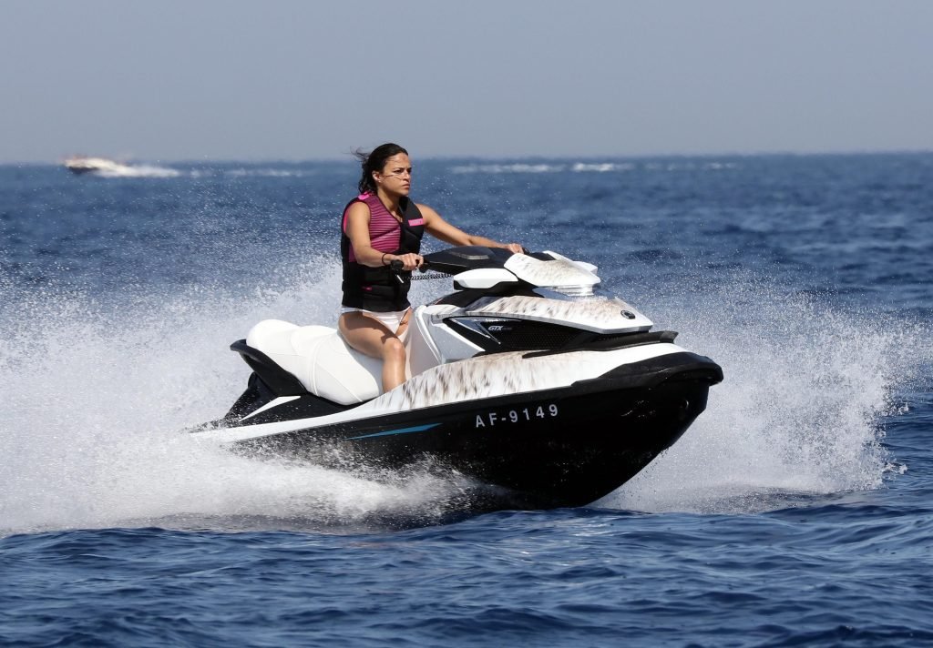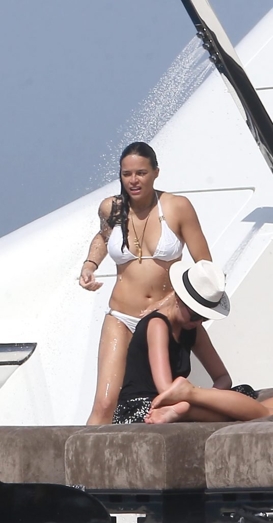 Michelle Rodriguez si gode un bel momento durante le vacanze a Saint-Tropez, 07/08/2017. Michelle Rodriguez è un’attrice americana (The Assignment (2016)), sceneggiatrice e DJ. Età: 38.