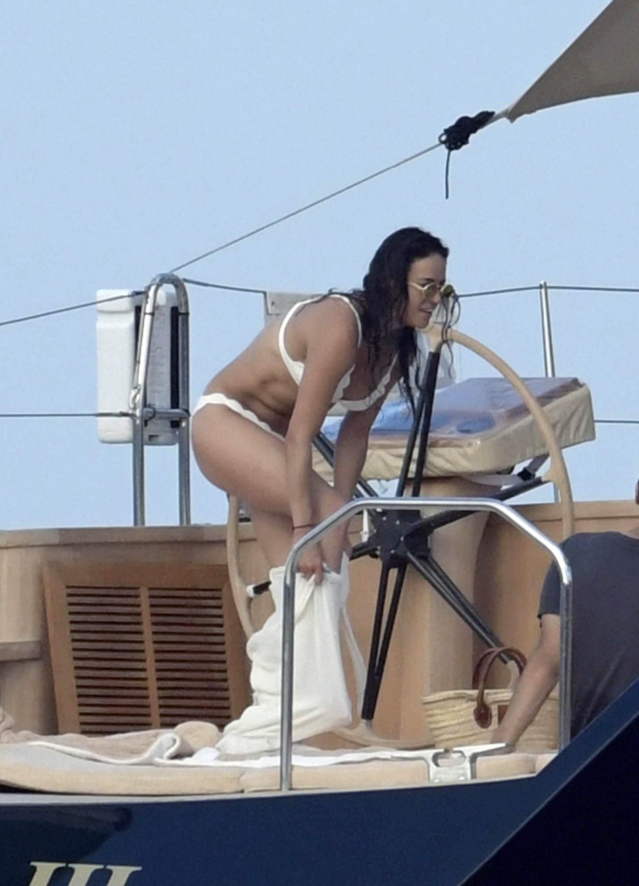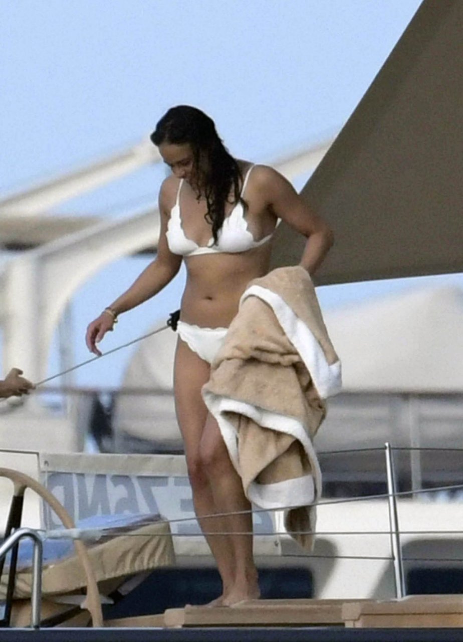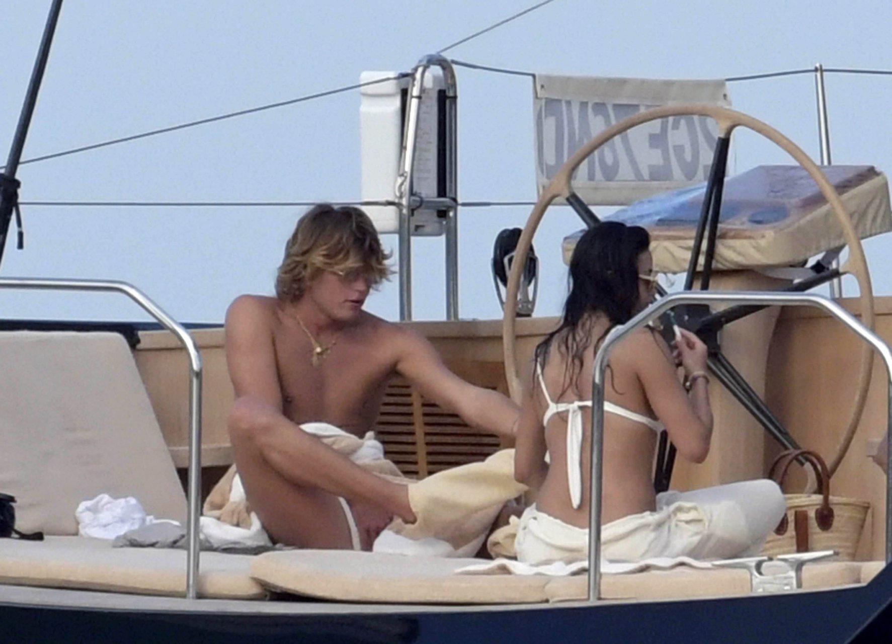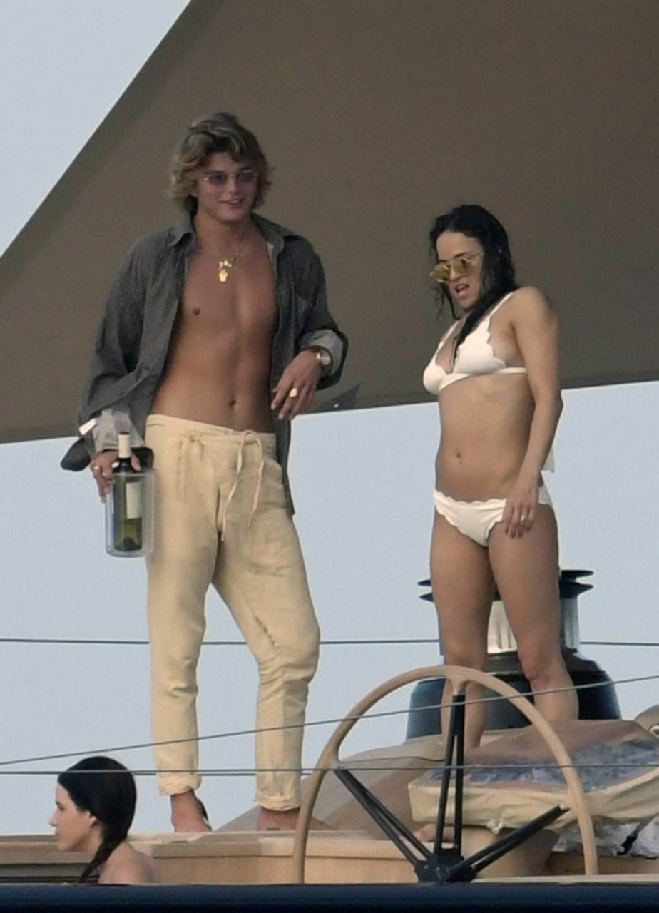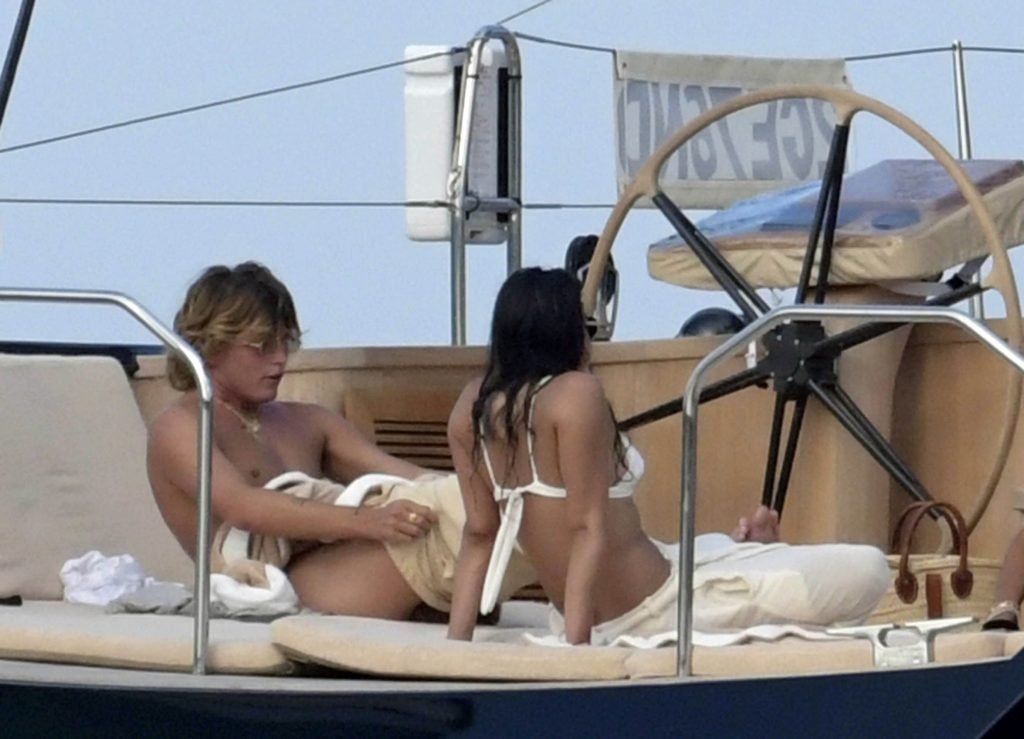 Una Michelle Rodriguez mozzafiato mostra il suo corpo in bikini insieme al modello australiano Jordan Barrett su uno yacht in Sardegna, 08/08/2018. La coppia è stata vista mentre si godeva del vino bianco sulla loro barca.