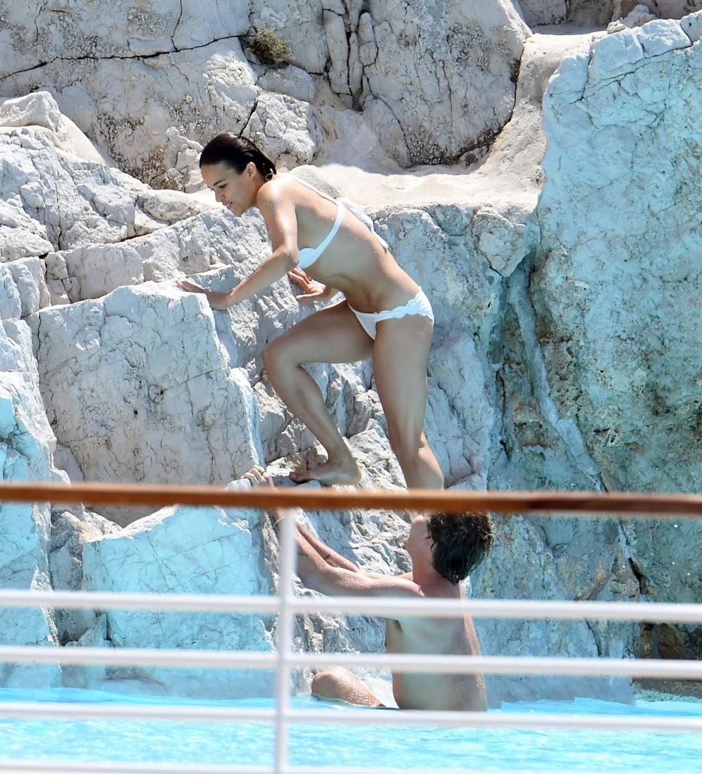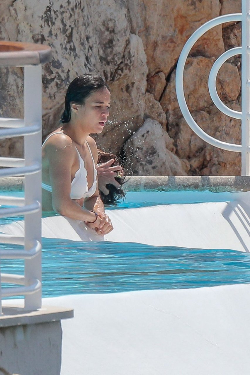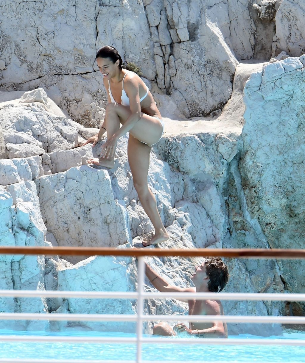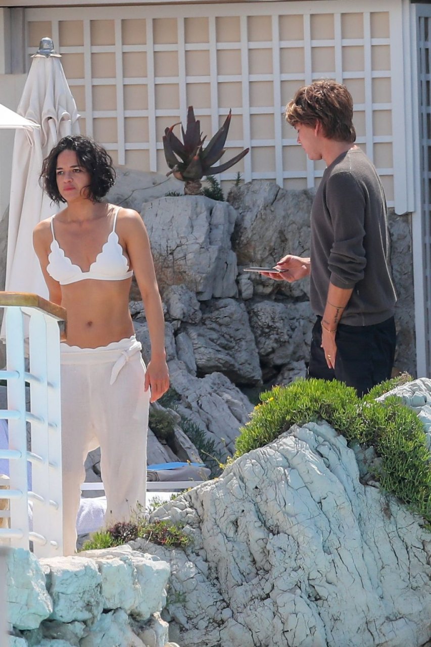 L’attrice Michelle Rodriguez è stata fotografata mentre mostra il suo corpo tonico in bikini mentre si gode una nuotata con il modello di moda australiano Jordan Barrett presso l’Hotel du Cap-Eden-Roc a Cannes, 22/05/2019.