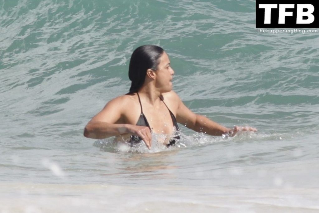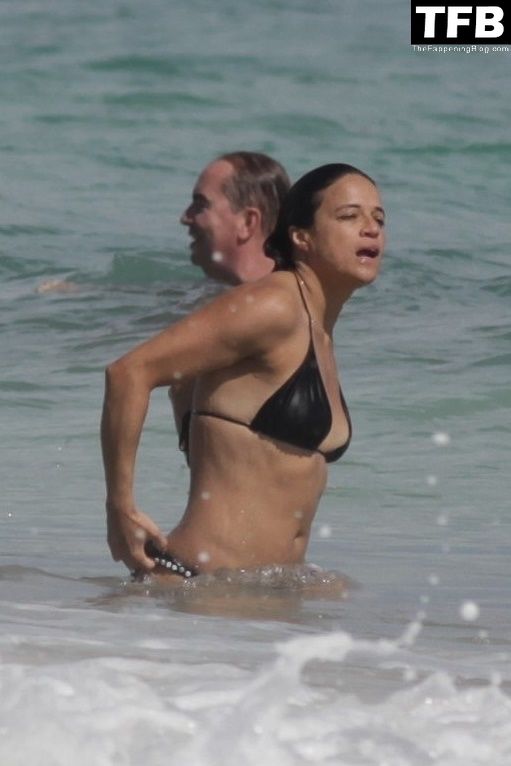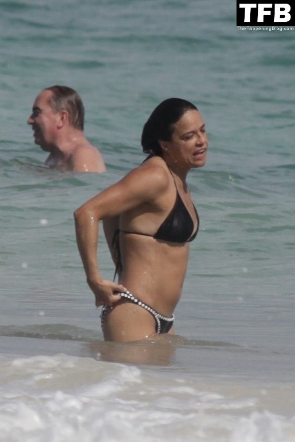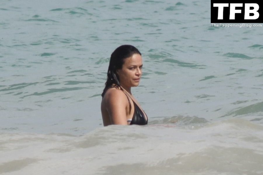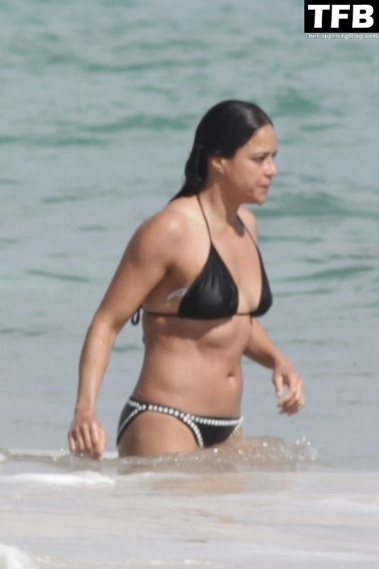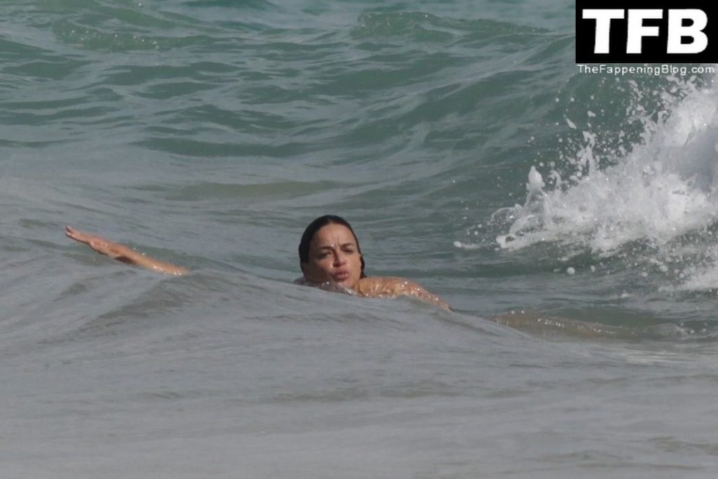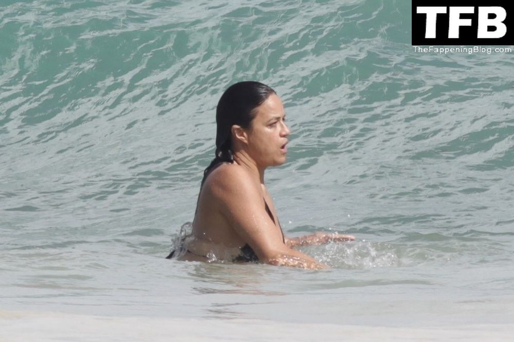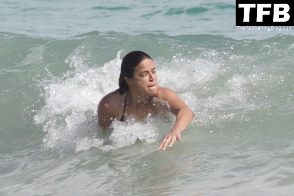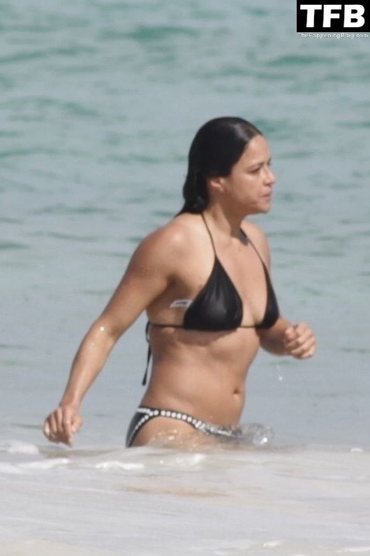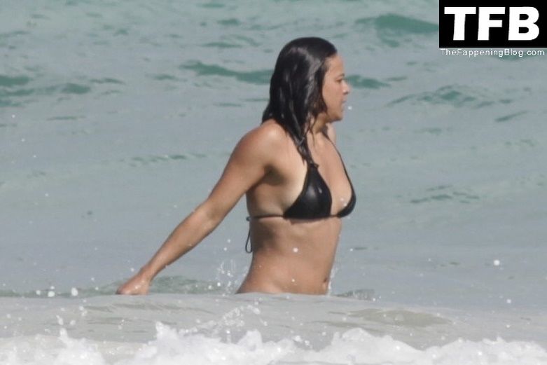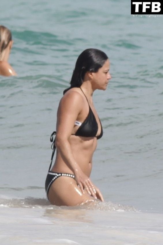 “Fast and the Furious” l’attrice Michelle Rodriguez è stata vista trascorrere le sue vacanze assaporando il sole sulle spiagge sabbiose di Tulum, Messico, 20/12/2021. Michelle sorride felice mentre si tuffa in acqua con un’amica.