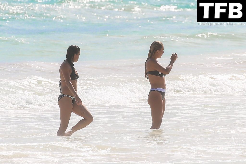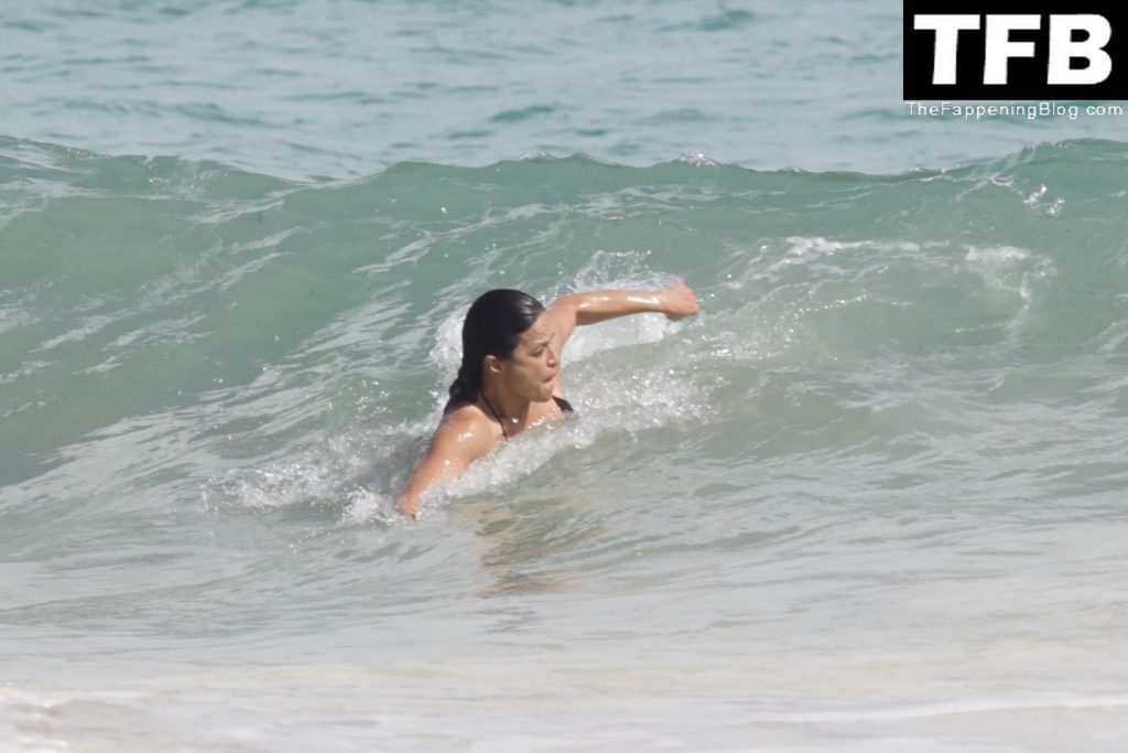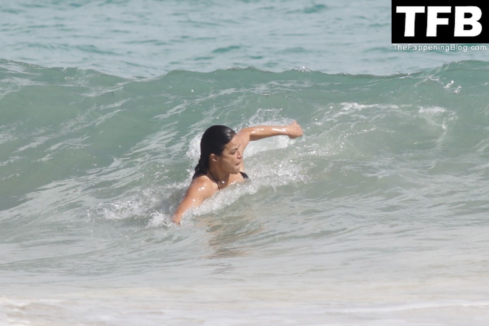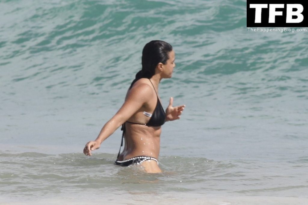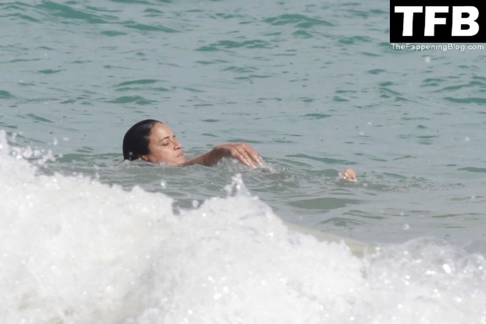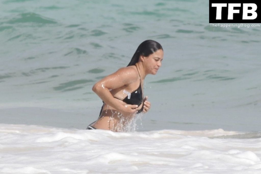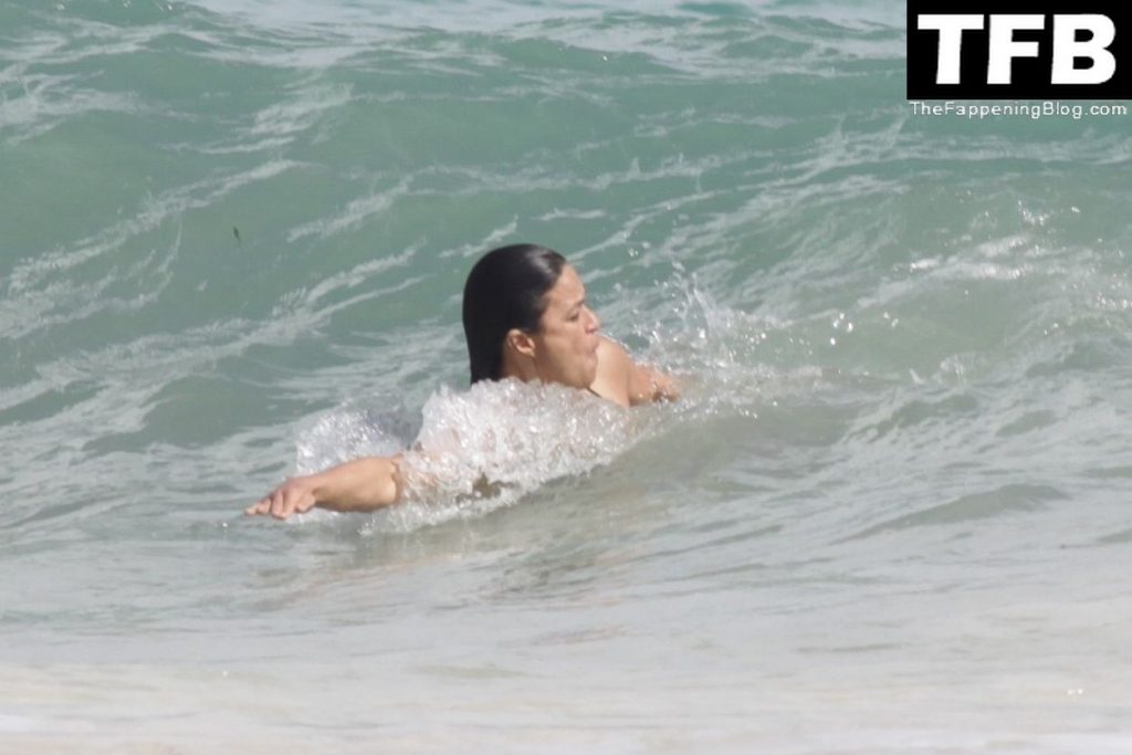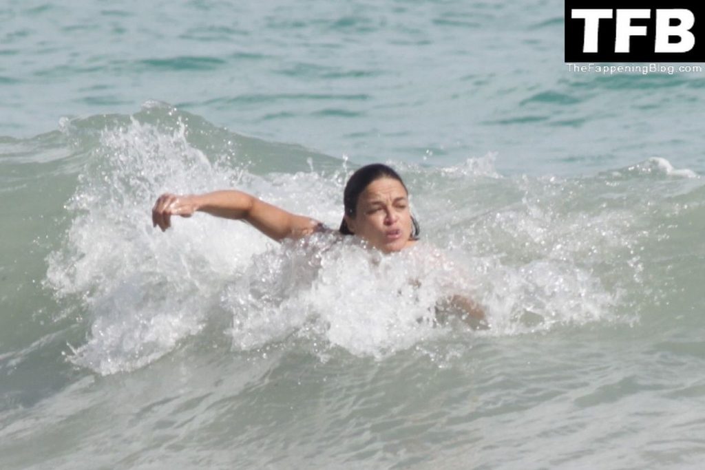 “Fast and the Furious” l’attrice Michelle Rodriguez è stata vista trascorrere le sue vacanze assaporando il sole sulle spiagge sabbiose di Tulum, Messico, 20/12/2021. Michelle sorride felice mentre si tuffa in acqua con un’amica.