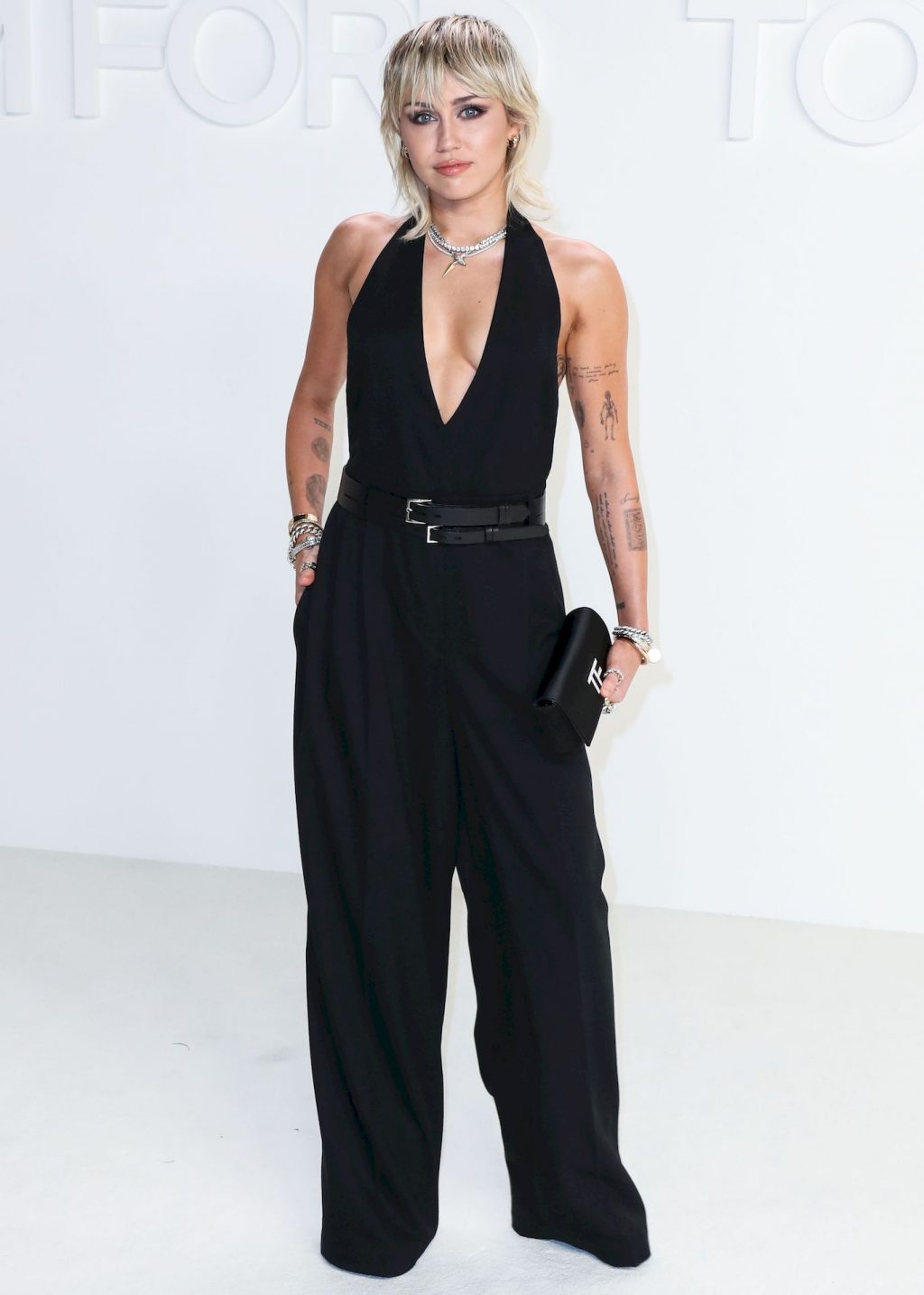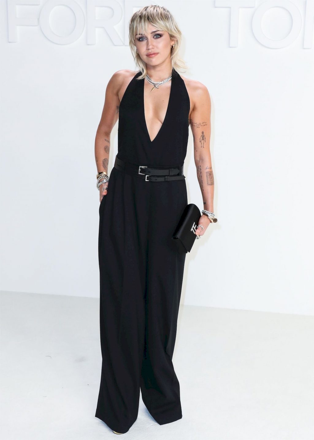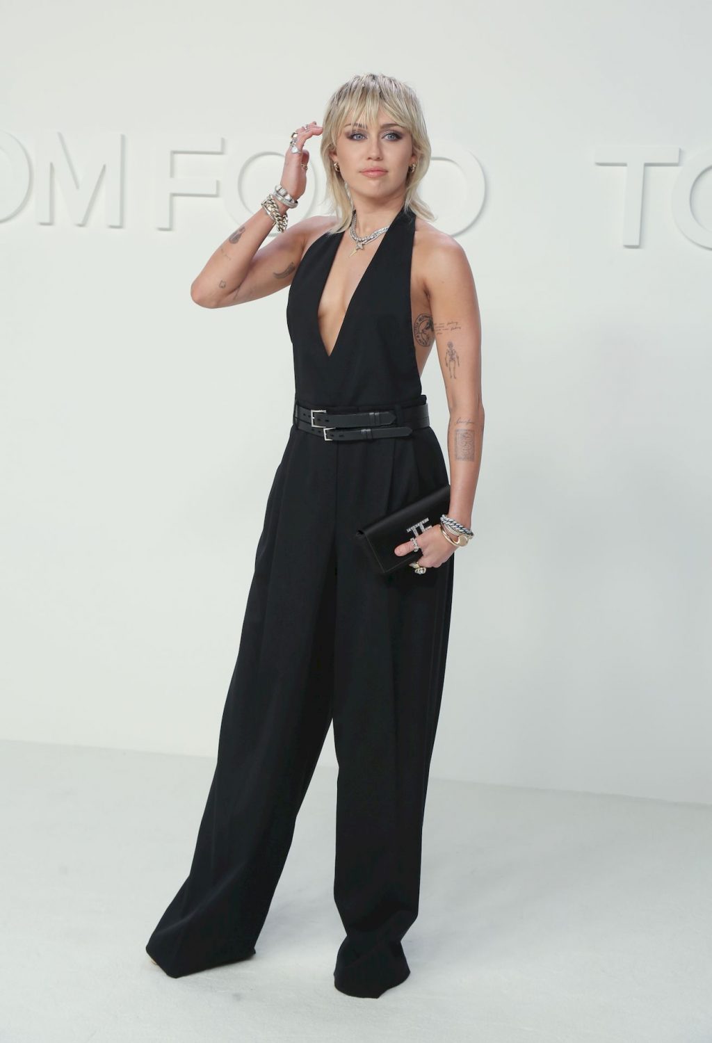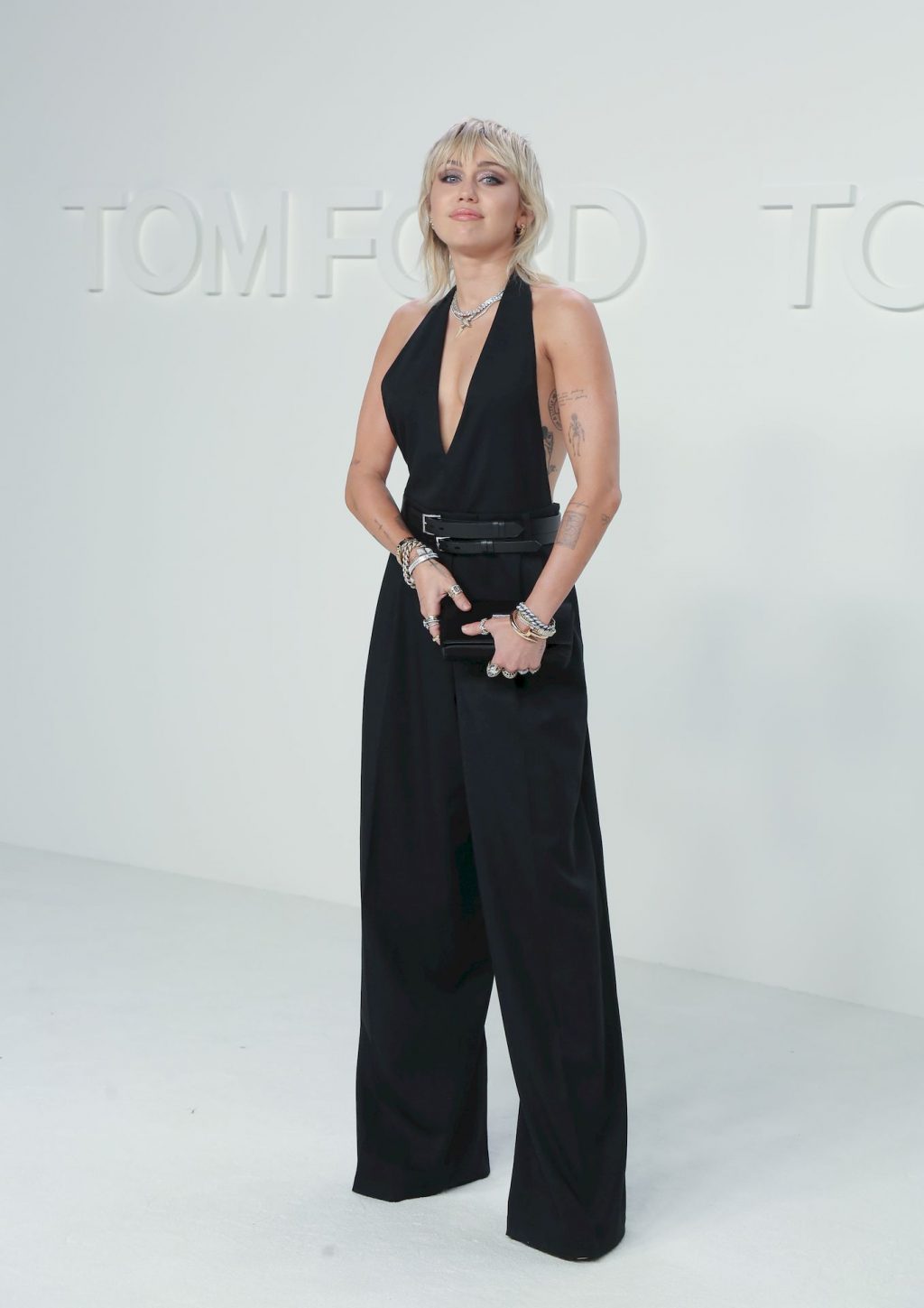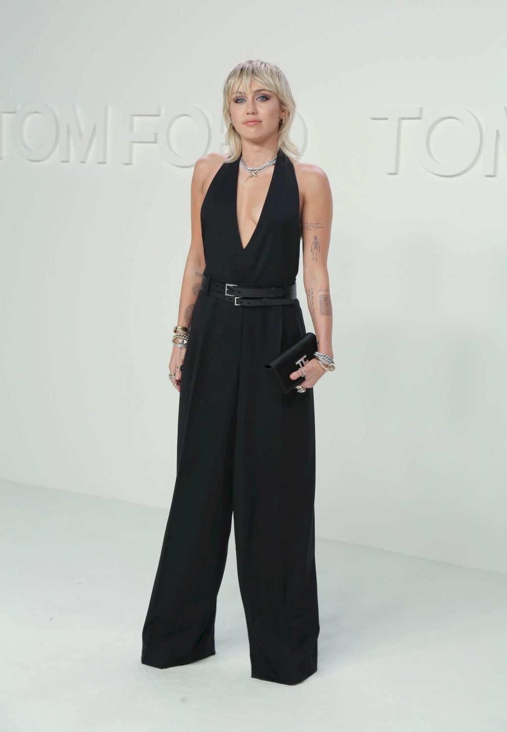 La cantante Miley Cyrus è stata fotografata senza reggiseno alla sfilata Tom Ford Autunno/Inverno 2020 tenutasi presso i Milk Studios il 7 febbraio 2020 a Hollywood.