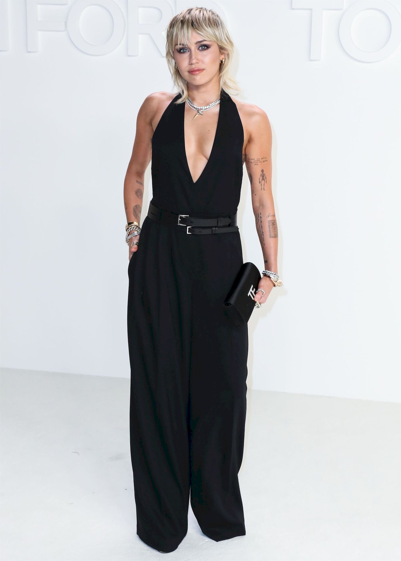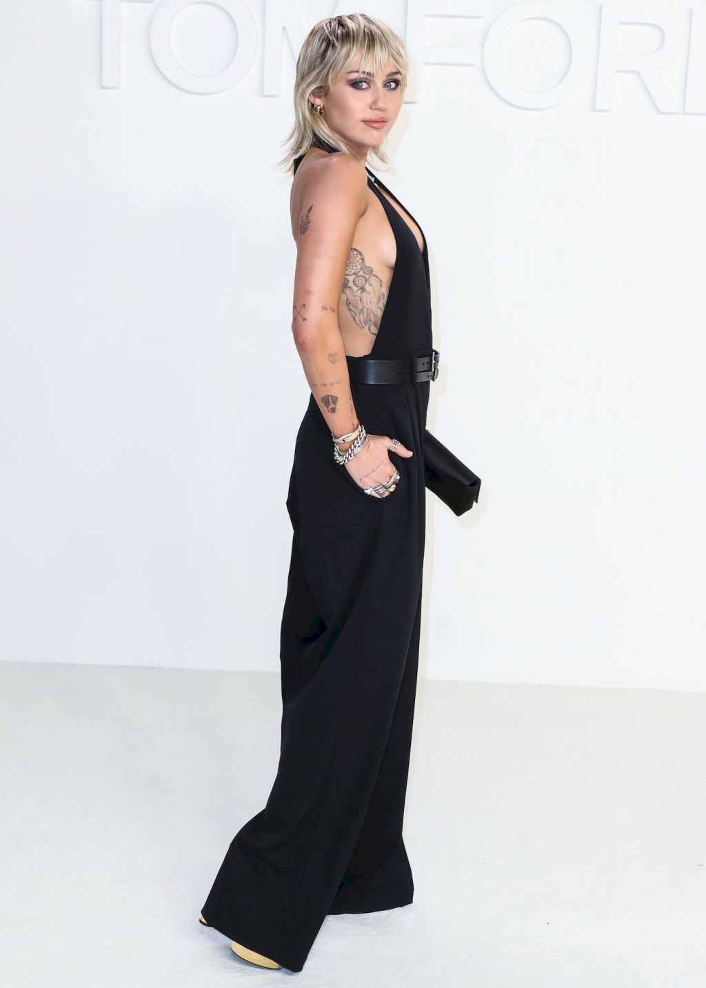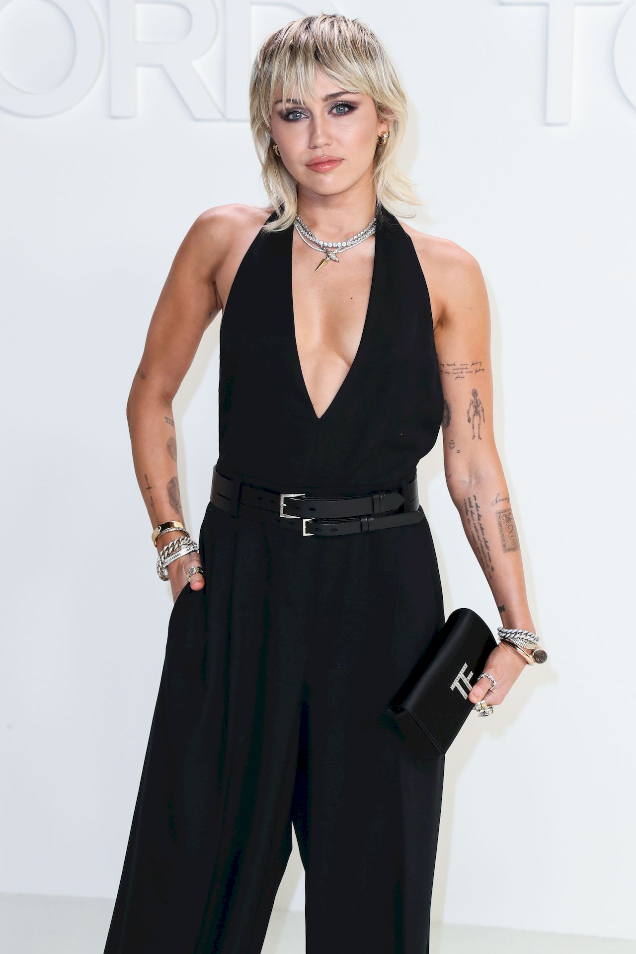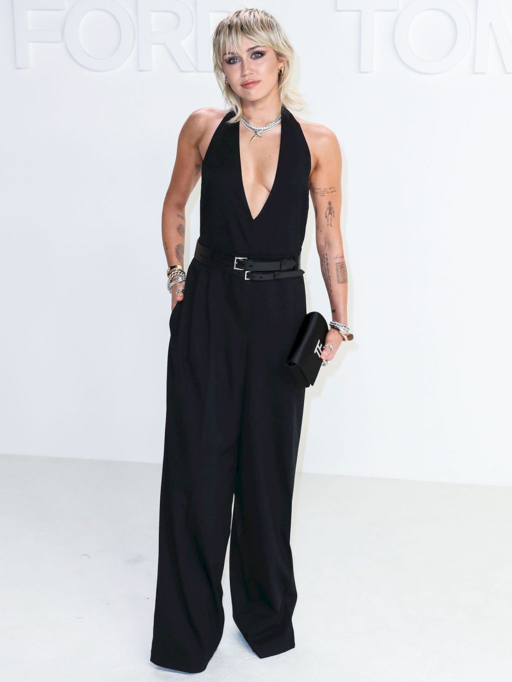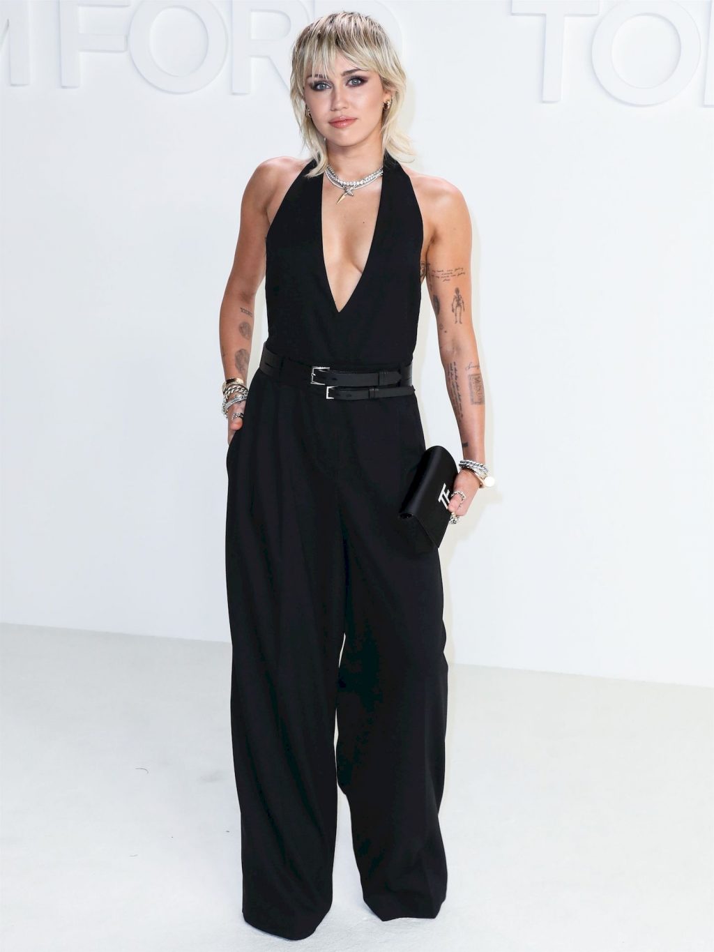 La cantante Miley Cyrus è stata fotografata senza reggiseno alla sfilata Tom Ford Autunno/Inverno 2020 tenutasi presso i Milk Studios il 7 febbraio 2020 a Hollywood.