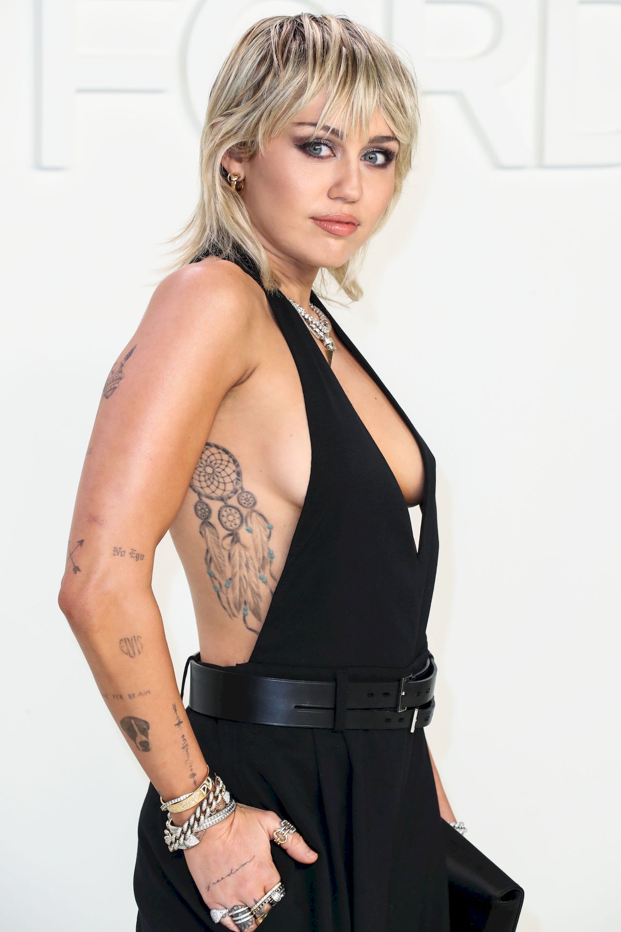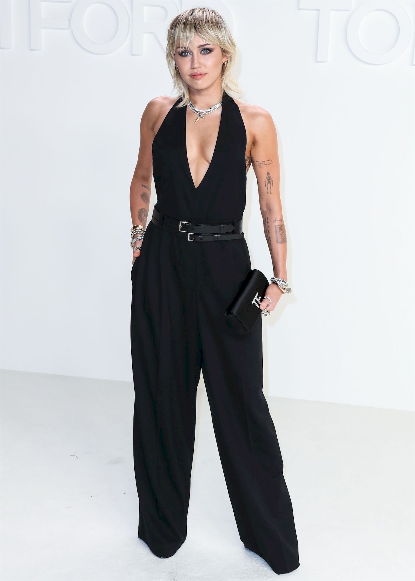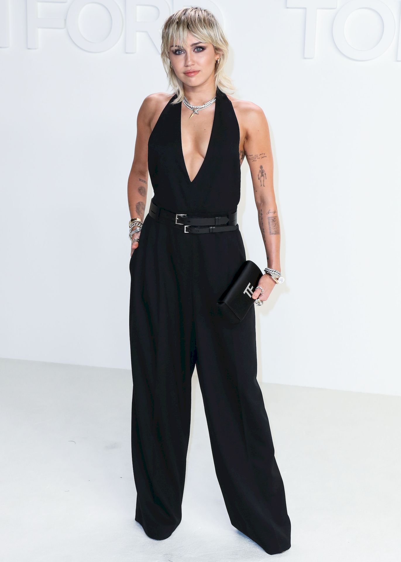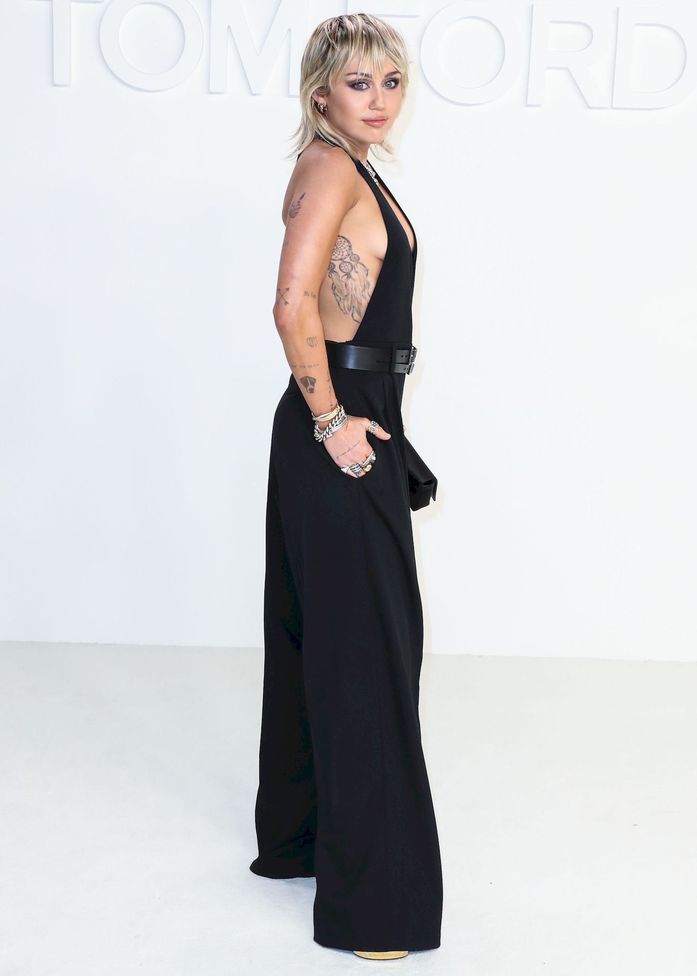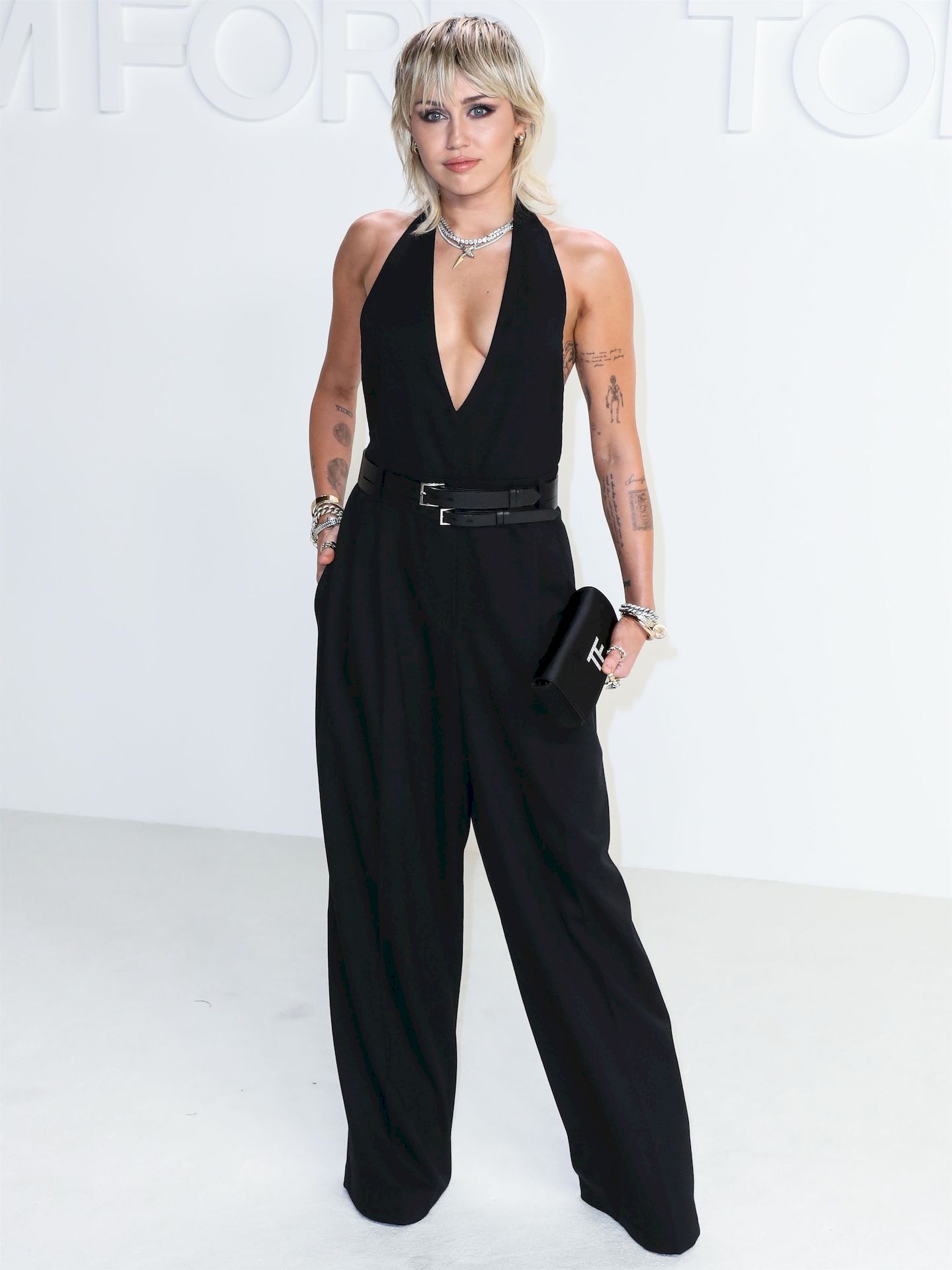 La cantante Miley Cyrus è stata fotografata senza reggiseno alla sfilata Tom Ford Autunno/Inverno 2020 tenutasi presso i Milk Studios il 7 febbraio 2020 a Hollywood.