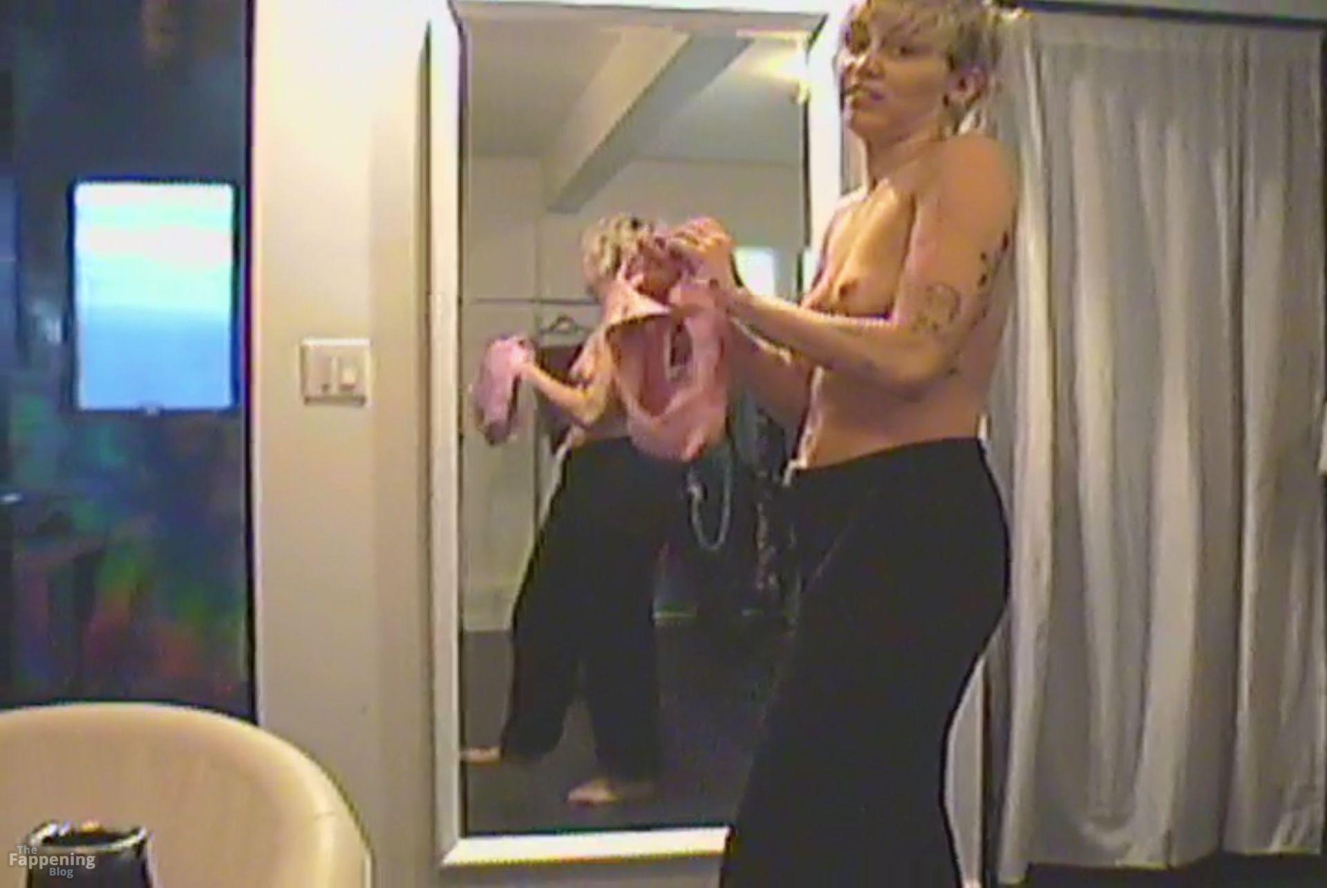 Peep Miley Cyrus che si rilassa nel camerino durante le prove del Superbowl, mostrando il suo petto nudo.