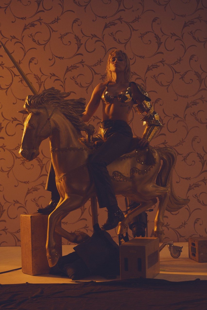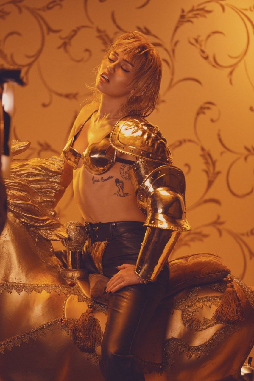 Le parole ‘TOUGH TITTIES’ lampeggiano quindi sullo schermo mentre Miley si avvicina alla bellissima modella calva Vendela, che indossa un completo kink in plastica trasparente e color carne con un collare per cani abbinato. La modella trans e diversamente abile Aaron Phillips entra in scena sulla sua sedia a rotelle elettrica, sfoggiando un look feroce completo di pelliccia bianca e un caschetto biondo. La modella trans Casil McArthur mostra poi il suo fisico scolpito, indossando solo alcune catene d’argento e un paio di pantaloni a righe verdi, prima di spalmarsi il rossetto sul viso. La ballerina e coreografa Paige Fralix appare poi a seno nudo con jeans, una corona floreale e le parole ‘I AM FREE’ dipinte sul torso. Miley si rannicchia poi accanto a sua madre Tish su un divano, entrambe con outfit Chanel abbinati.