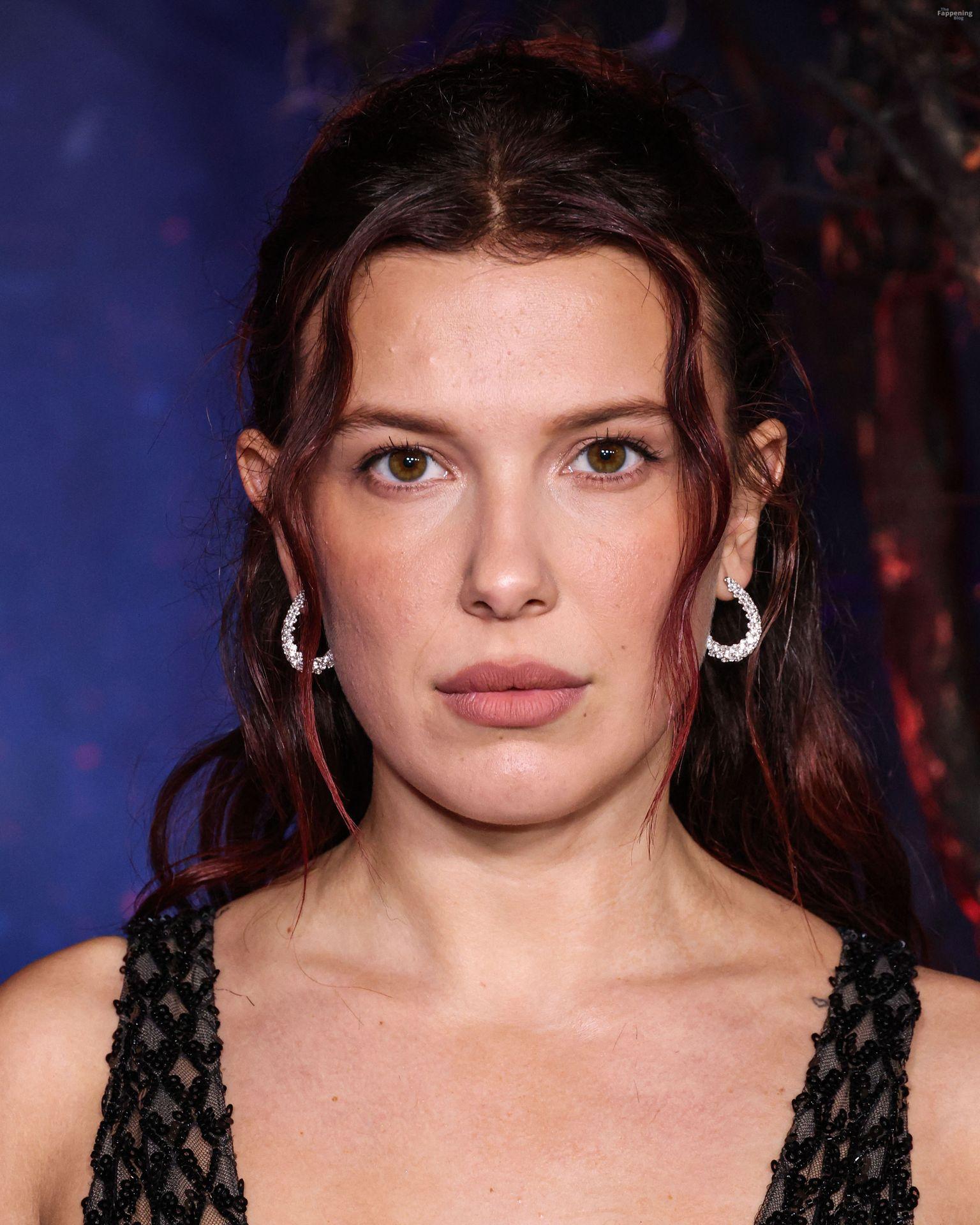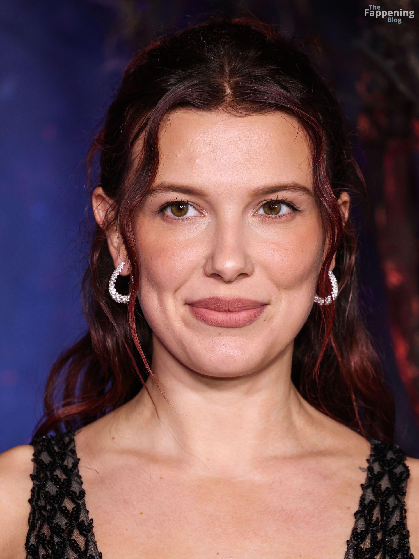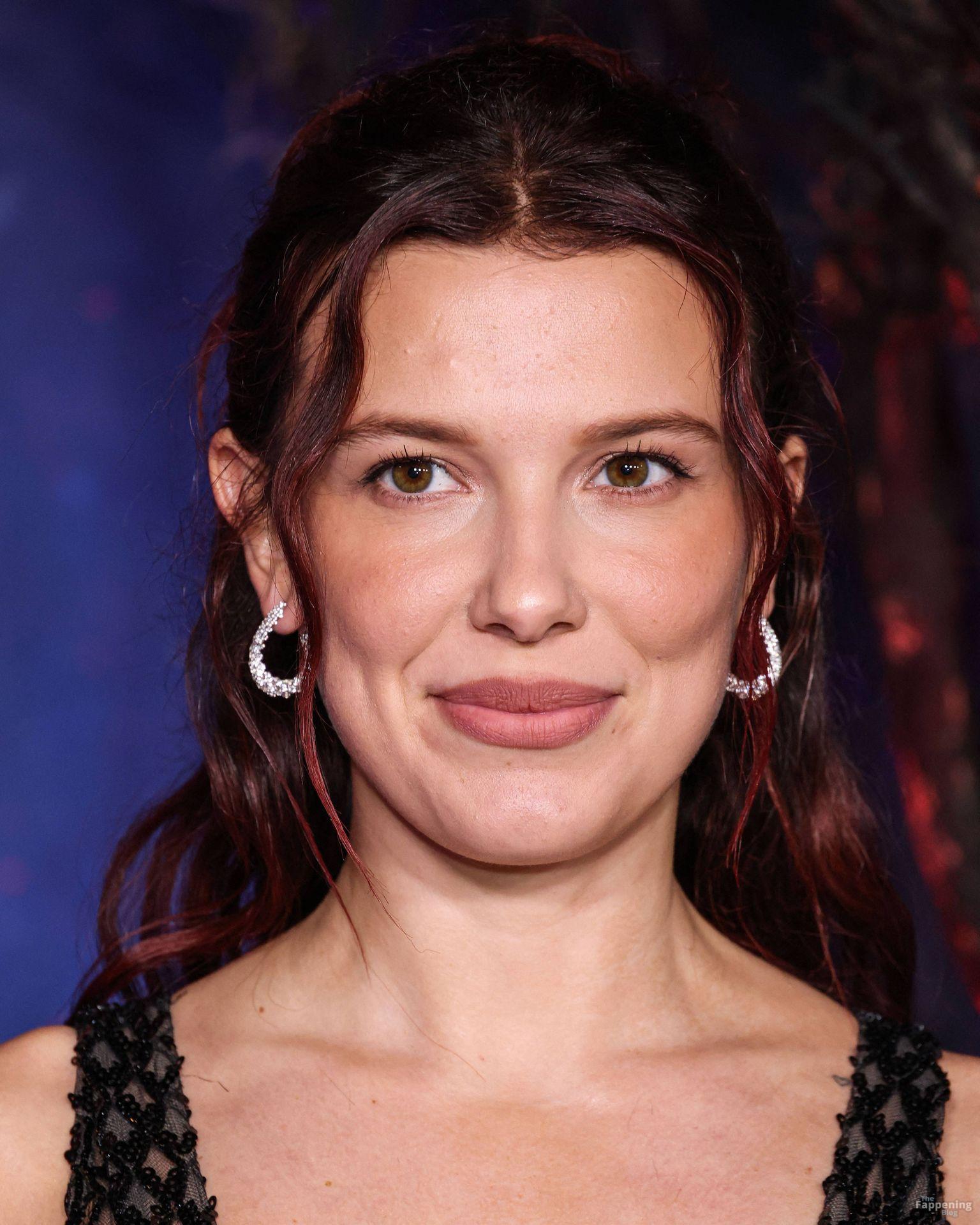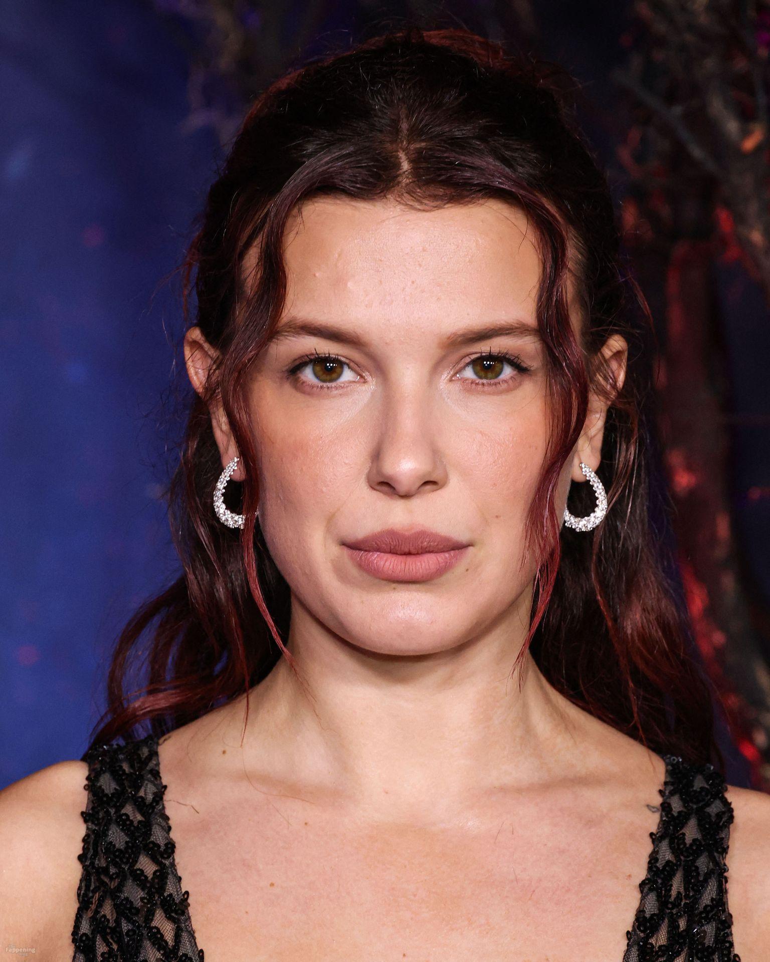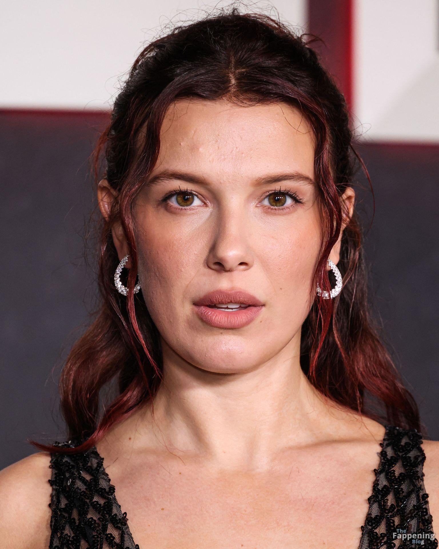 Millie Bobby Brown si è presentata all’evento FYC della quinta stagione di Stranger Things a Hollywood, indossando un abito nero trasparente con paillettes e una scollatura profonda che metteva in mostra il suo seno.