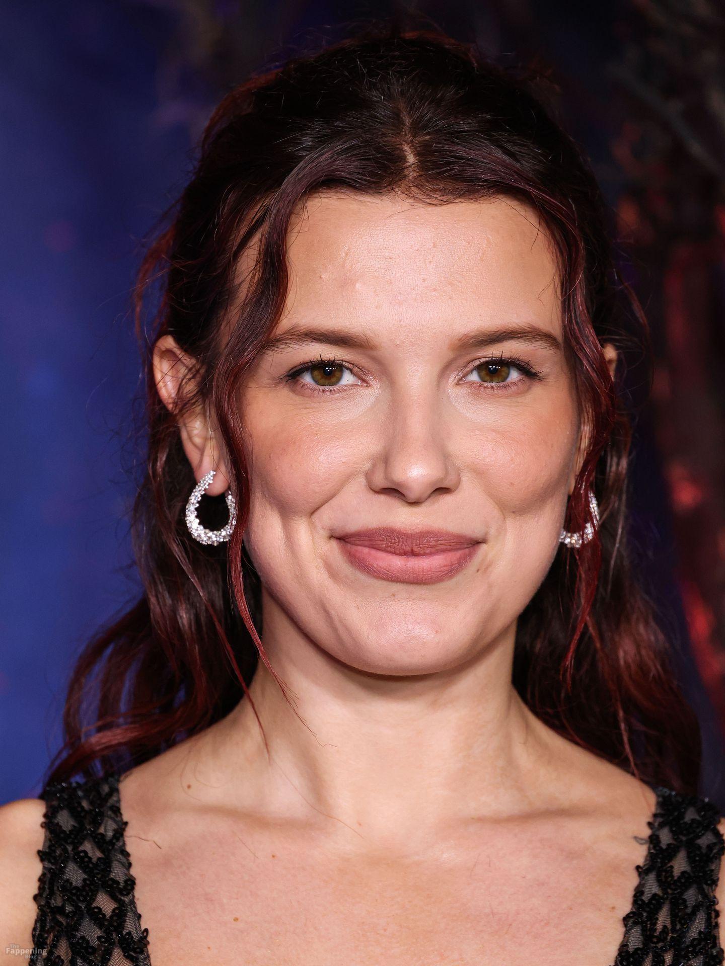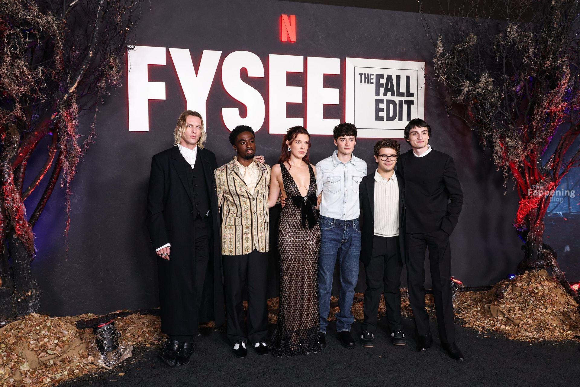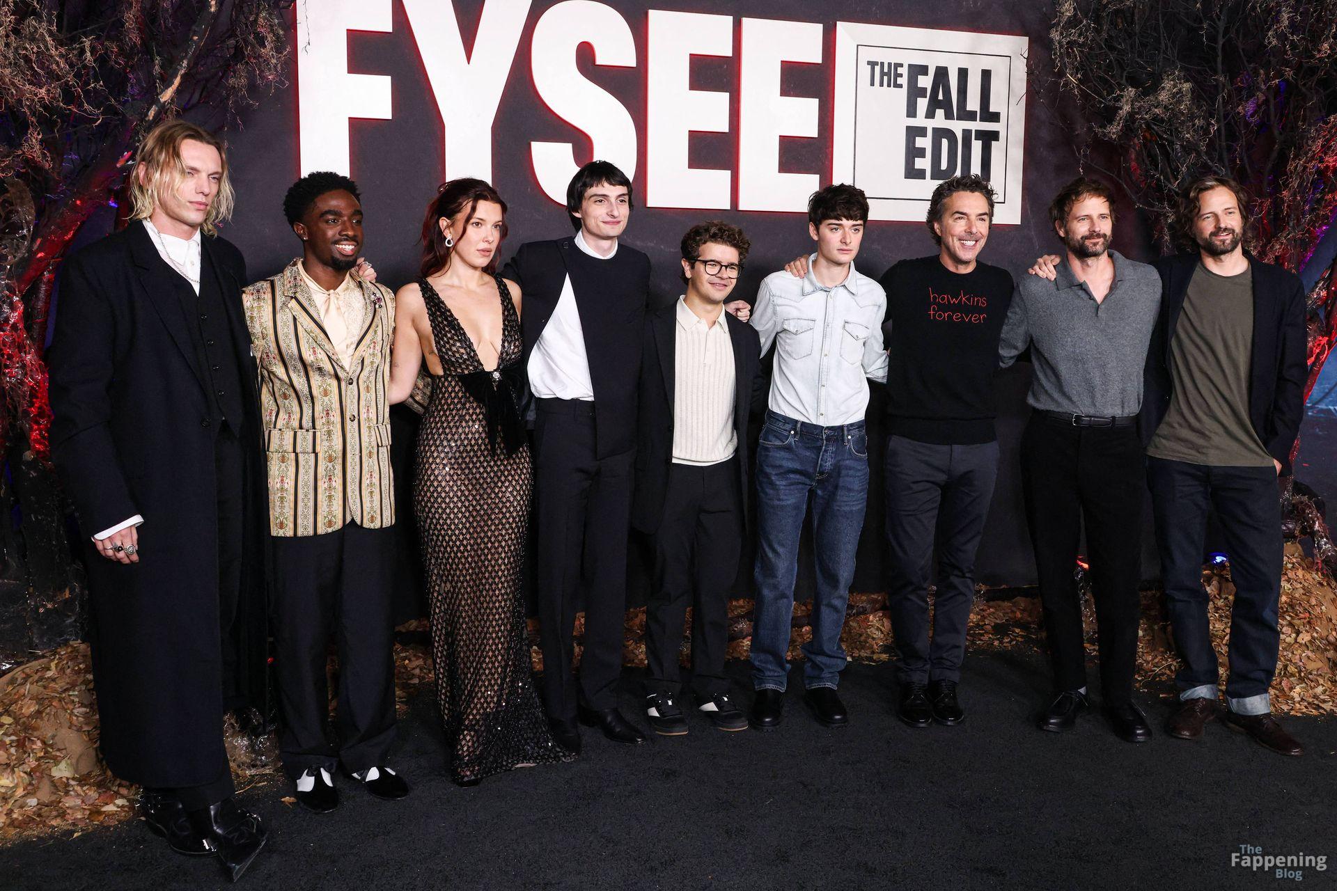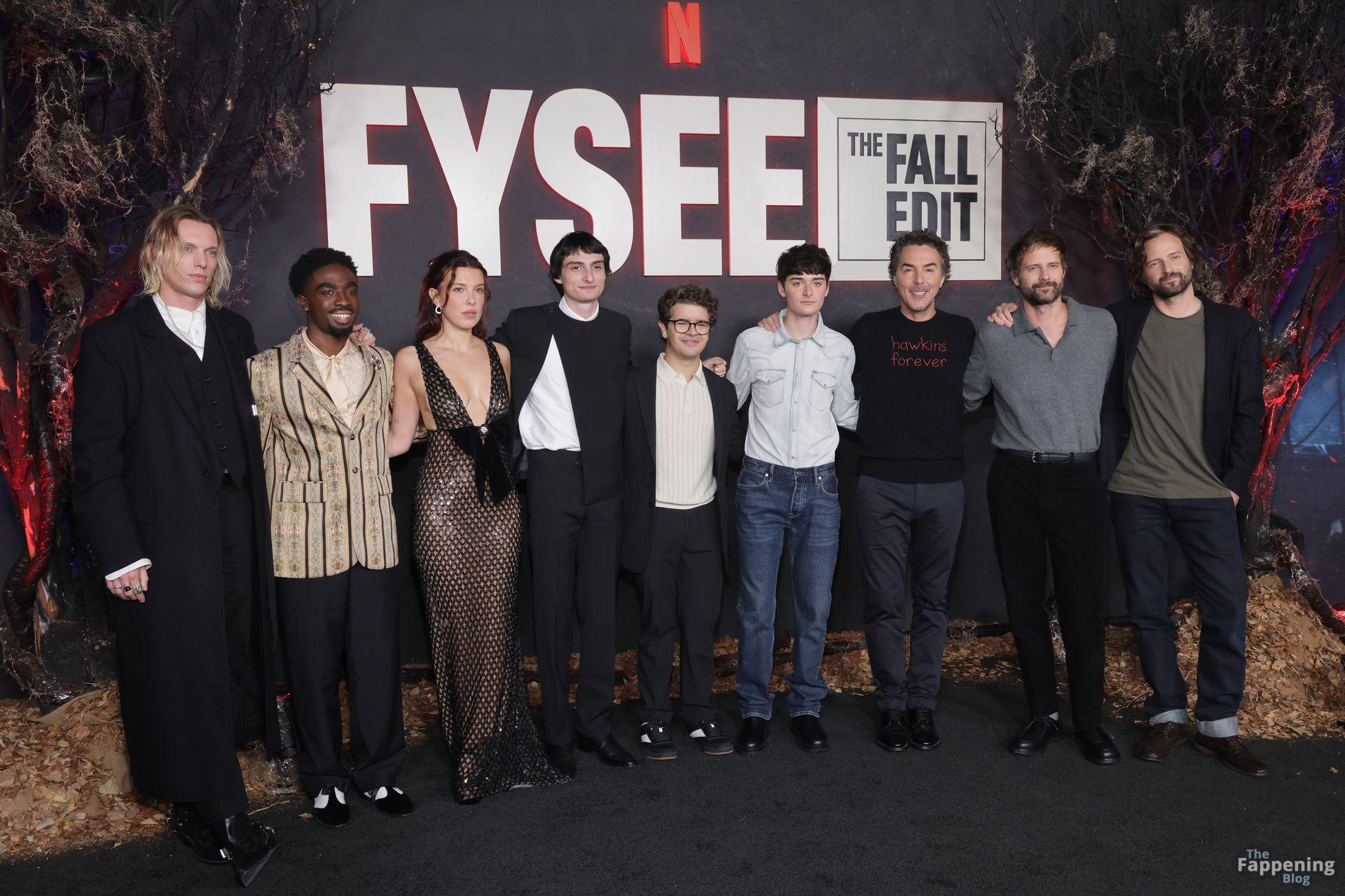 Millie Bobby Brown si è presentata all’evento FYC della quinta stagione di Stranger Things a Hollywood, indossando un abito nero trasparente con paillettes e una scollatura profonda che metteva in mostra il suo seno.