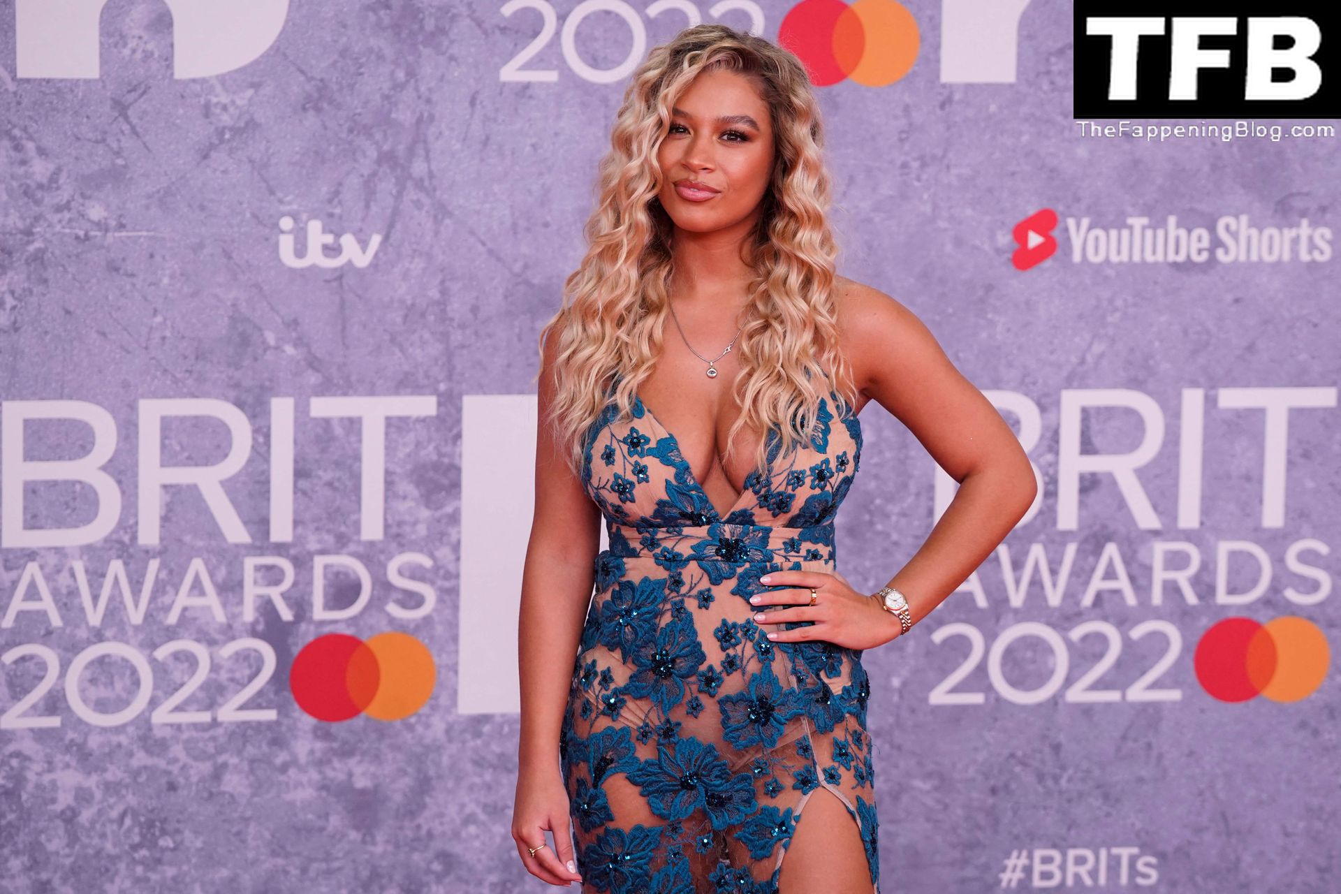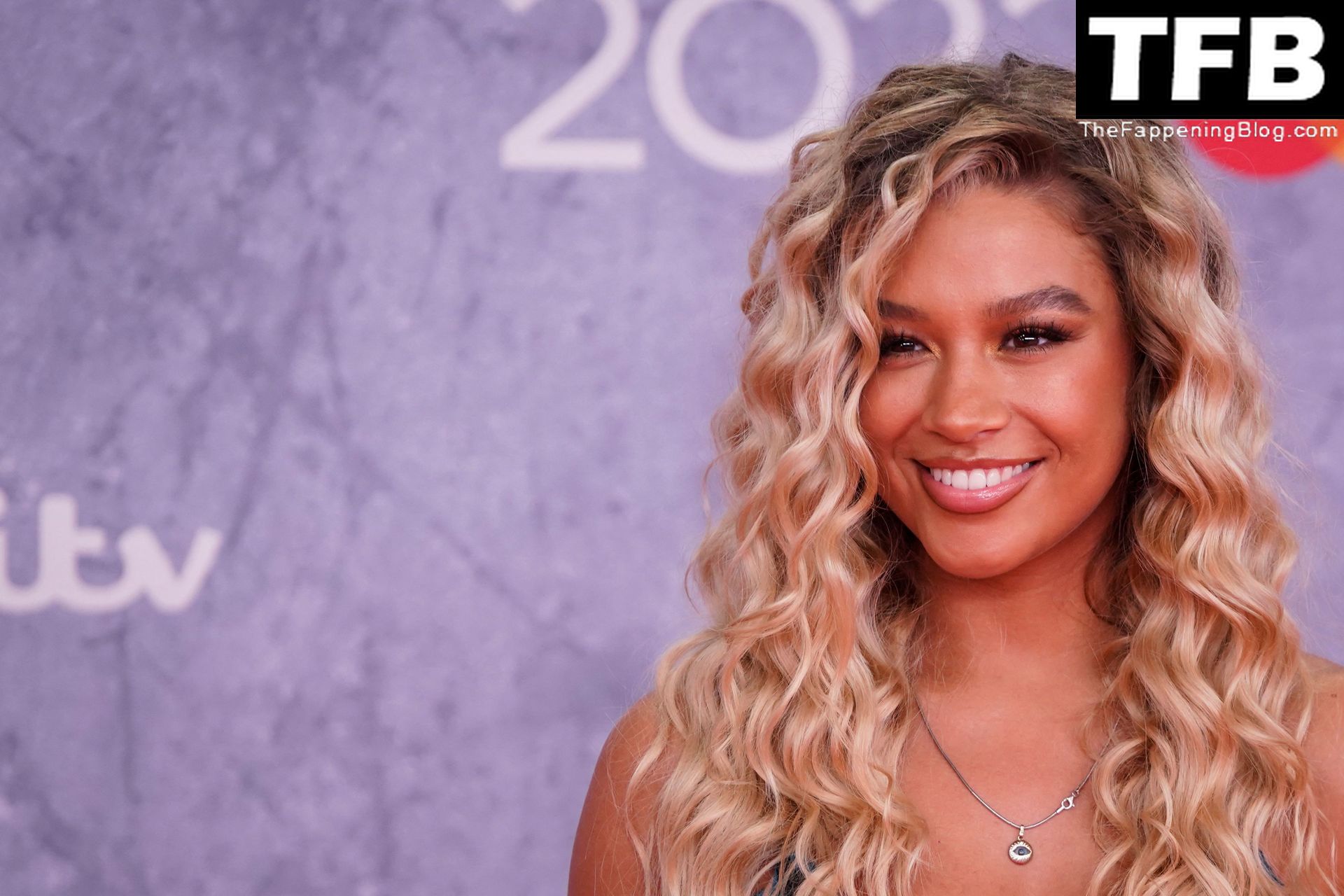 La cantante Molly Rainford posa sul tappeto rosso ai BRIT Awards 2022 tenutisi al The O2, Peninsula Square, Londra, 08/02/2022.