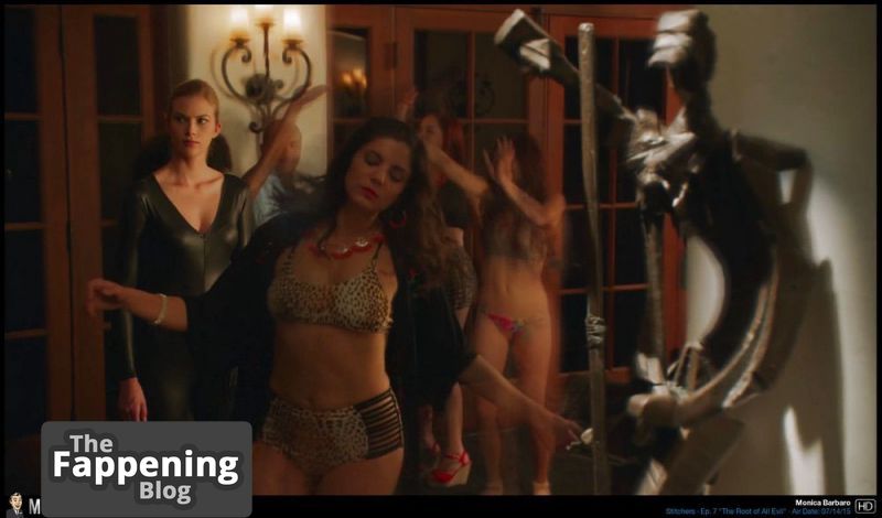 "La collezione di foto di Monica Barbaro mostra le sue immagini parzialmente nude e seducenti, tra cui i suoi seni scoperti, un décolleté abbondante senza reggiseno, glutei attraenti, gambe e la sua figura sorprendente vestita con abiti rivelatori e lingerie.