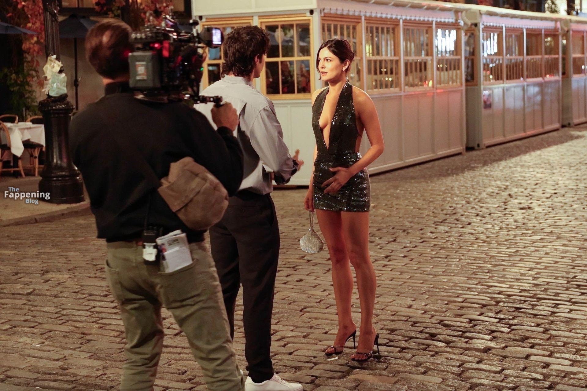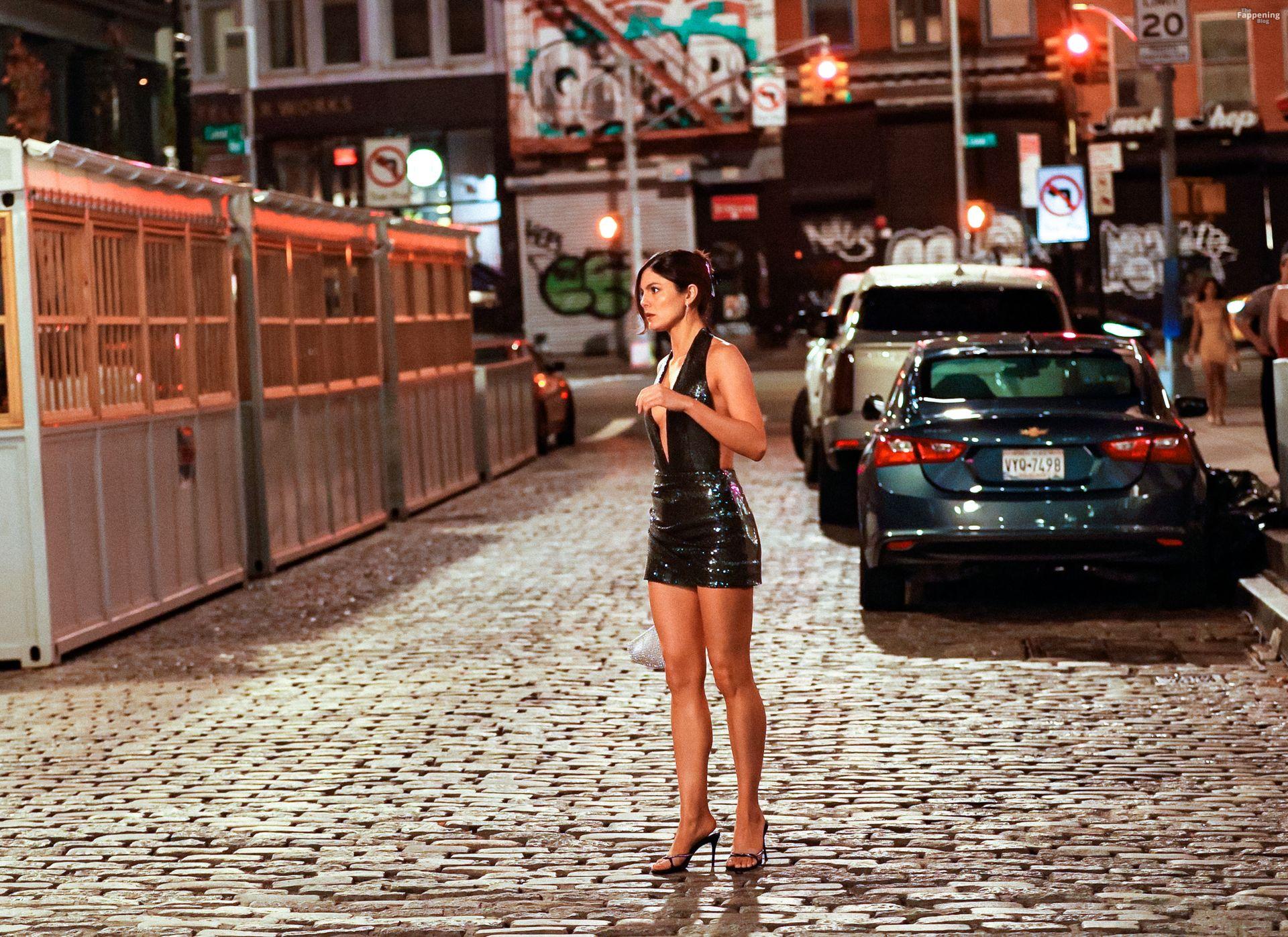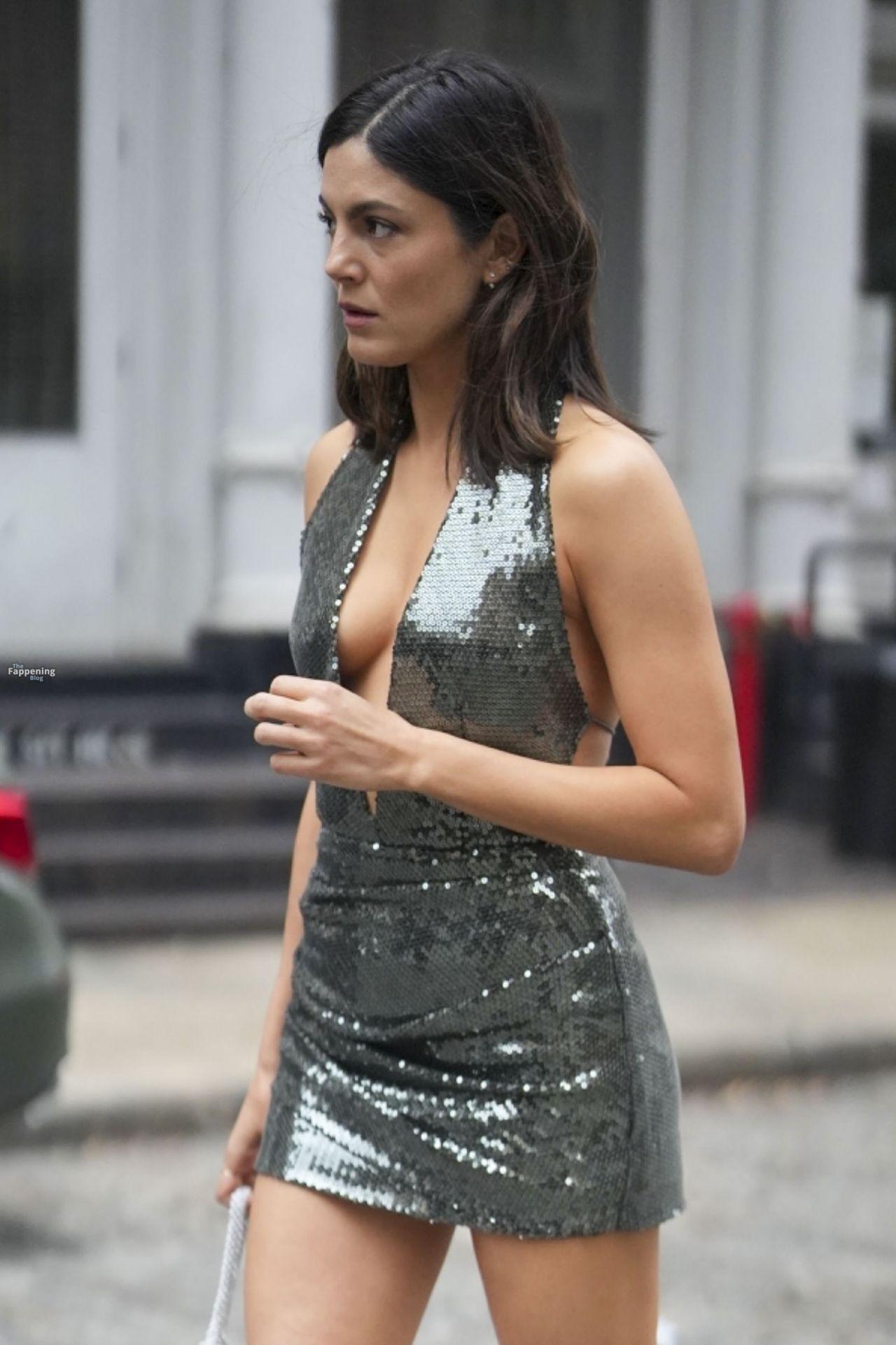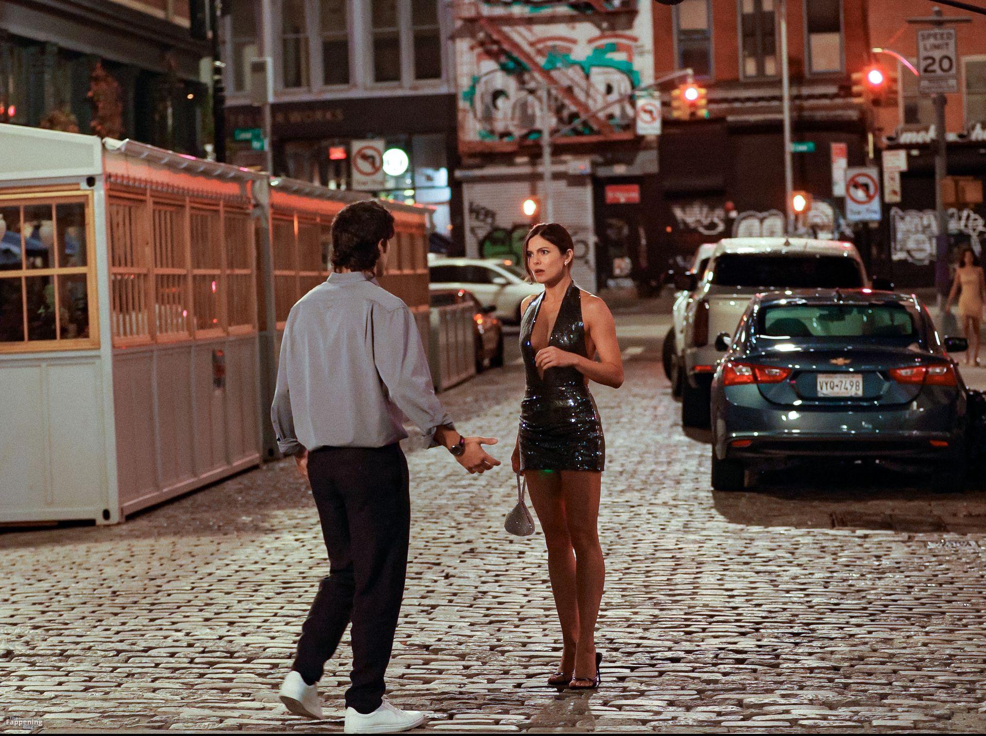 Monica Barbaro senza reggiseno incanta con un abito verde di paillettes e tacchi a spillo durante le riprese di ‘One Night Only’ a New York City.
