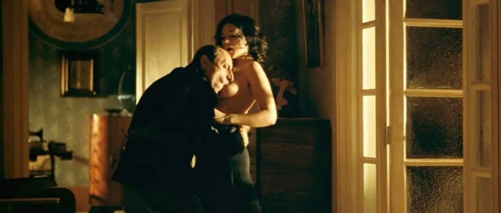 This Monica Bellucci sex scene is uncensored and is quite explicit. Monica’s breasts are entirely naked, and her guy aggressively loves her boobs and then begins to fuck with her after they move to the other room.