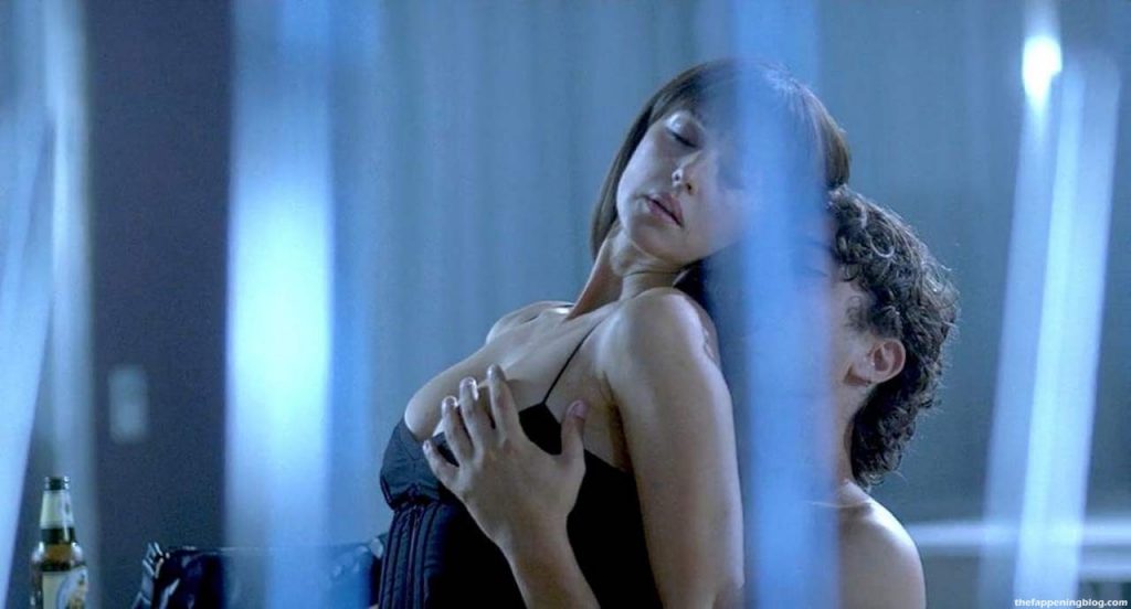 Monica joins her boyfriend, who was in the shower. She was naked, and we see her right boob while she is hugging her boyfriend and kissing her. Enjoy watching this beautiful sexy actress.