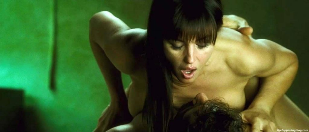Monica Bellucci is seen here, pushing her naked tits on your chest, with her legs around you while you shoot down some bad guys. This sex scene is a boy’s dream! This is an actual sex action scene. Graphic and intense, blood and sex in the same video clip. Monica Bellucci is beautiful in this one, performing excellently like a true professional she is. Hot pair of naked boobs, pretty face, hard sex, and guns. You get a chance to see that utterly free in HD. This scene is rare and extended.