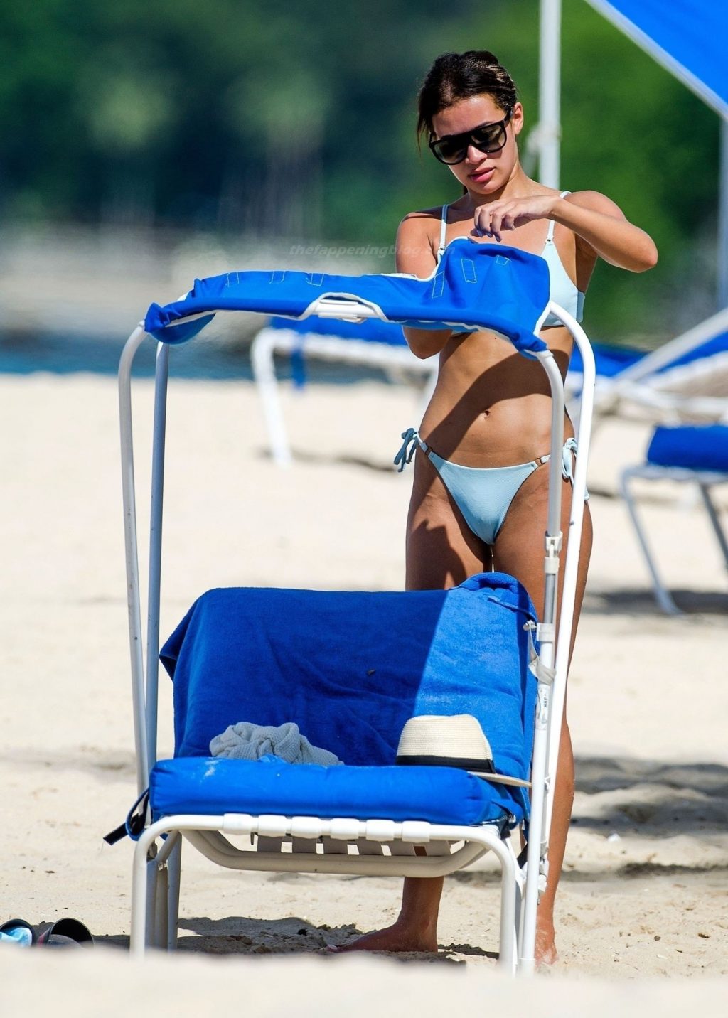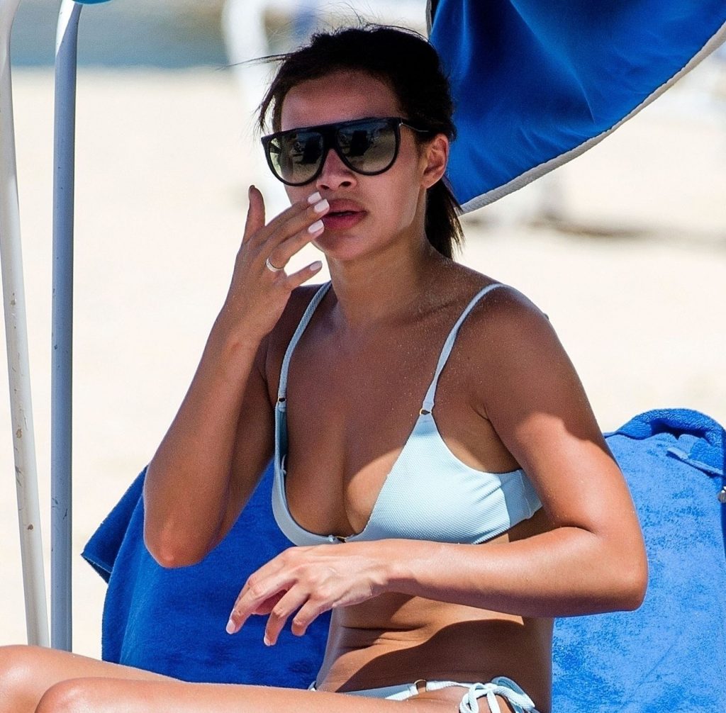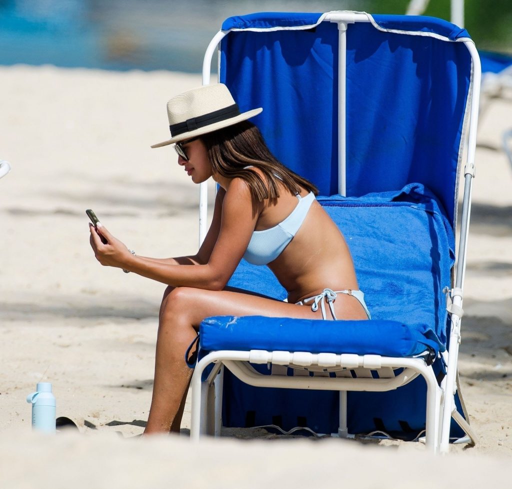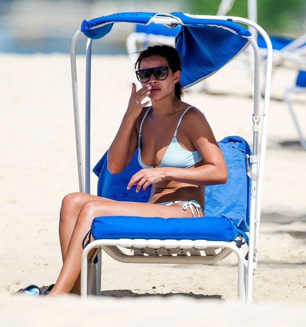 La coppia si godeva il caldo sole dei Caraibi con Montana che faceva un tuffo nel mare durante la sua pausa invernale a St. James Parish.