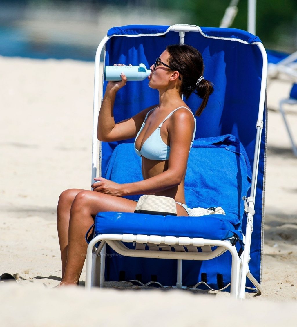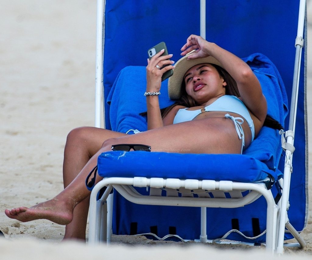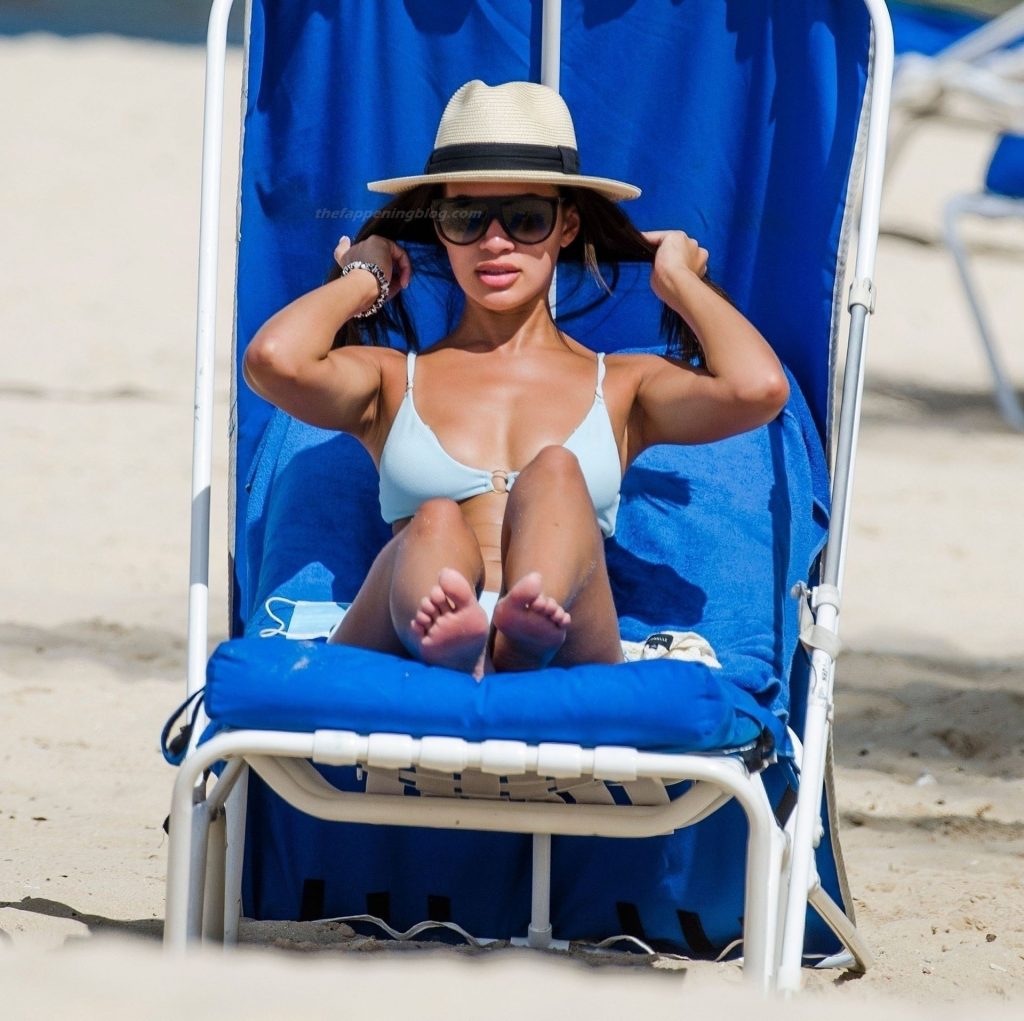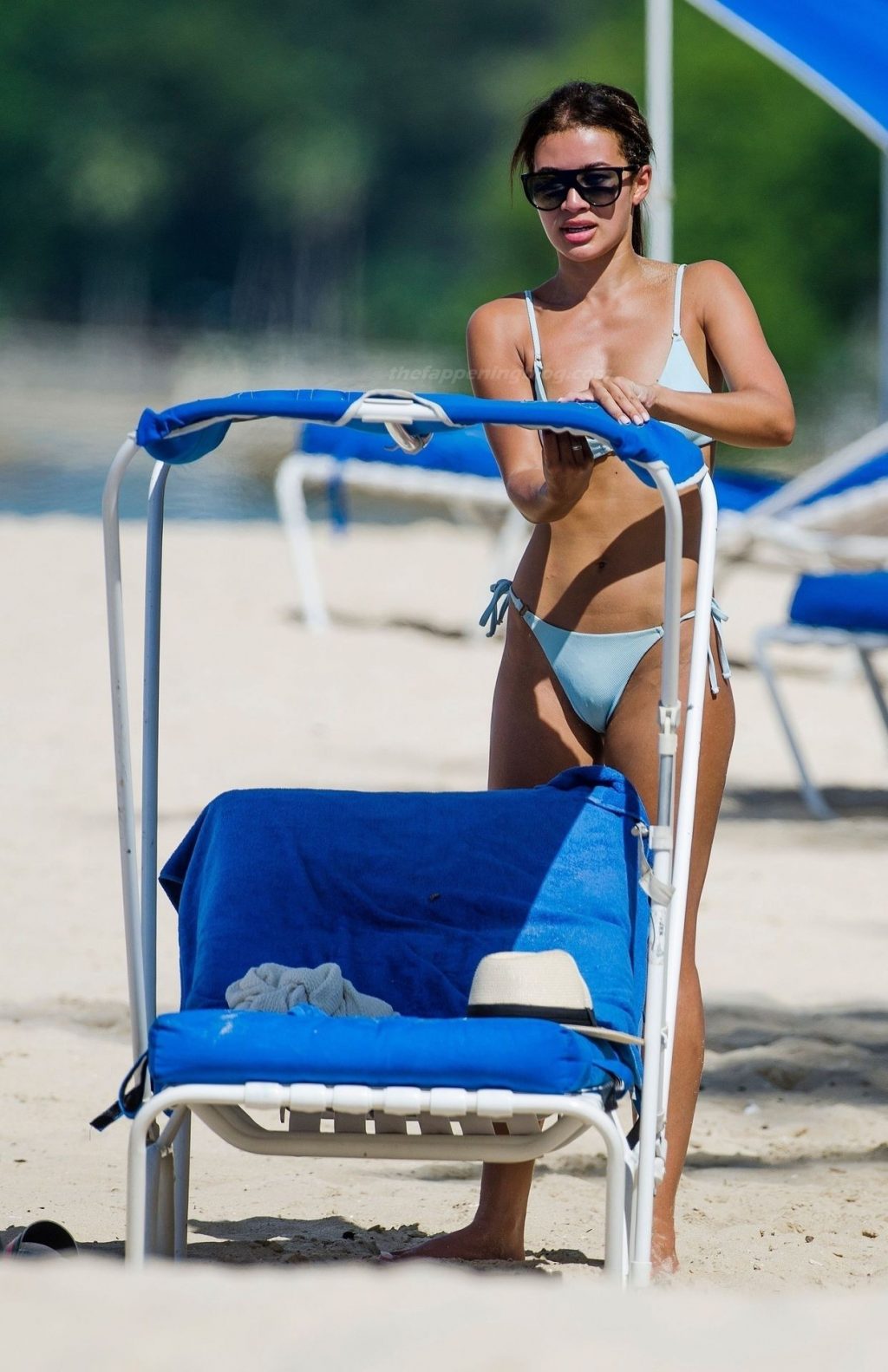La sexy star di Love Island Montana Brown mostra il suo fisico seducente da spiaggia indossando il suo bikini blu succinto insieme a sua madre Sarah sulle spiagge di Barbados, 29/12/2020.