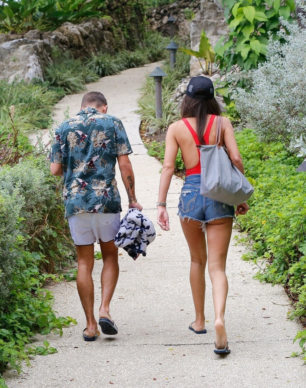 ‘Love Island’ star Montana Brown si è divertita sulla spiaggia con gli amici a Barbados, 01/06/2018. La star del reality di 22 anni ha abbinato un grazioso costume da bagno rosso a pantaloncini di jeans tagliati.