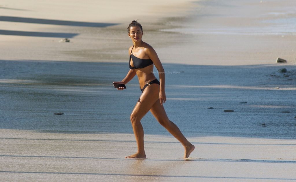Indossando il suo piccolo bikini nero succinto sotto il sole cocente, Montana appariva bollente con una vista mozzafiato, facendo salire la temperatura e mostrando il suo fisico tonico con le sue curve voluttuose.