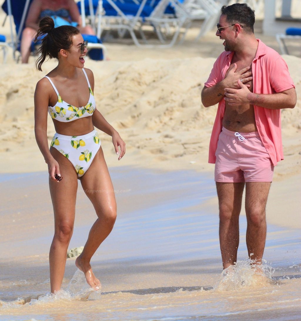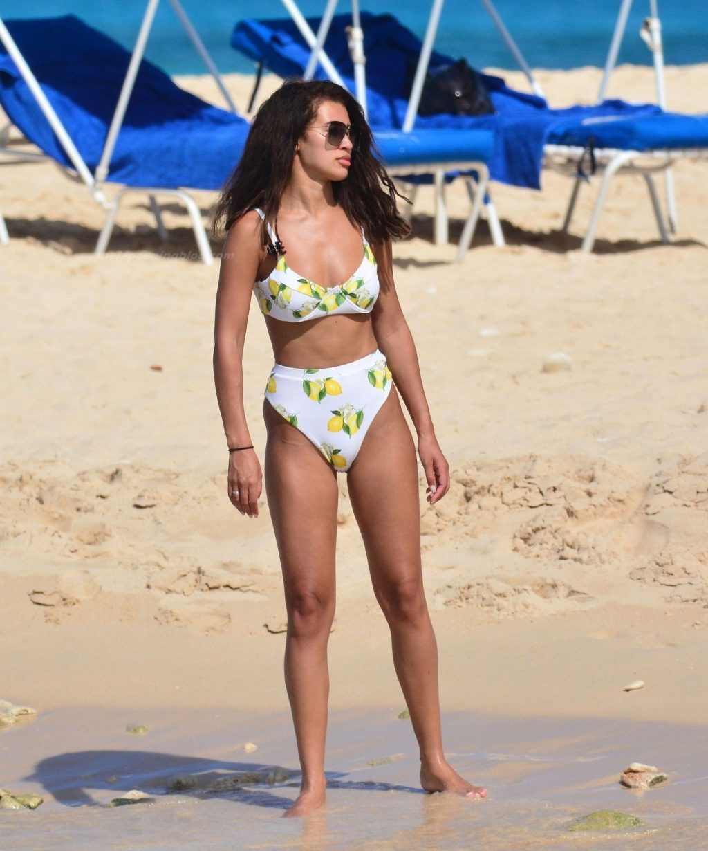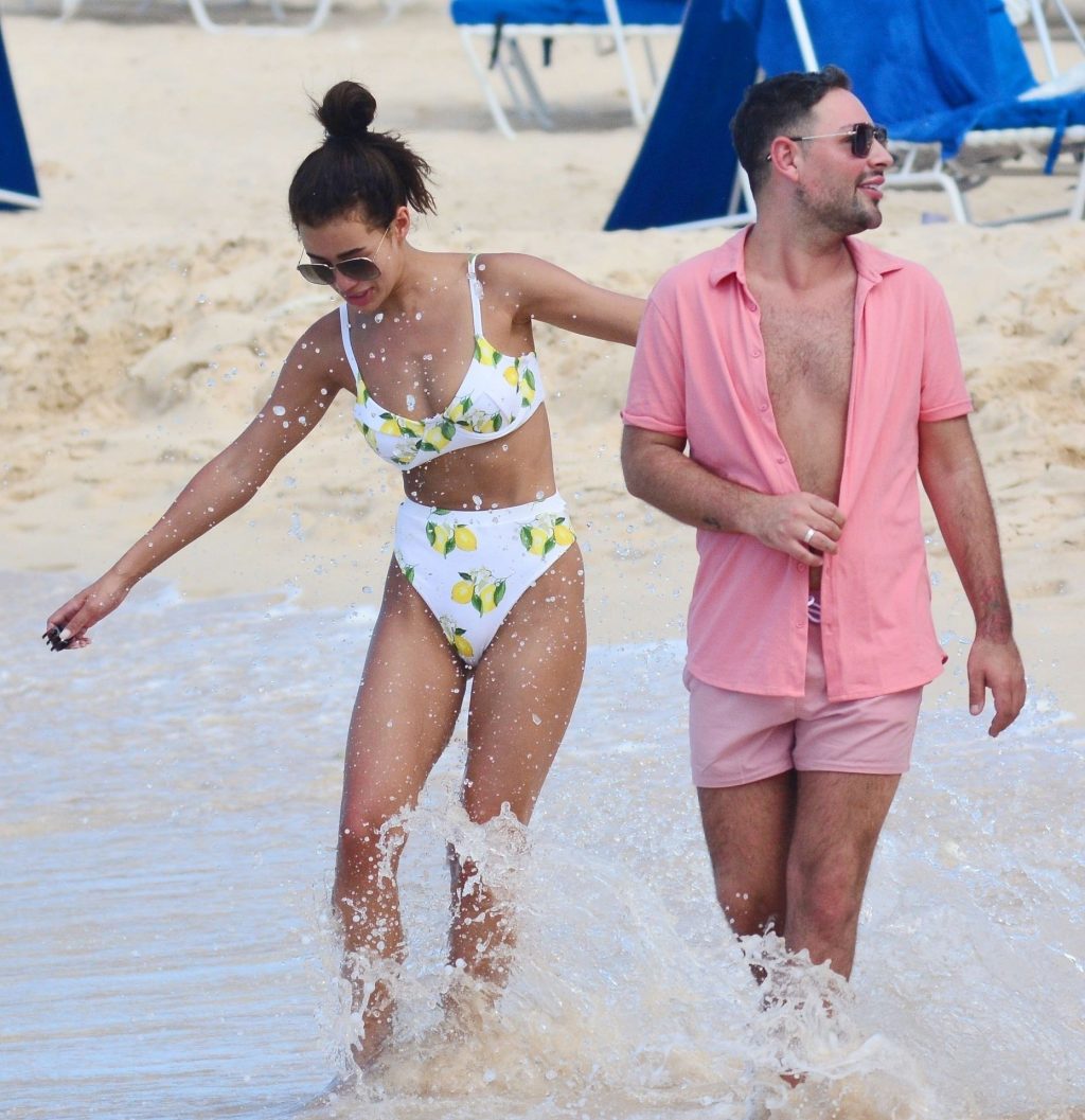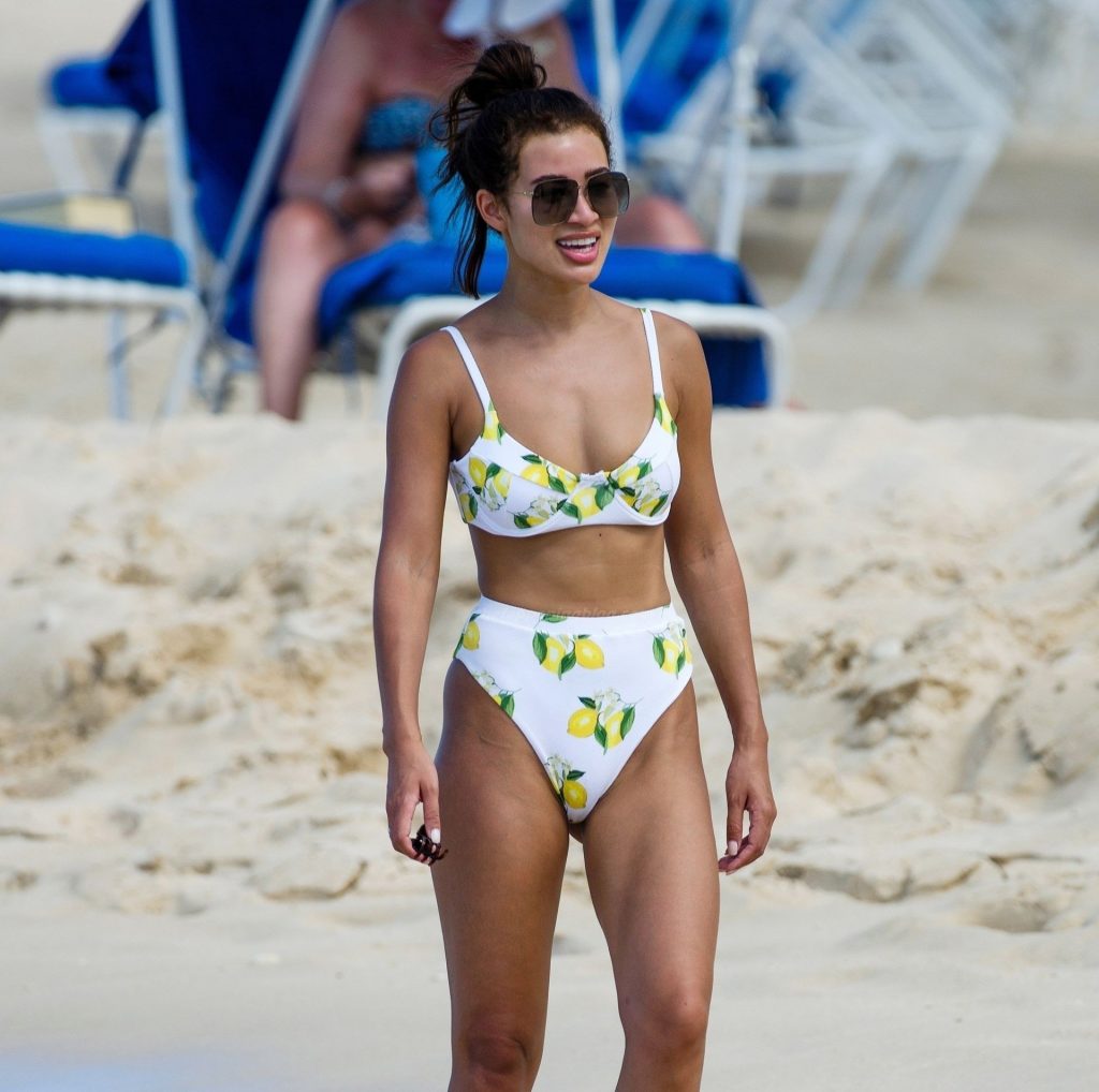 Love Island’s Montana Brown indossa un bikini con motivo a limoni mentre si gode una giornata sulla spiaggia a Barbados, 27/12/2020.