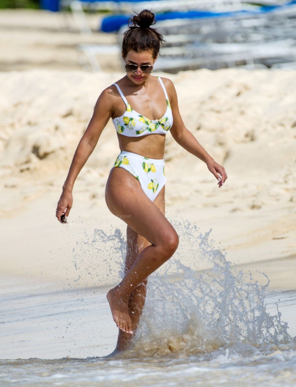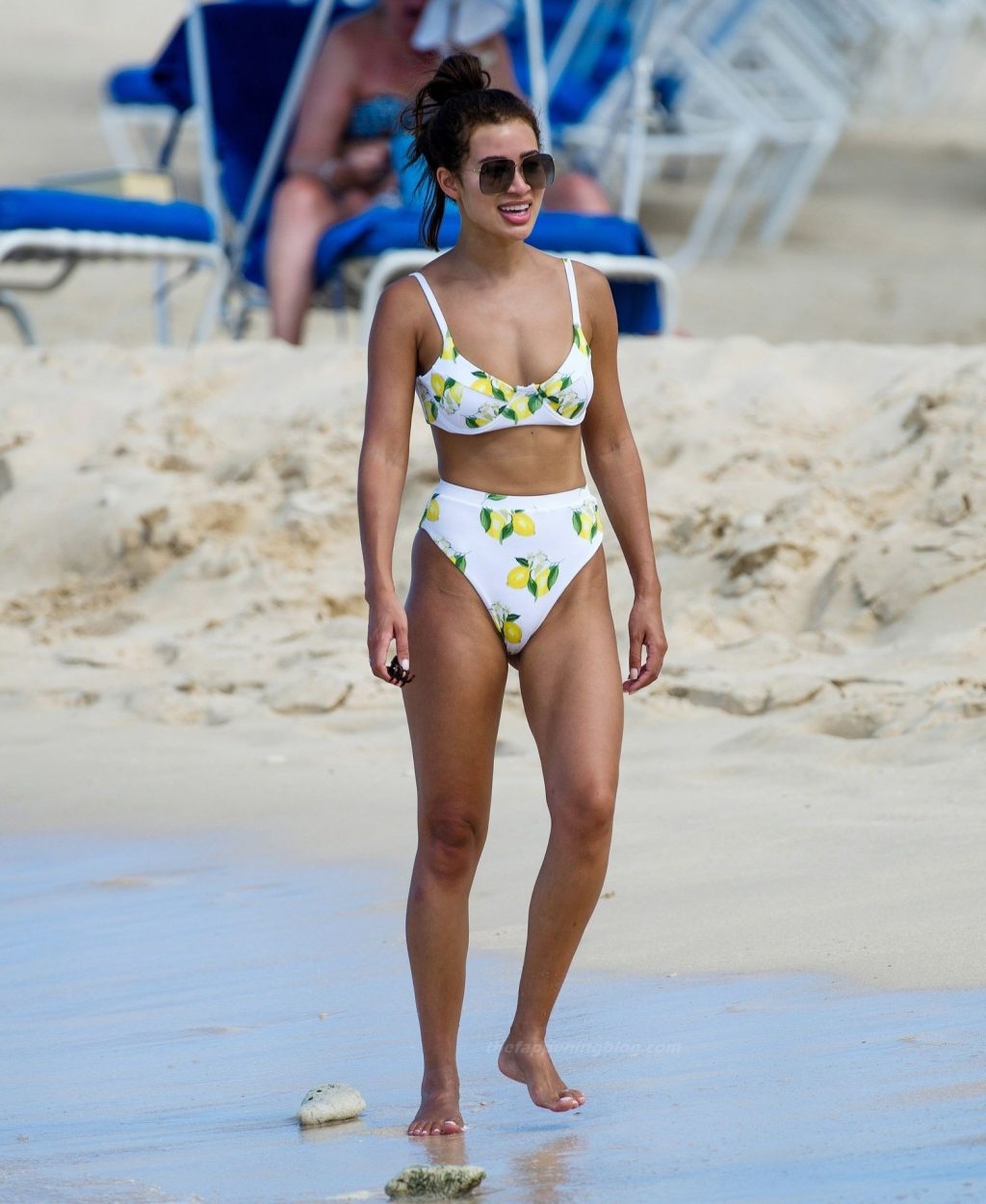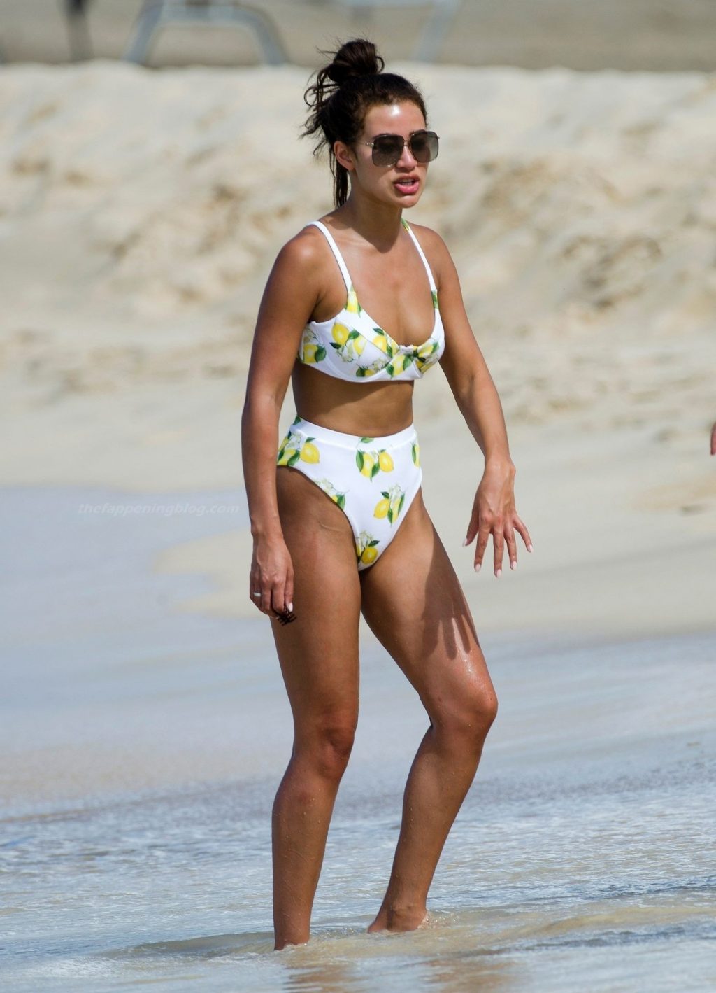 Love Island’s Montana Brown indossa un bikini con motivo a limoni mentre si gode una giornata sulla spiaggia a Barbados, 27/12/2020.