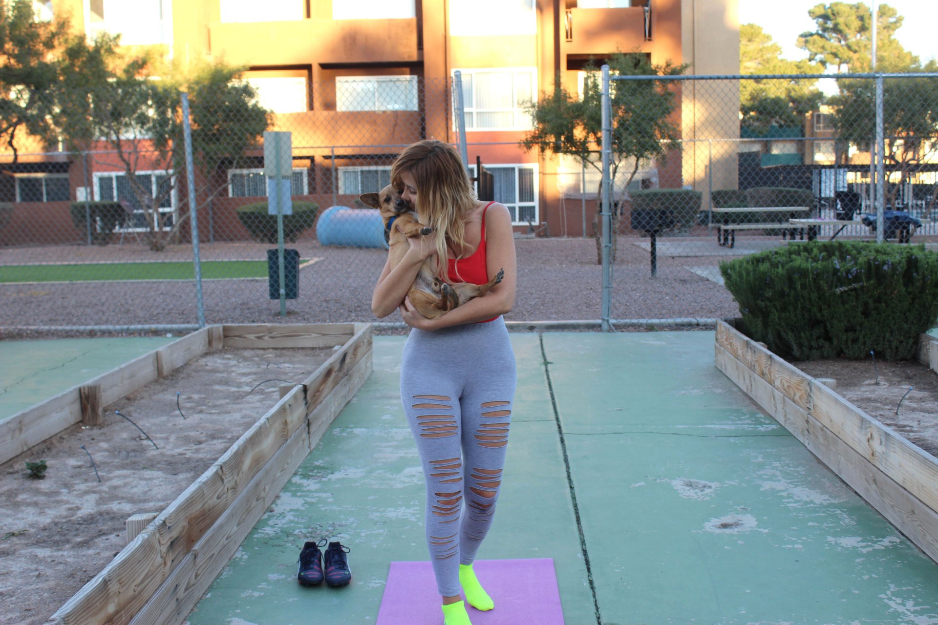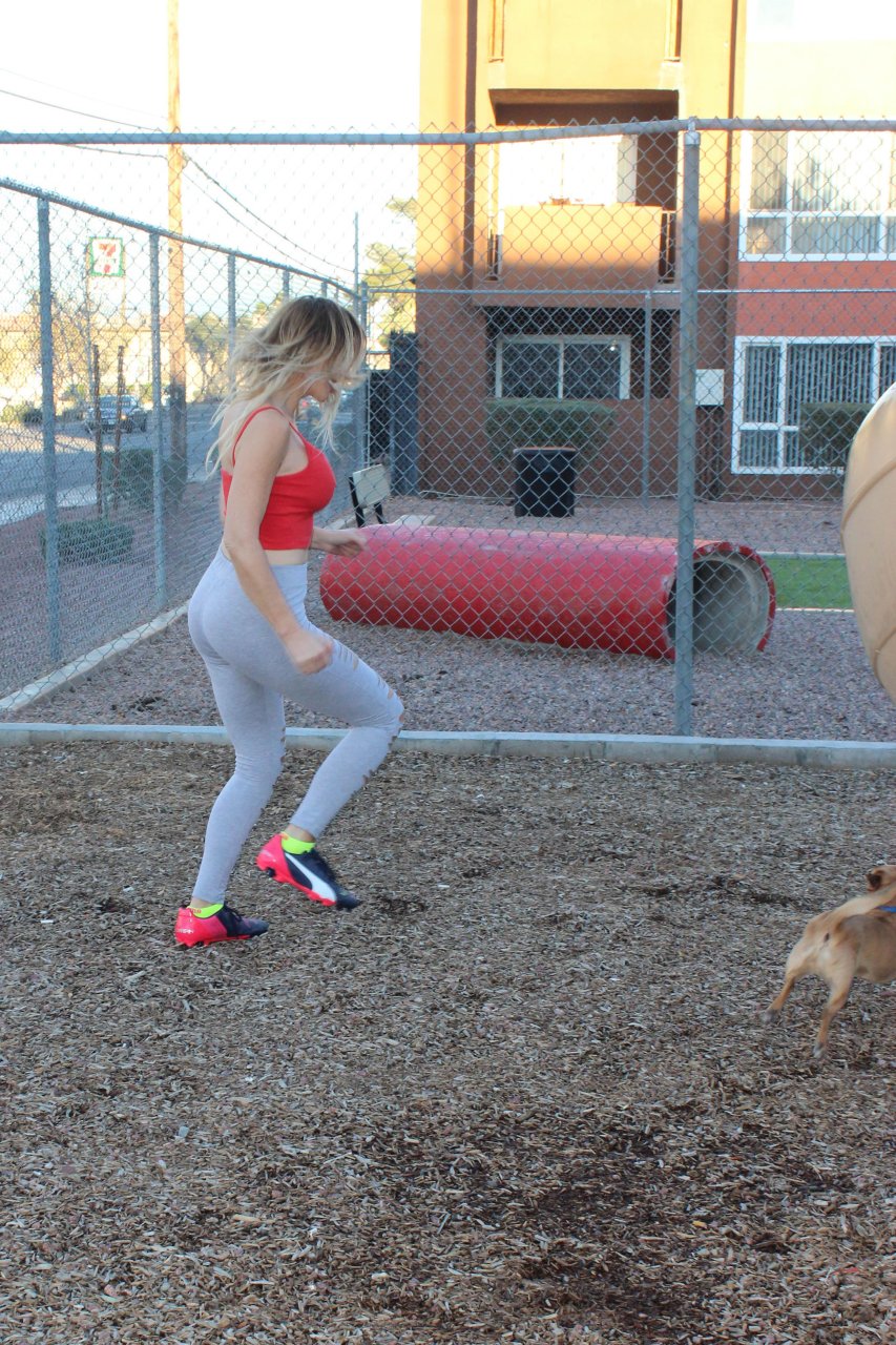 Nadeea Volianova si sta allenando con il suo cane a Los Angeles, 19/02/2017. Nadeea Volianova è una cantante francese/russa, attrice (The Wounded (2003)) e dj. Età: 30 (nata il 2 settembre 1986).