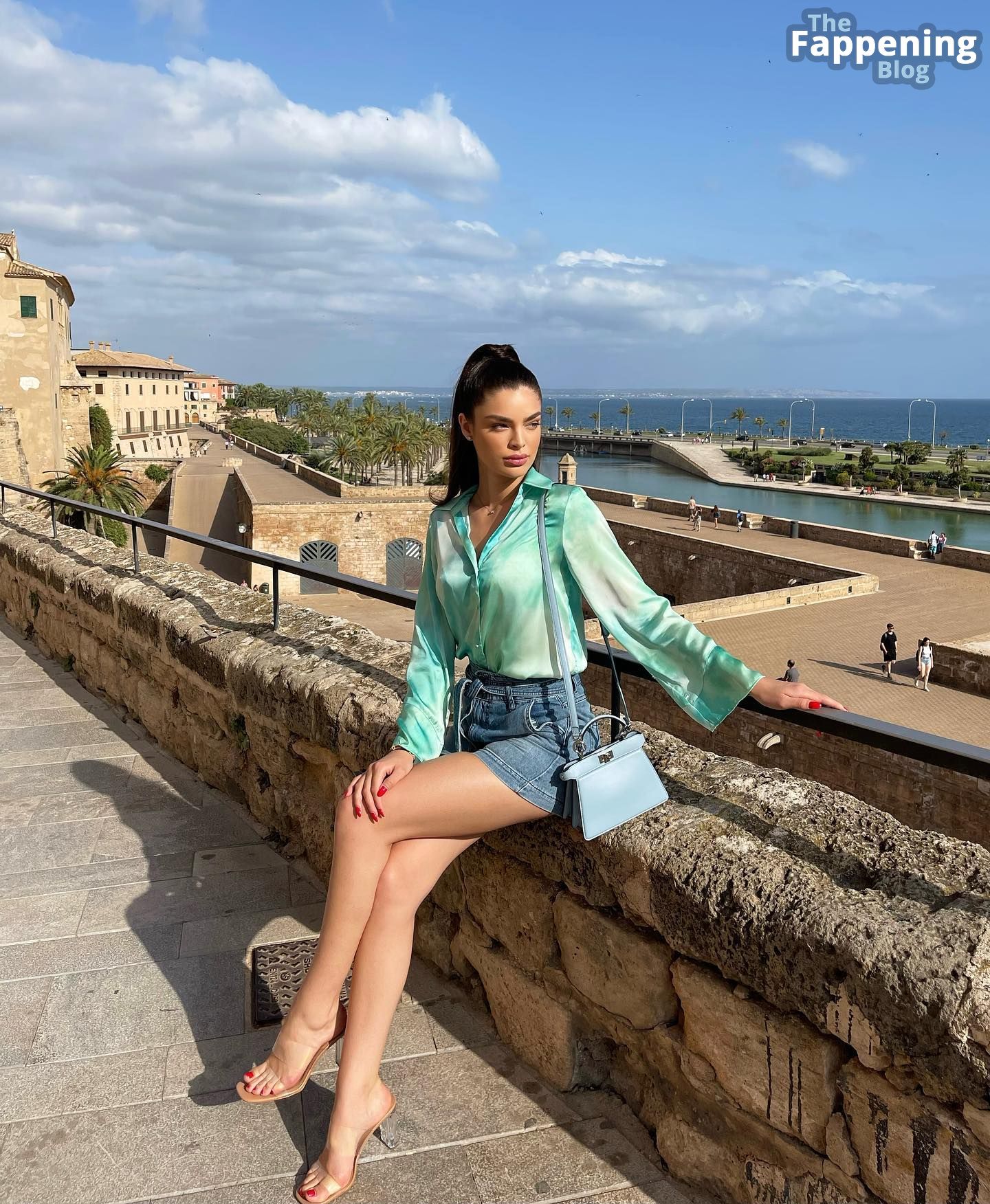 Nadia Ferreira mostra il suo attraente décolleté, seni naturali, seducenti glutei, gambe modellate e fisico snello da modella in bikini a perizoma e outfit rivelatori nelle sue foto sui social media, eventi e servizi professionali per la sua seducente raccolta fotografica.