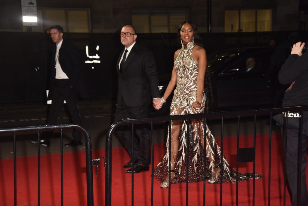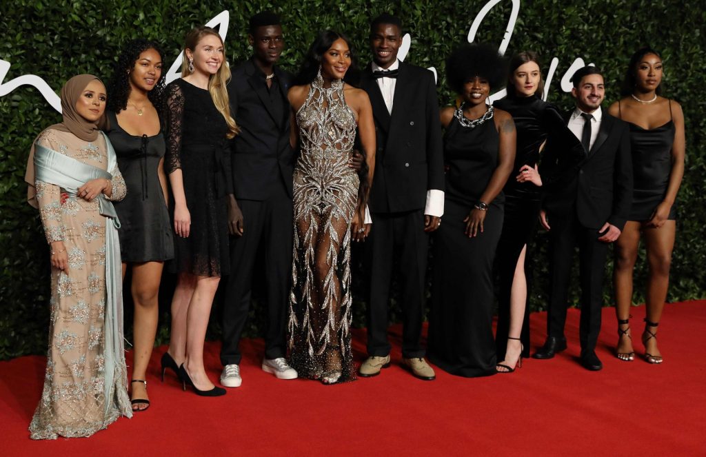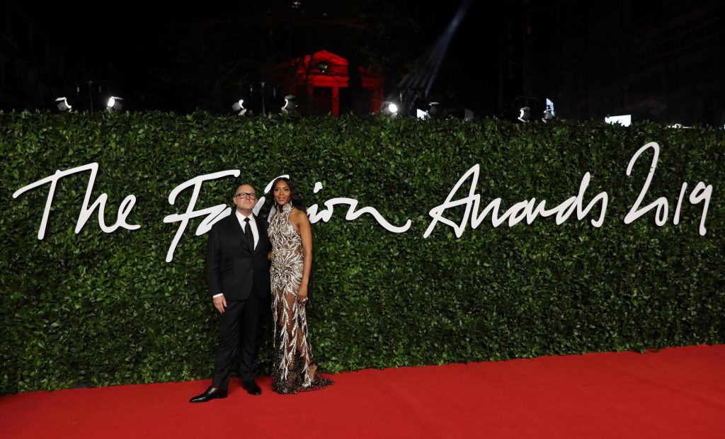 La modella britannica Naomi Campbell posa sul red carpet al suo arrivo ai The Fashion Awards 2019 a Londra, 12/02/2019. La superstar ha sfoggiato la sua figura sexy, indossando un vestito trasparente con strass.