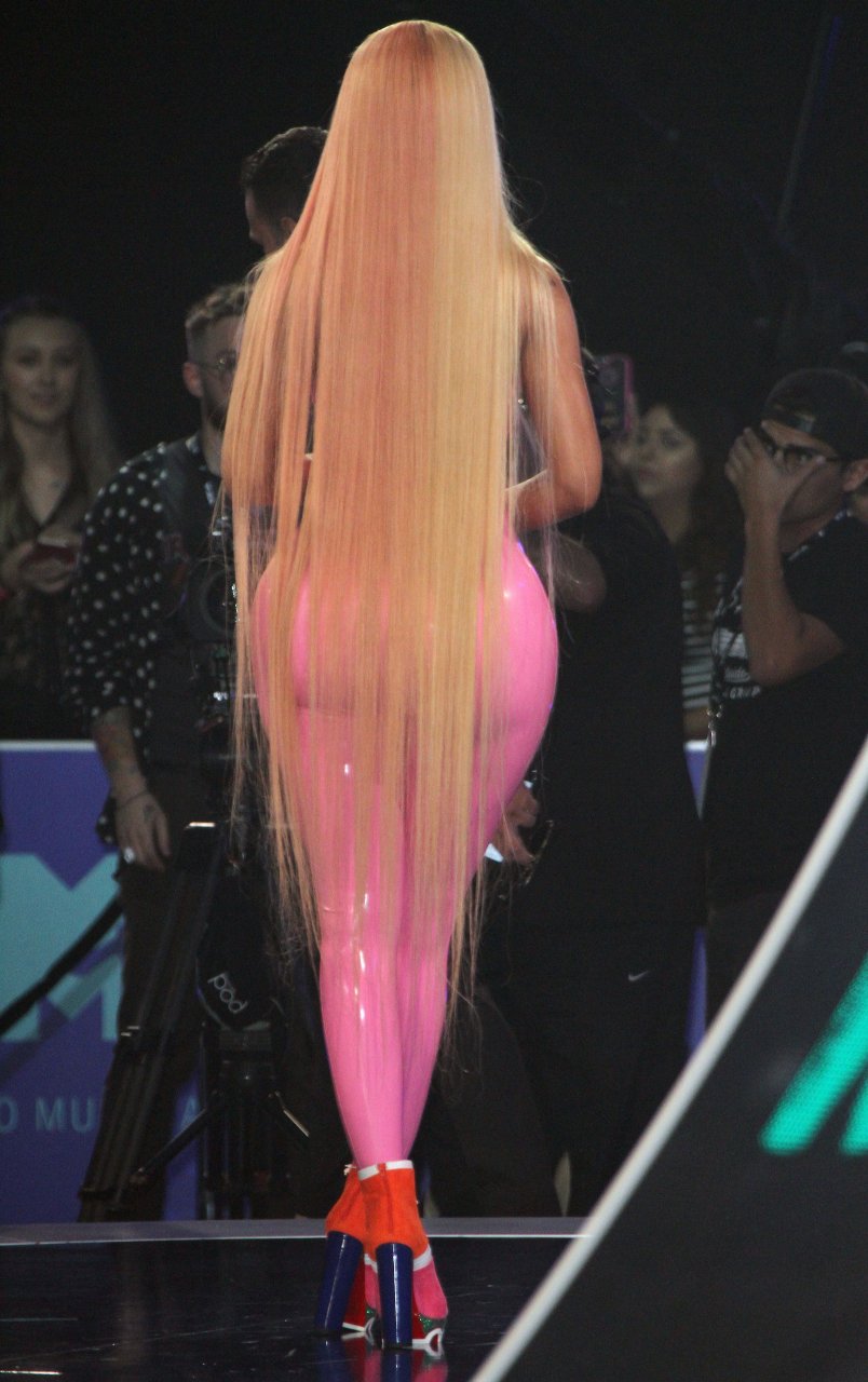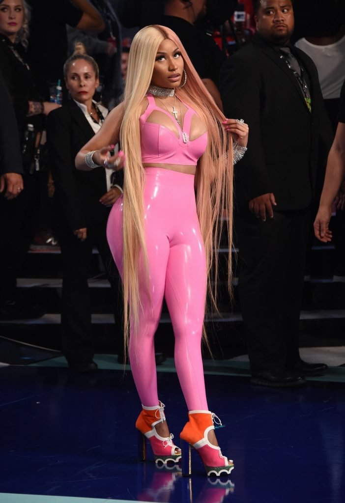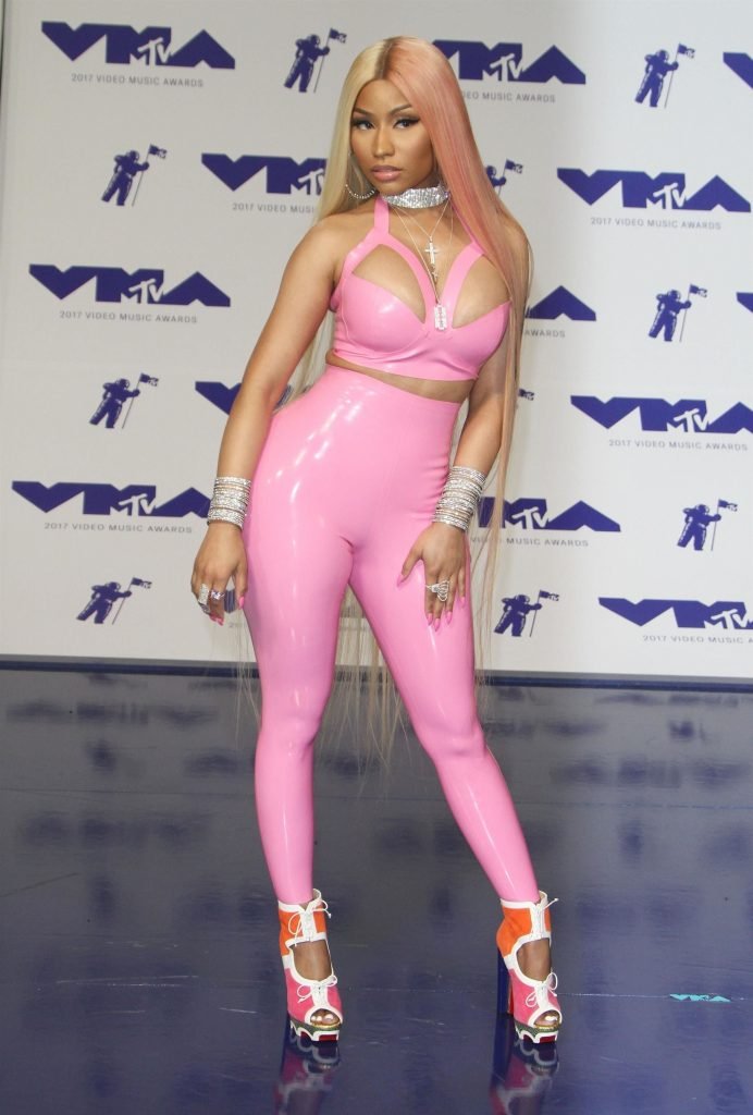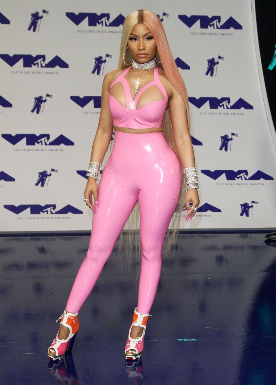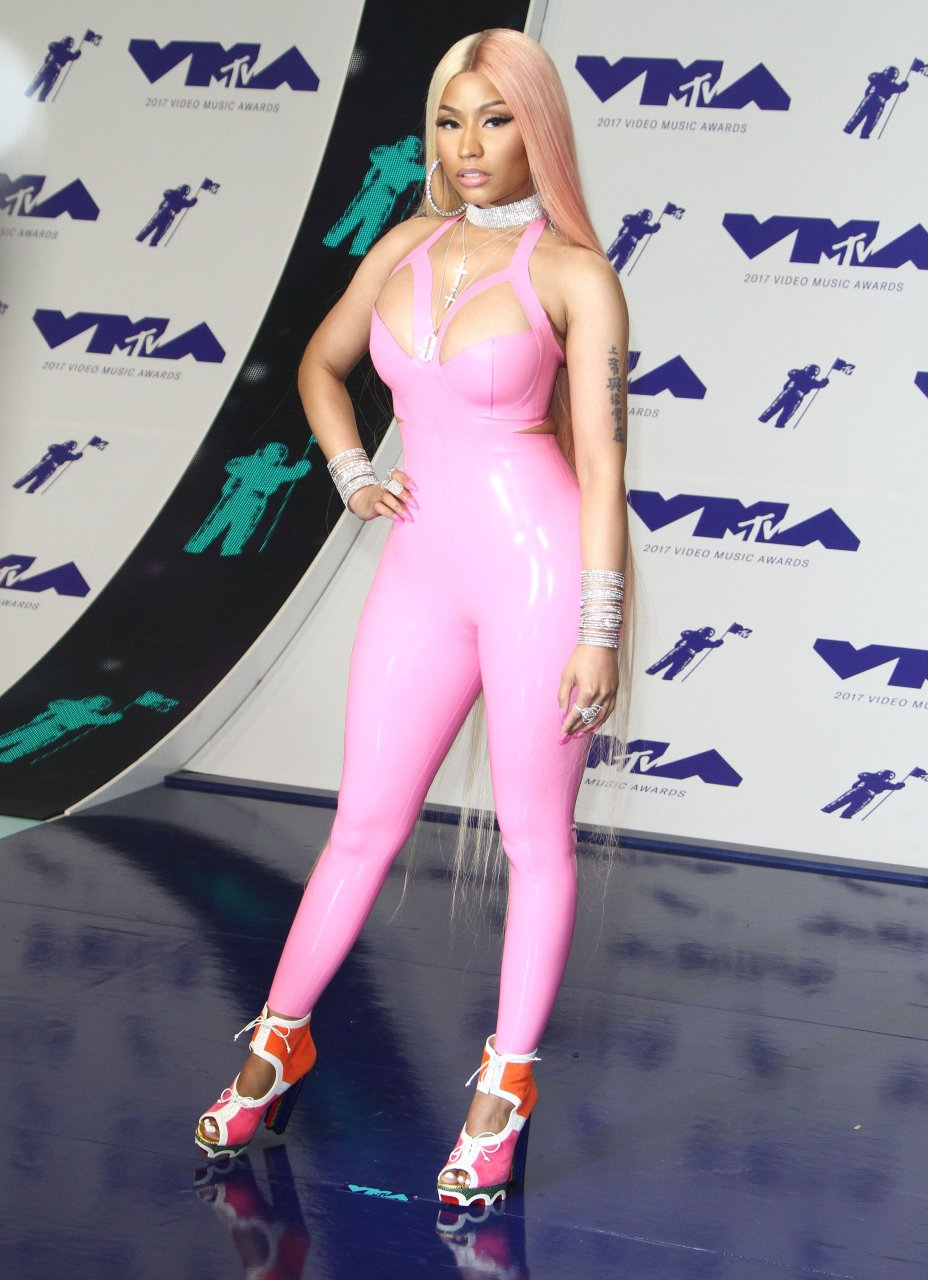 Nicki Minaj quasi esplode dal catsuit in lattice rosa ai MTV Video Music Awards 2017 a Inglewood, 27/08/2017. Onika Maraj è una cantante, cantautrice e attrice americana nata a Trinidad. Età – 34 anni.