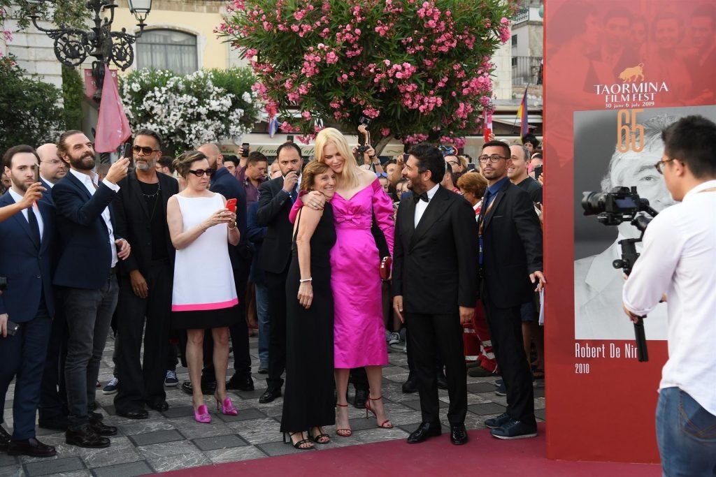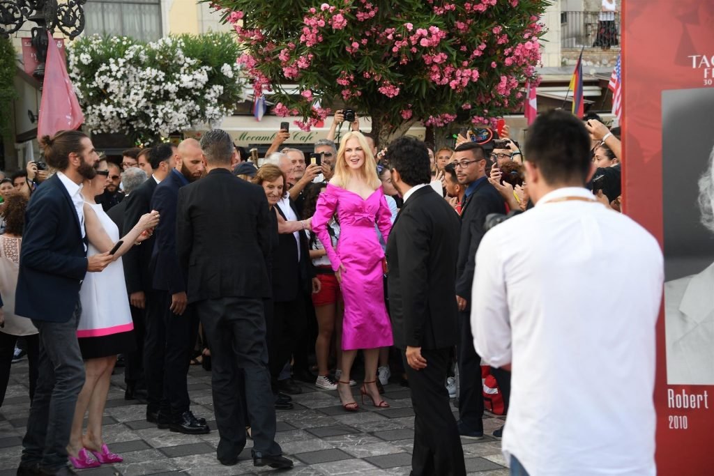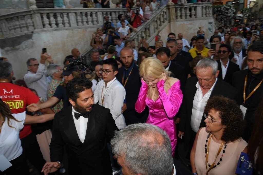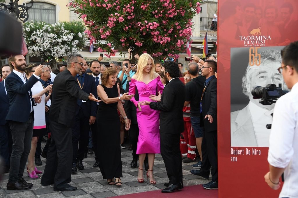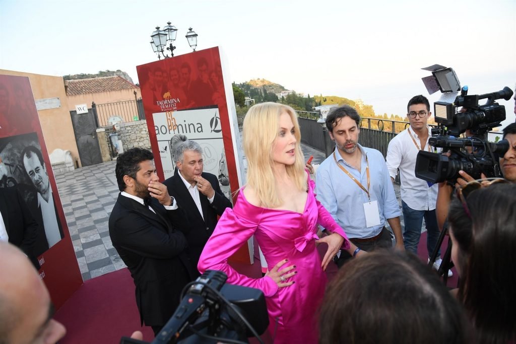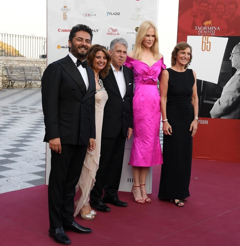 La bionda Nicole Kidman partecipa al Red Carpet del 65° Taormina Film Fest al Teatro Antico di Taormina, Italia, 01/07/2019. L’attrice di 52 anni ha scelto per l’evento un bellissimo vestito rosa e sandali scarlatti.