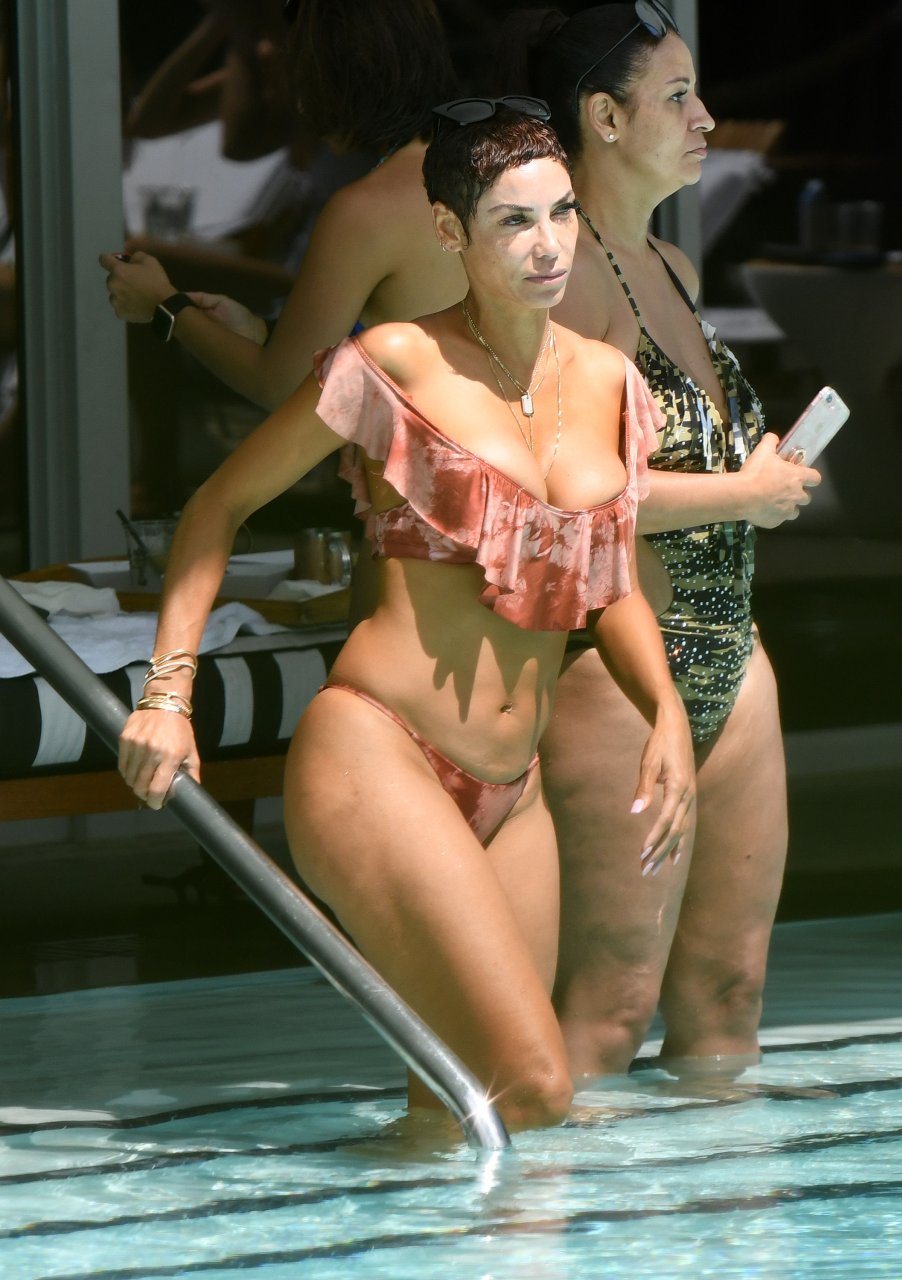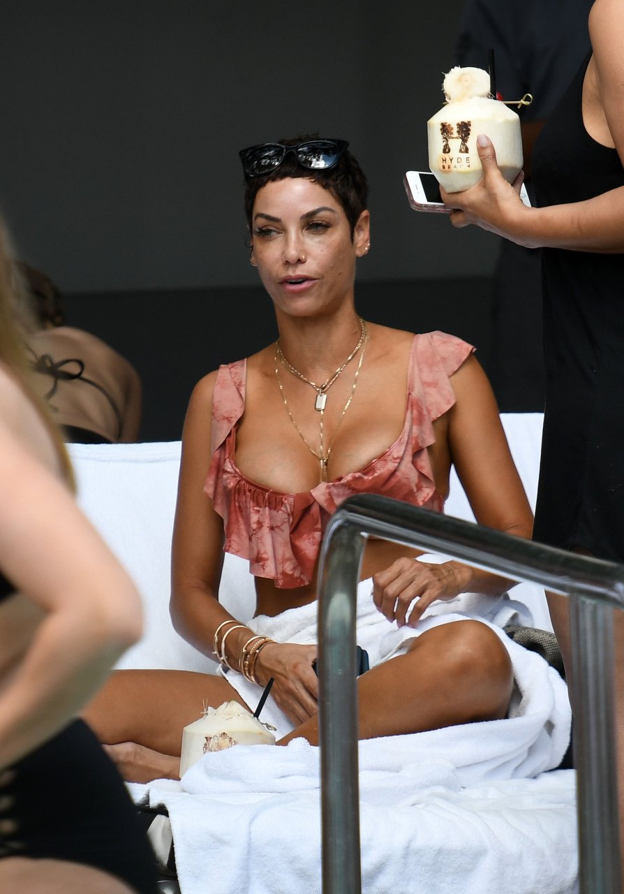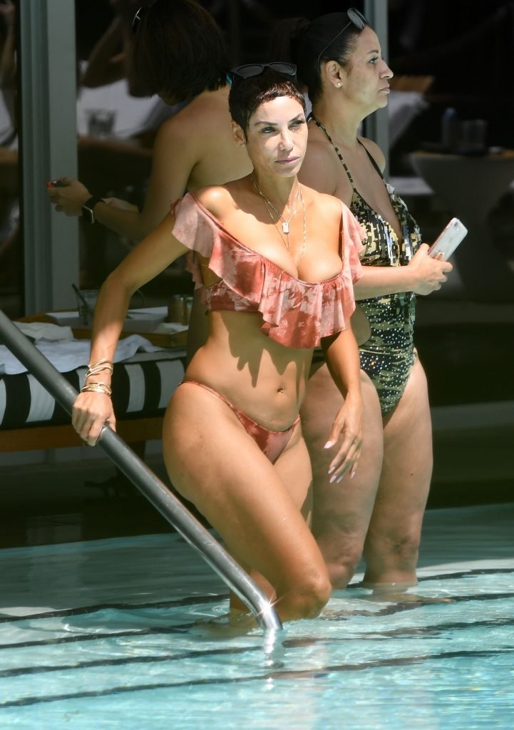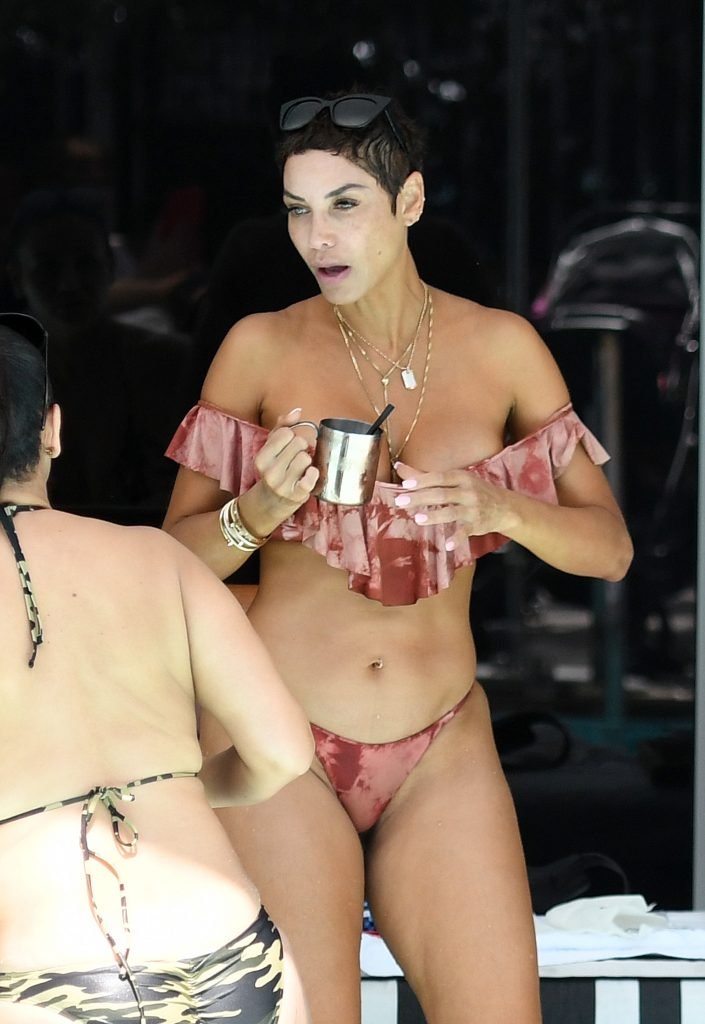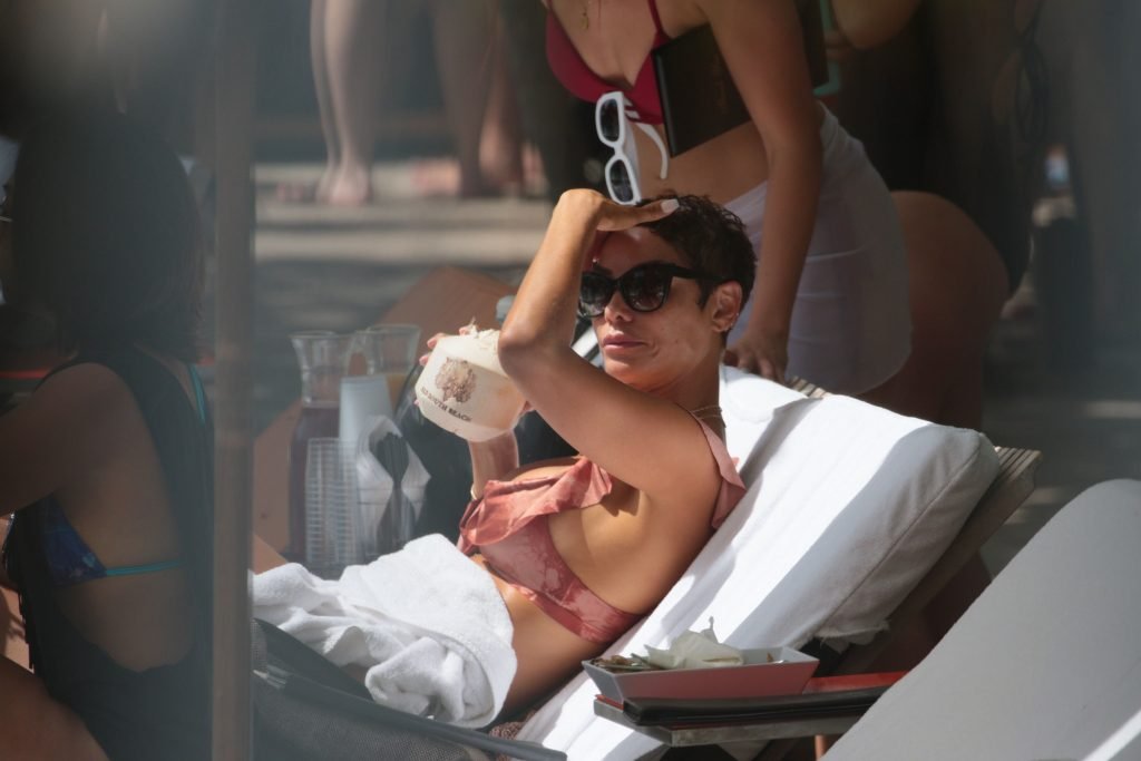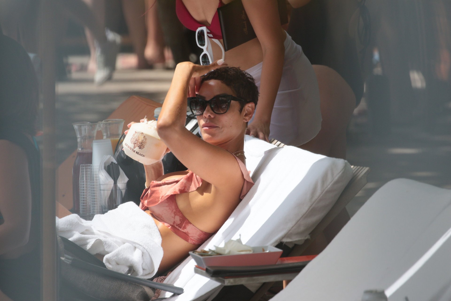 L’attrice e modella Nicole Murphy indossa un bikini rosa mentre si rilassa a bordo piscina a Miami Beach, 11/03/2018.