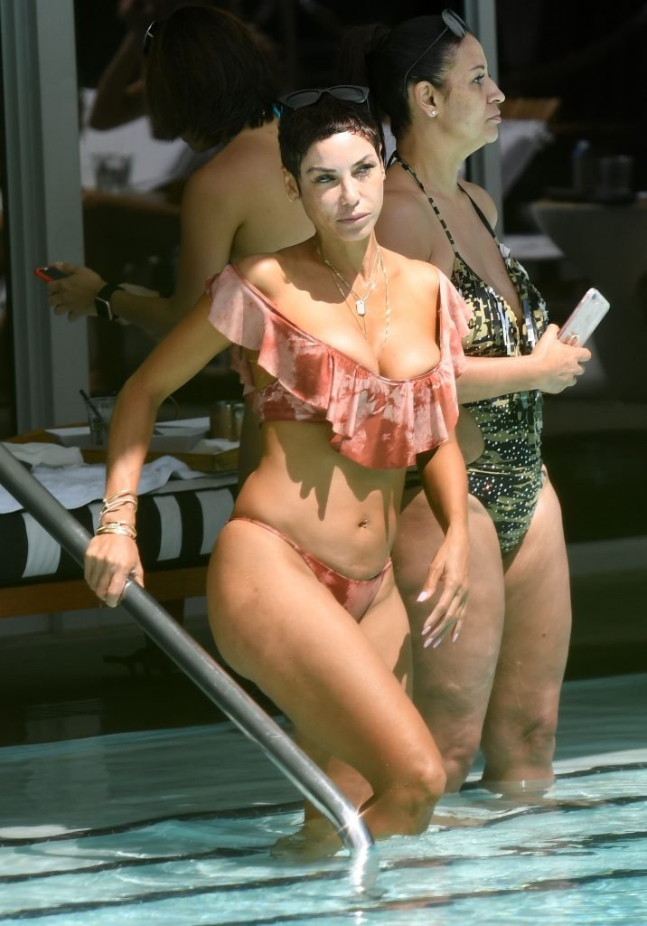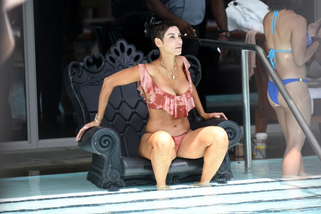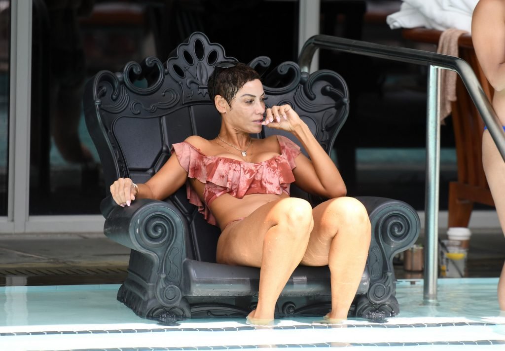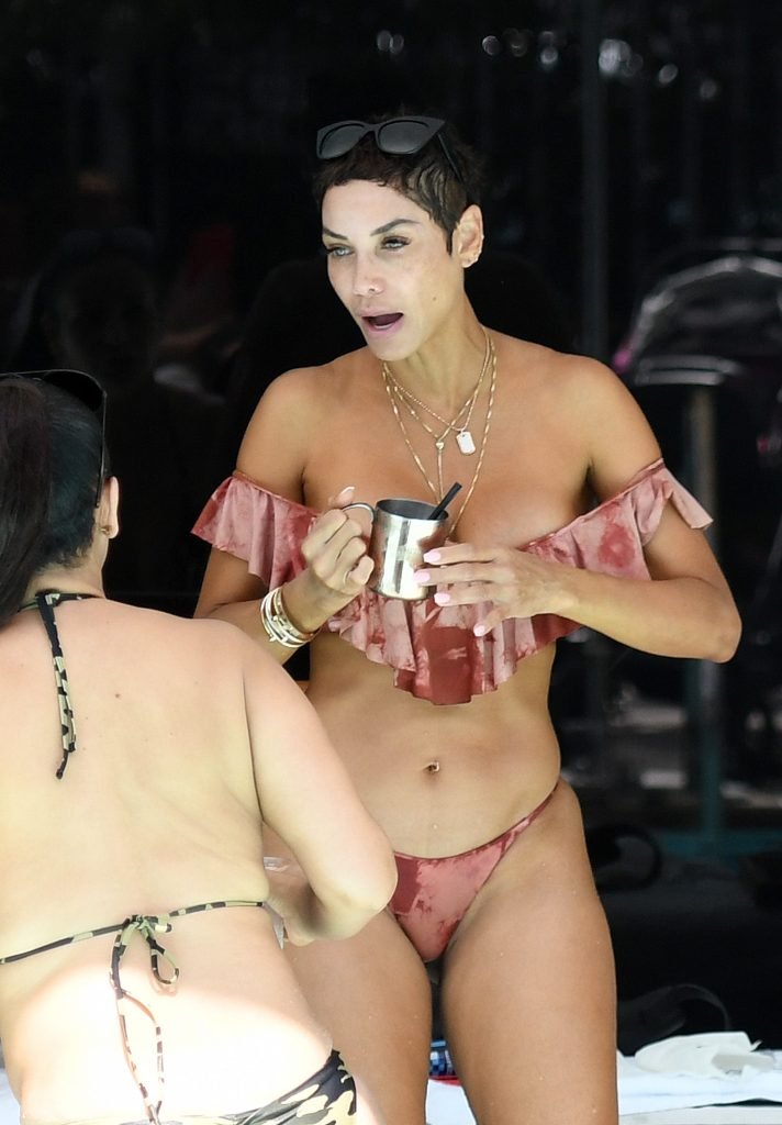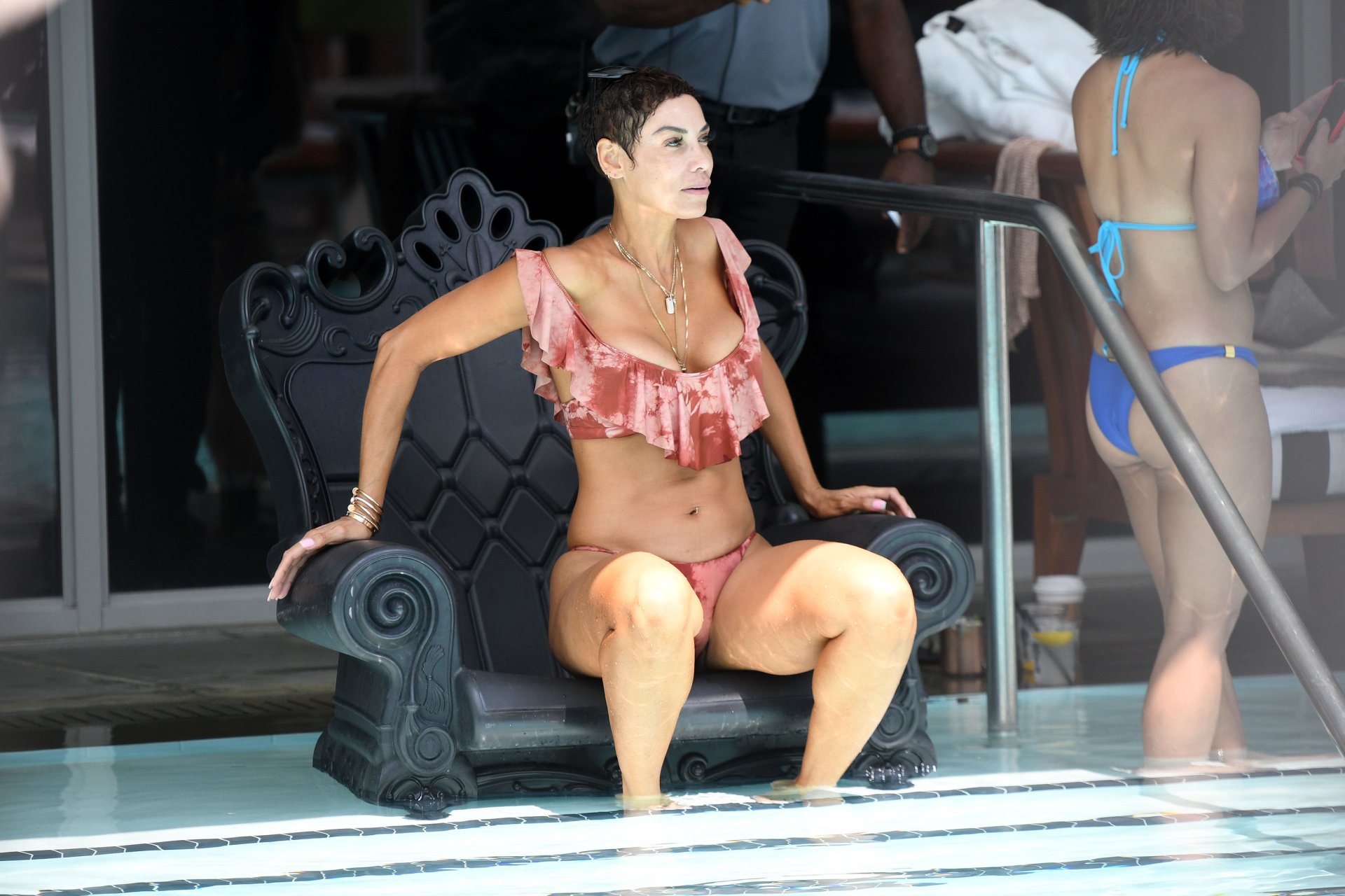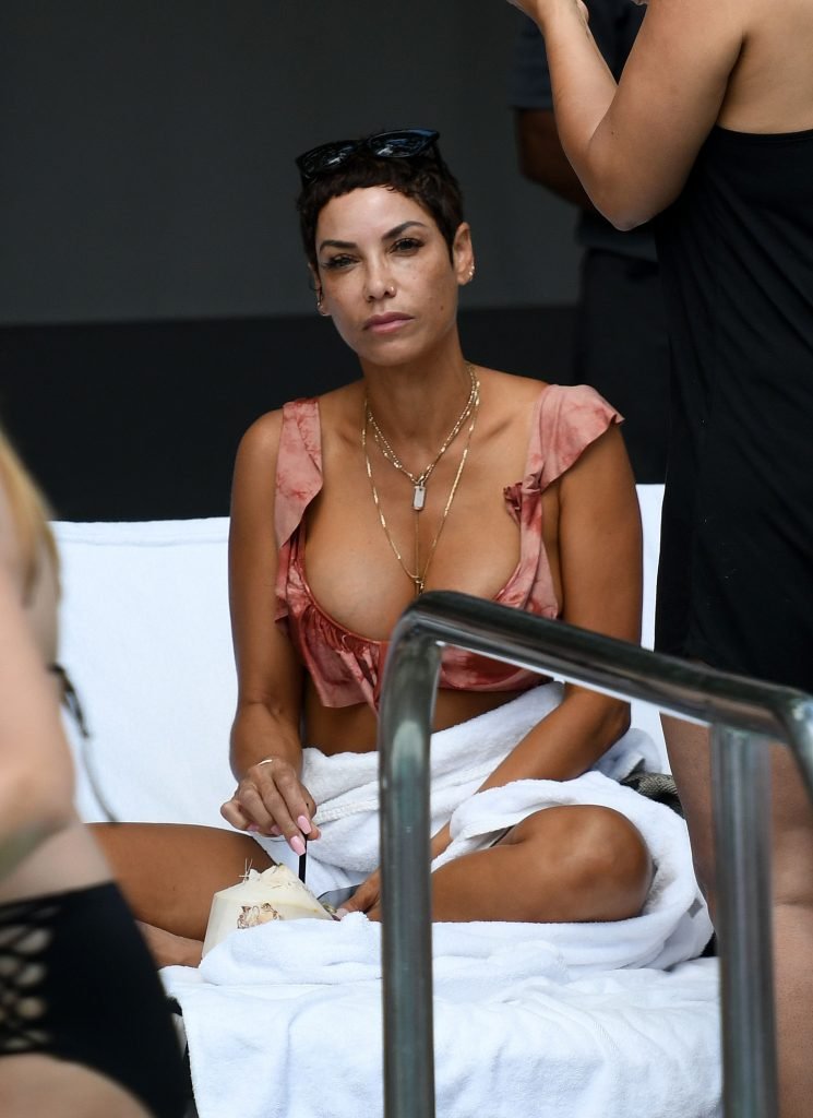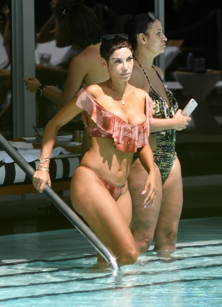 L’attrice e modella Nicole Murphy indossa un bikini rosa mentre si rilassa a bordo piscina a Miami Beach, 11/03/2018.