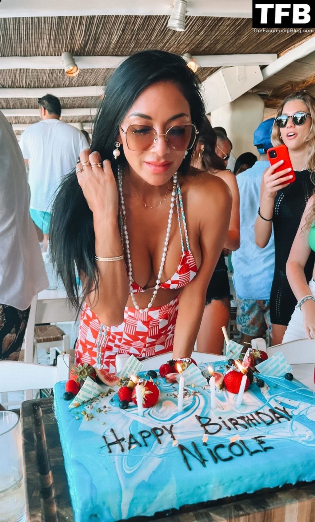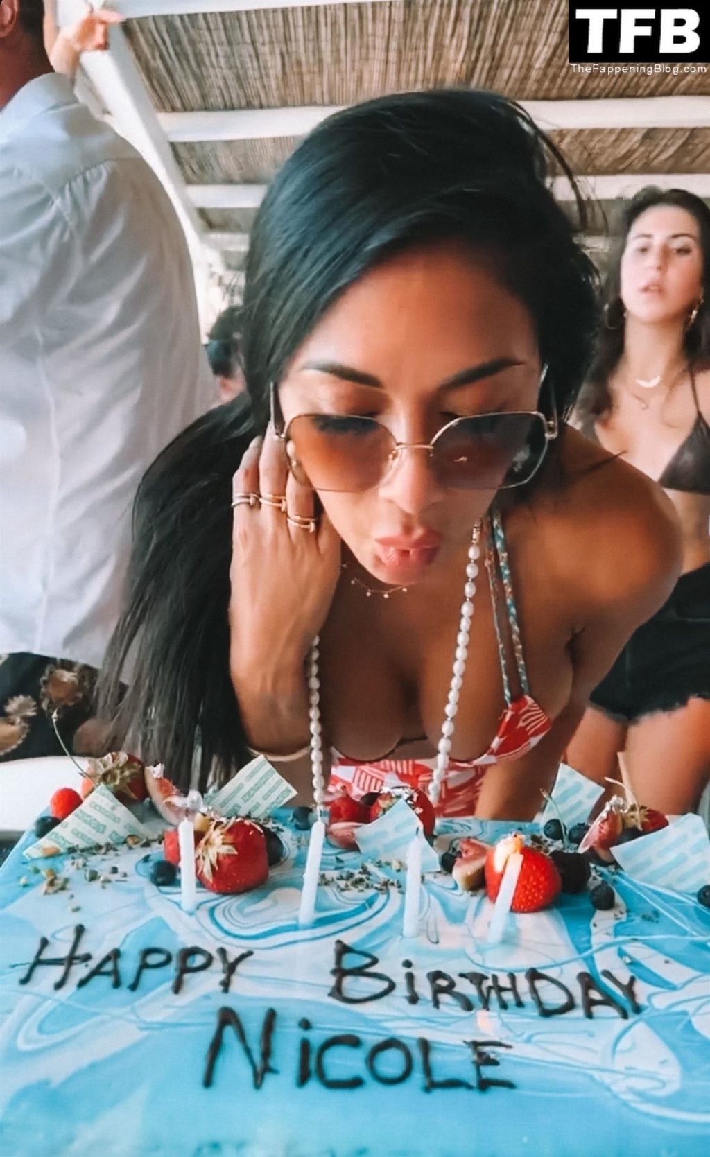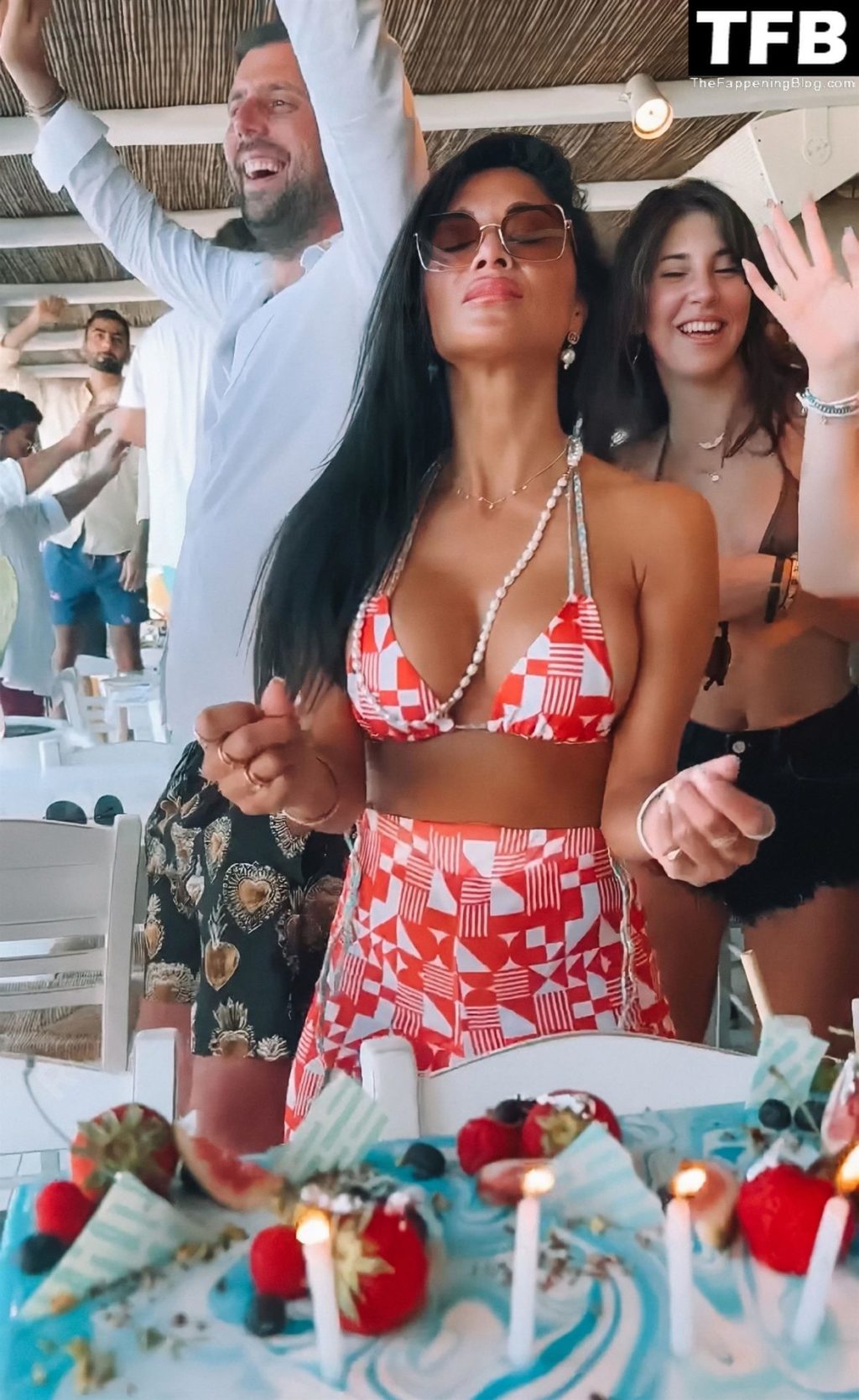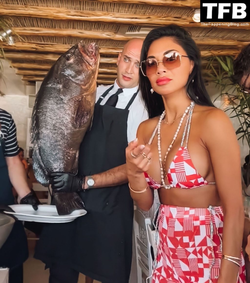La star del Fappening Nicole Scherzinger è stata vista a Mykonos mentre si divertiva molto durante i festeggiamenti per il suo 44° compleanno in una festa in un beach bar, circondata da amici e ammiratori tra cui il suo fidanzato Thom Evans e Caroline Stanbury.