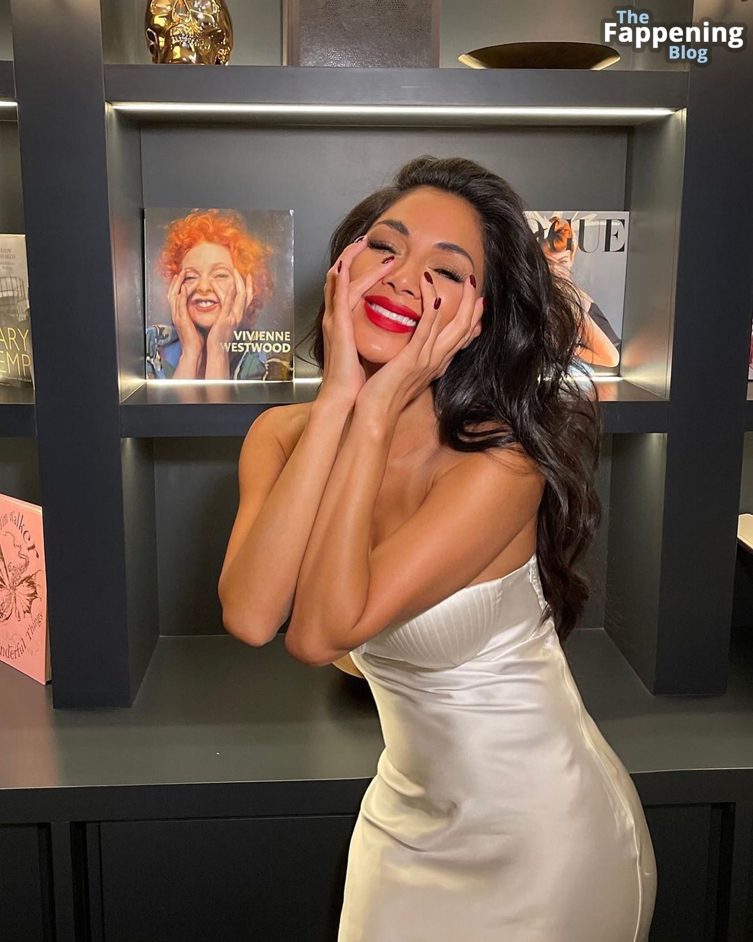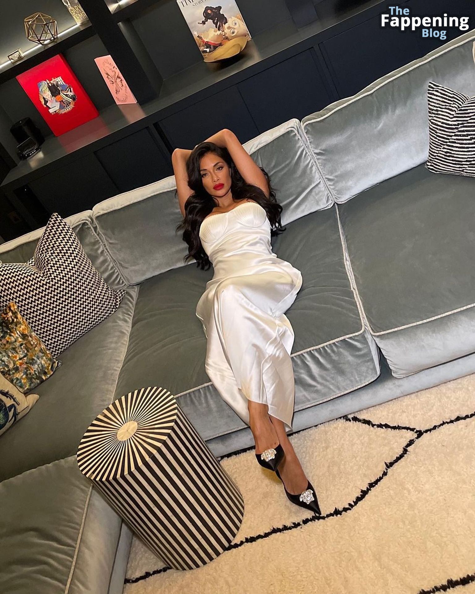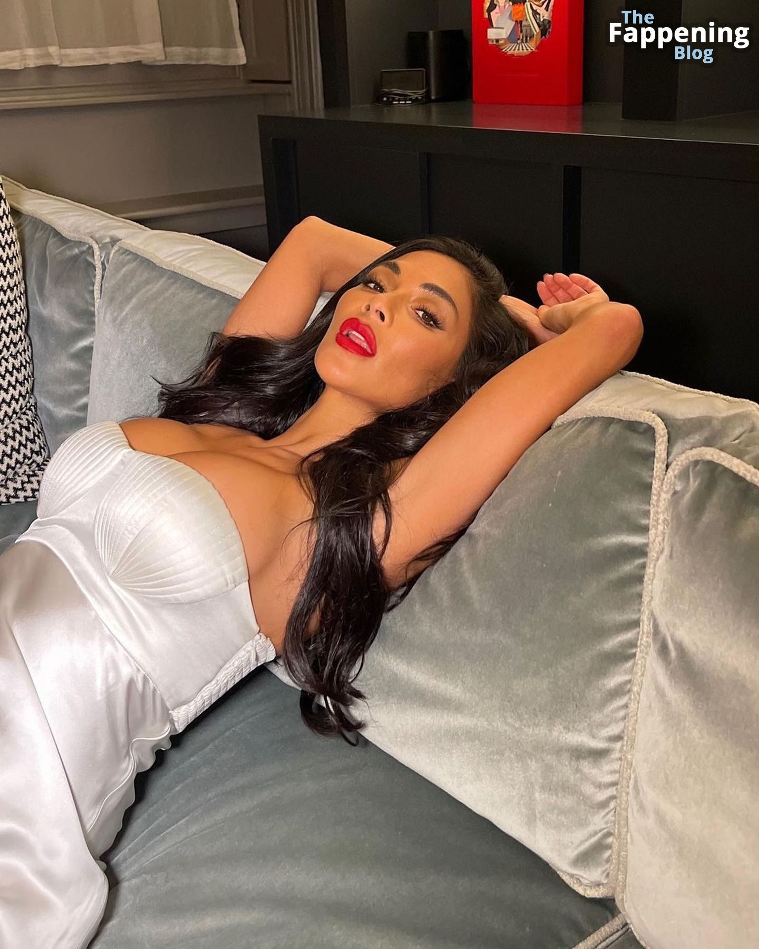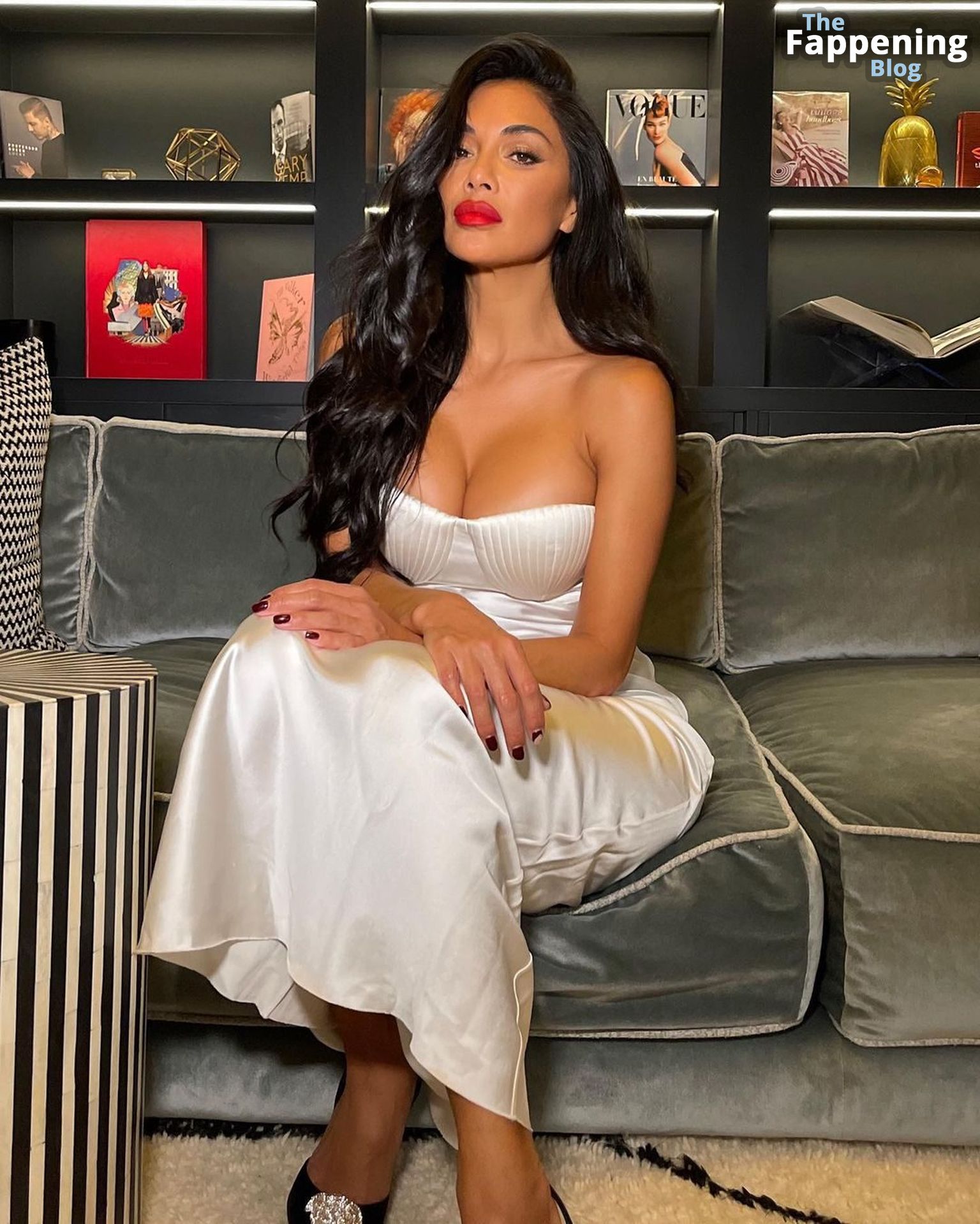 La star di The Fappening Nicole Scherzinger mostra le sue sexy tette finte posando con un elegante abito di raso in un servizio fotografico sui social media di Reinaldo Irizarry (gennaio 2023).