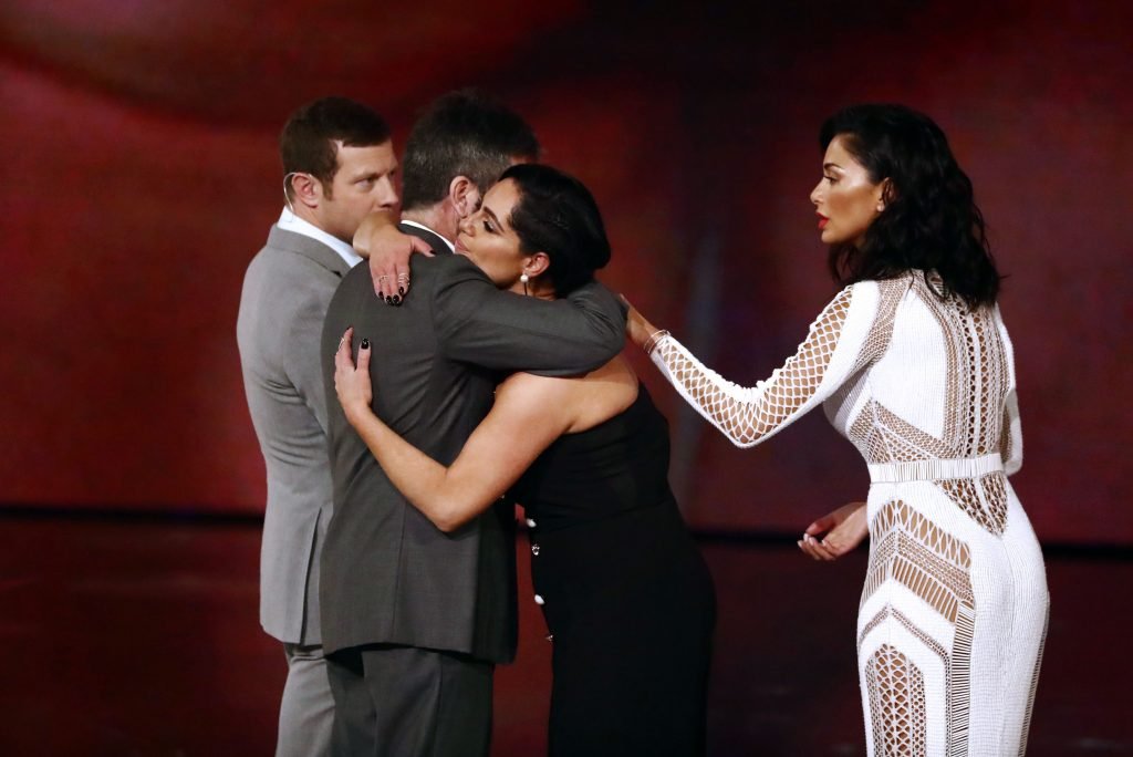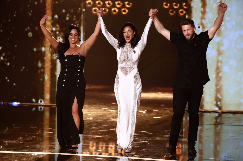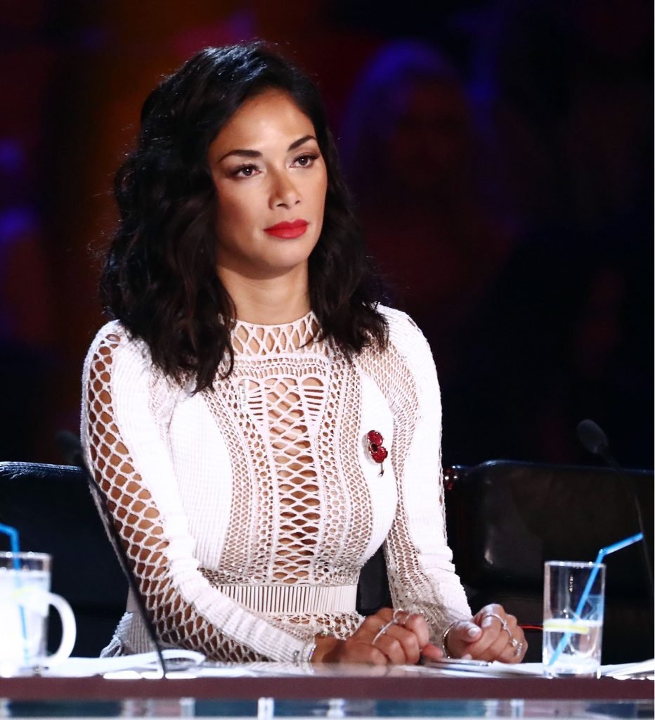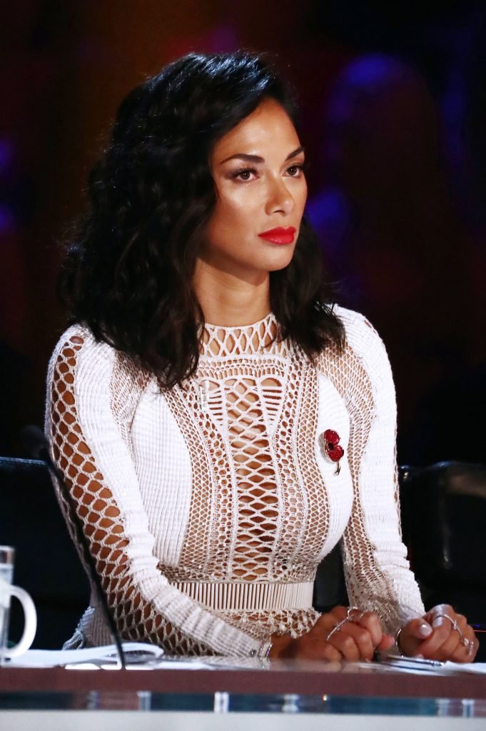 Nicole Scherzinger indossa un sexy abito bianco trasparente al programma TV ‘The X Factor’ (Serie 14, Episodio 20), Regno Unito, 11/05/2017. Nicole Scherzinger è un’artista discografica, attrice, star della televisione reality e ballerina. Età: 39 anni.