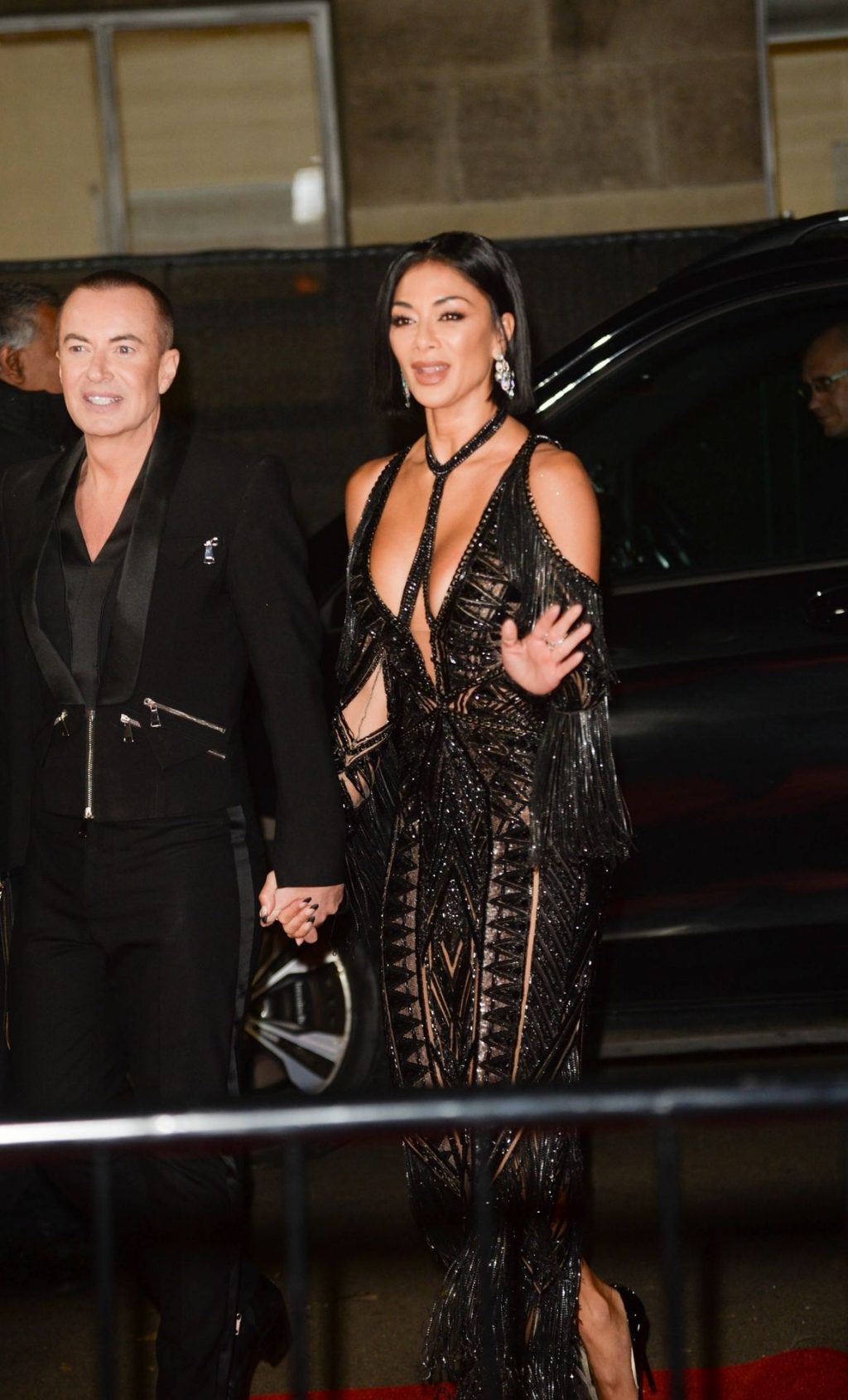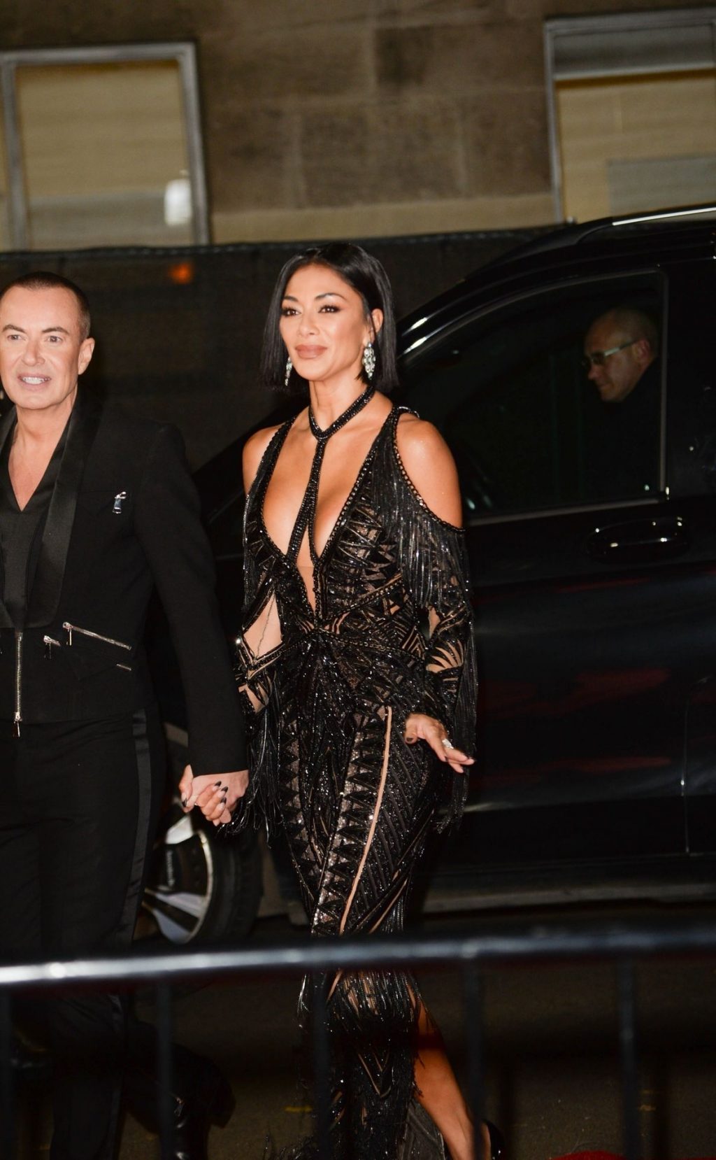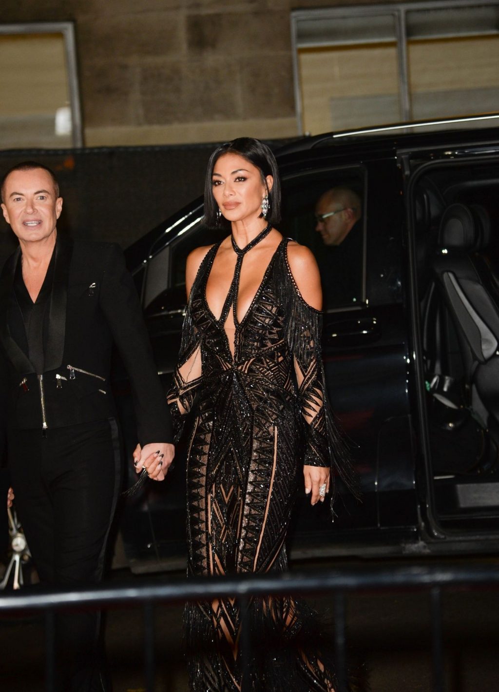 Il stilista gallese Julien MacDonald e la cantante statunitense Nicole Scherzinger posano sul red carpet all’arrivo ai The Fashion Awards 2019 a Londra, 12/01/2019