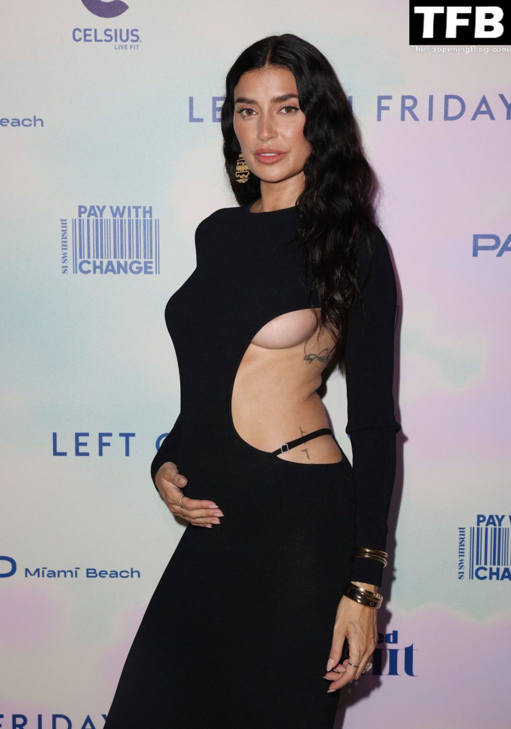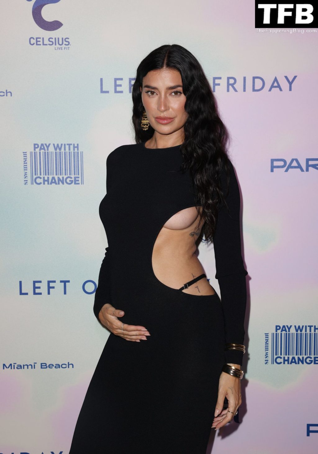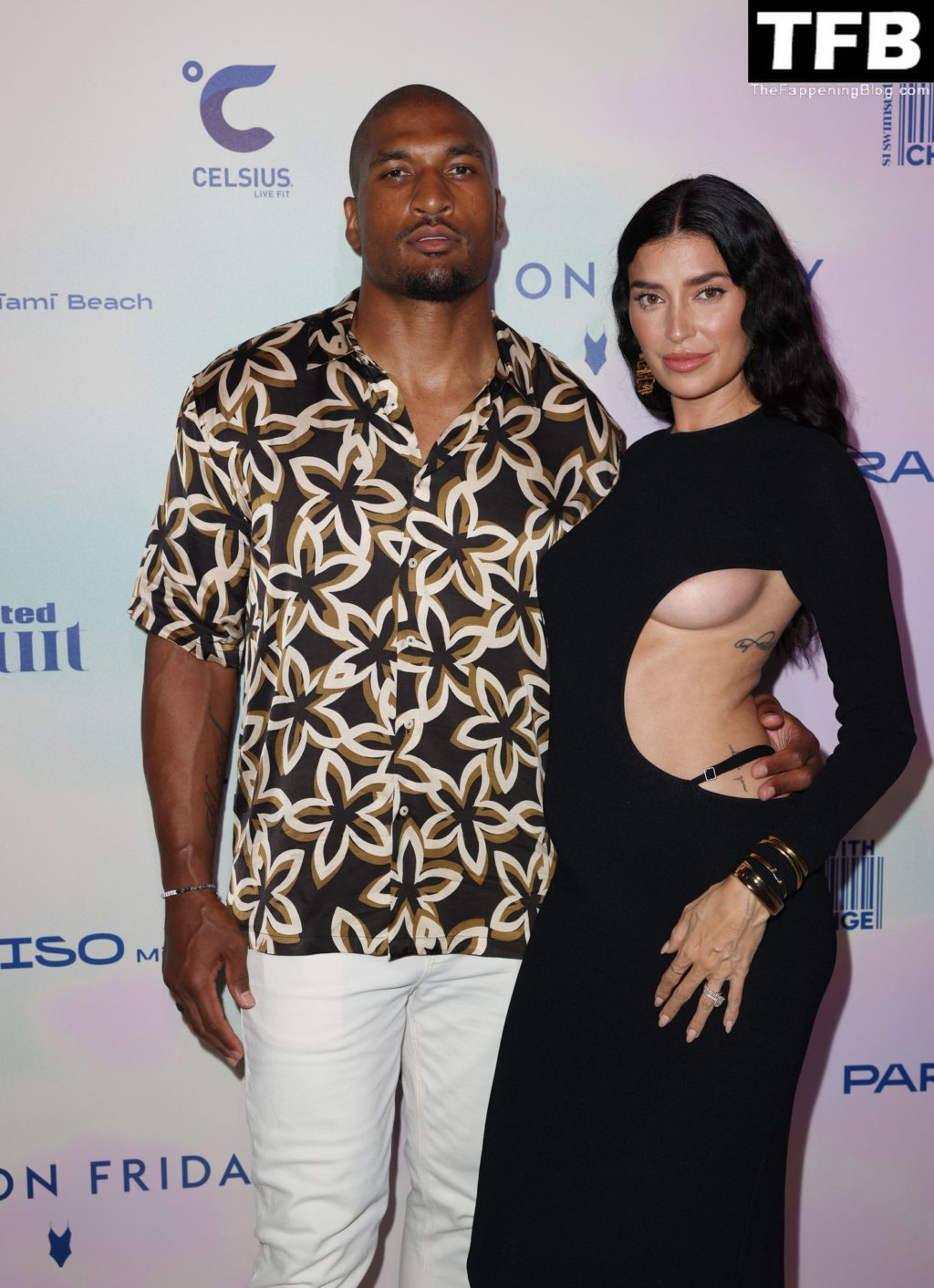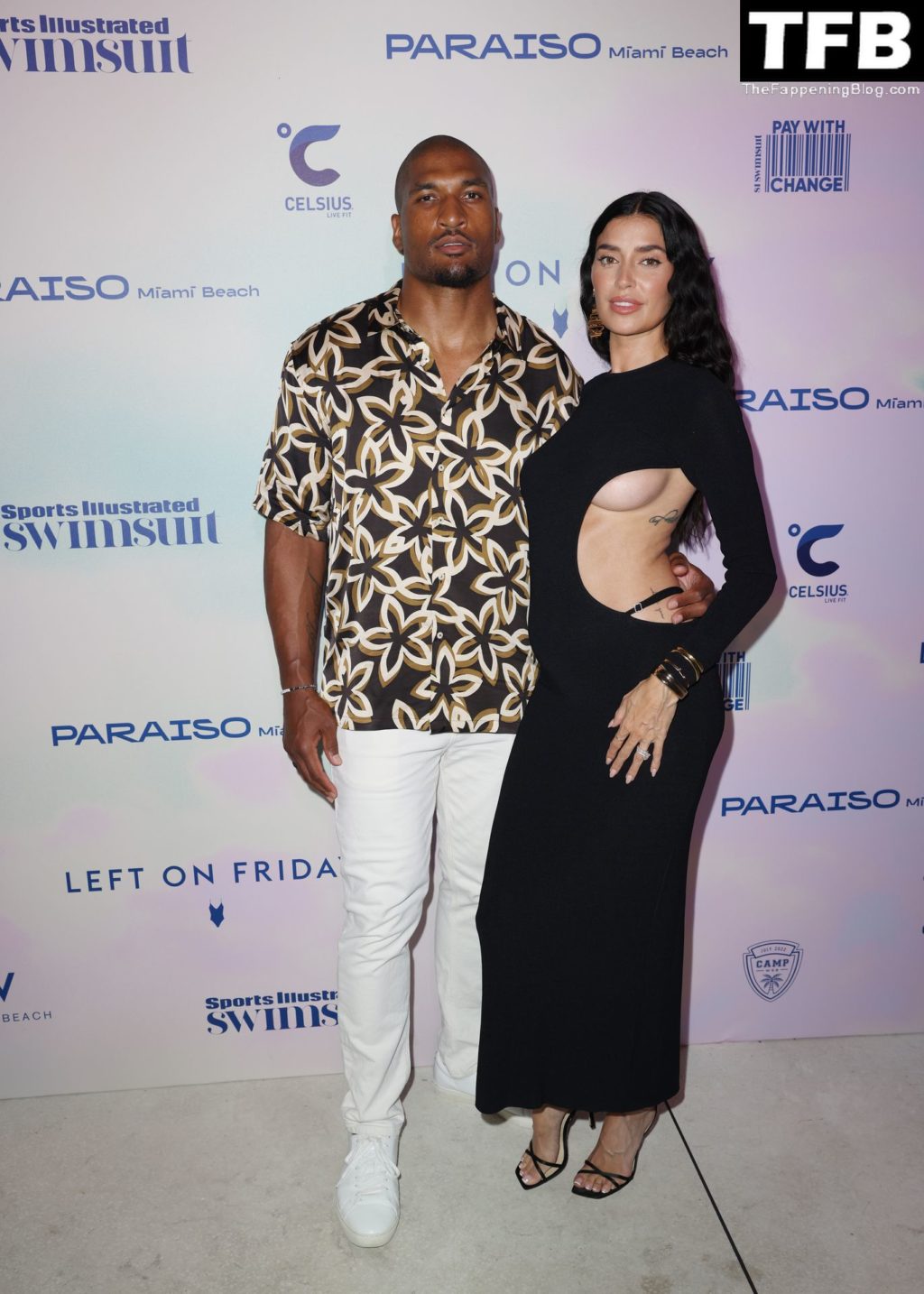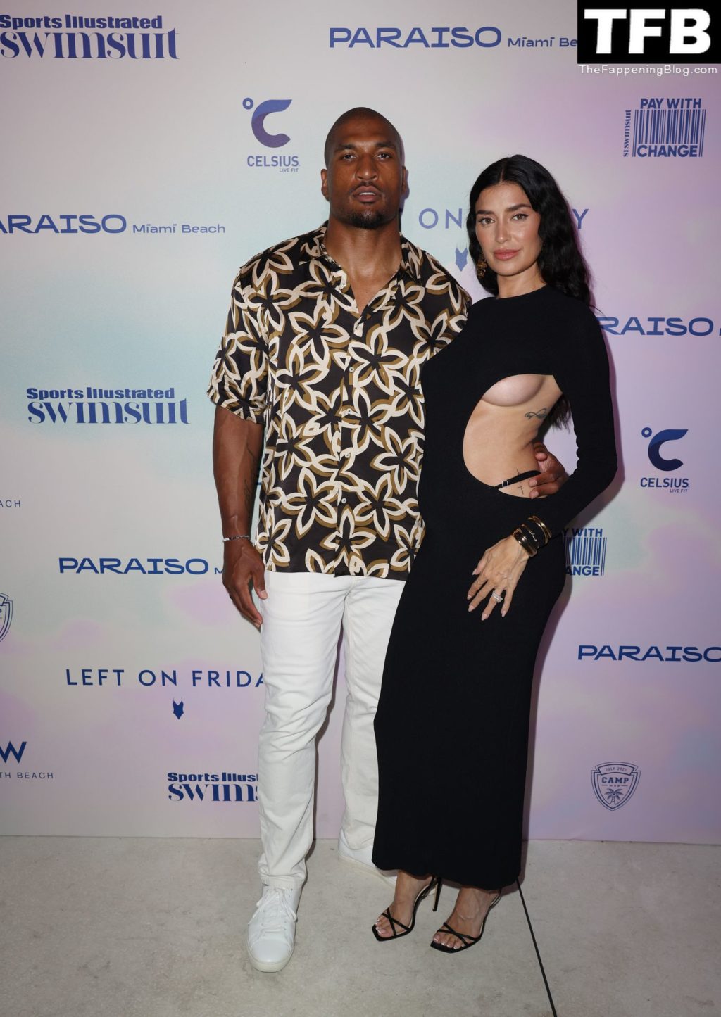 La modella senza reggiseno Nicole Williams English arriva alla sfilata di Sports Illustrated Swimsuit durante Paraiso Miami Beach a Miami Beach, Florida, 16/07/2022.