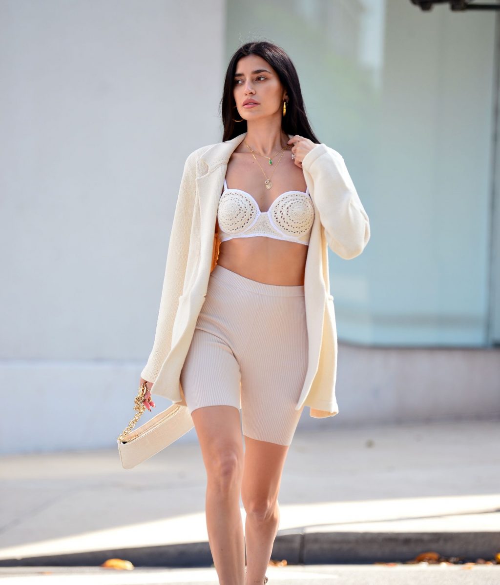 La star di Leggy WAGS Nicole Williams English blocca il traffico durante uno shooting di moda in stile street a Beverly Hills, 21/05/2021.