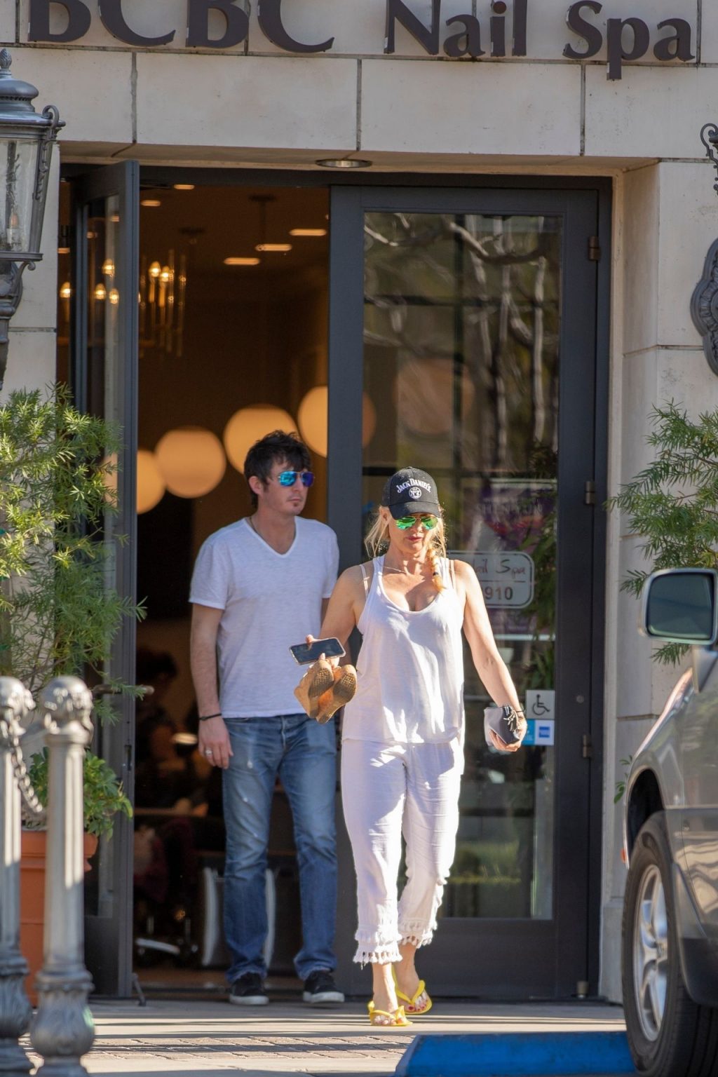 È possibile che Nicollette Sheridan abbia migliorato le sue forme? L’attrice ha mostrato un lato del seno molto sodo mentre si scambiava effusioni appassionate con il suo ragazzo dopo essersi fatta la pedicure a Calabasas, 18/03/2019.