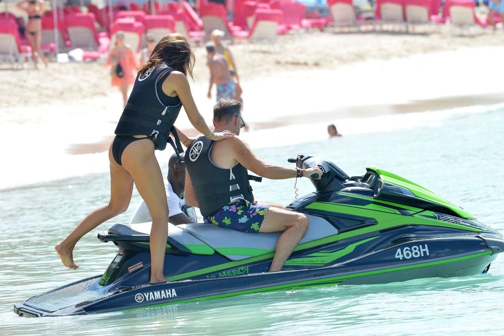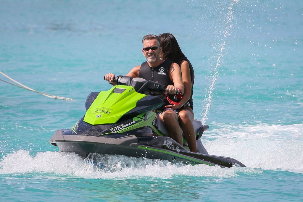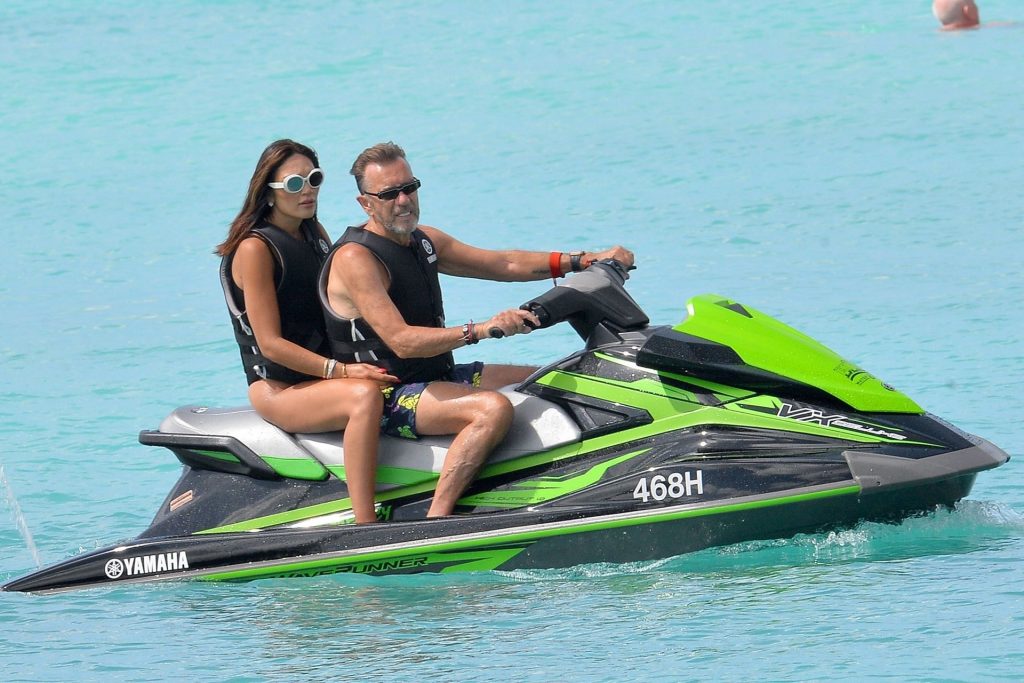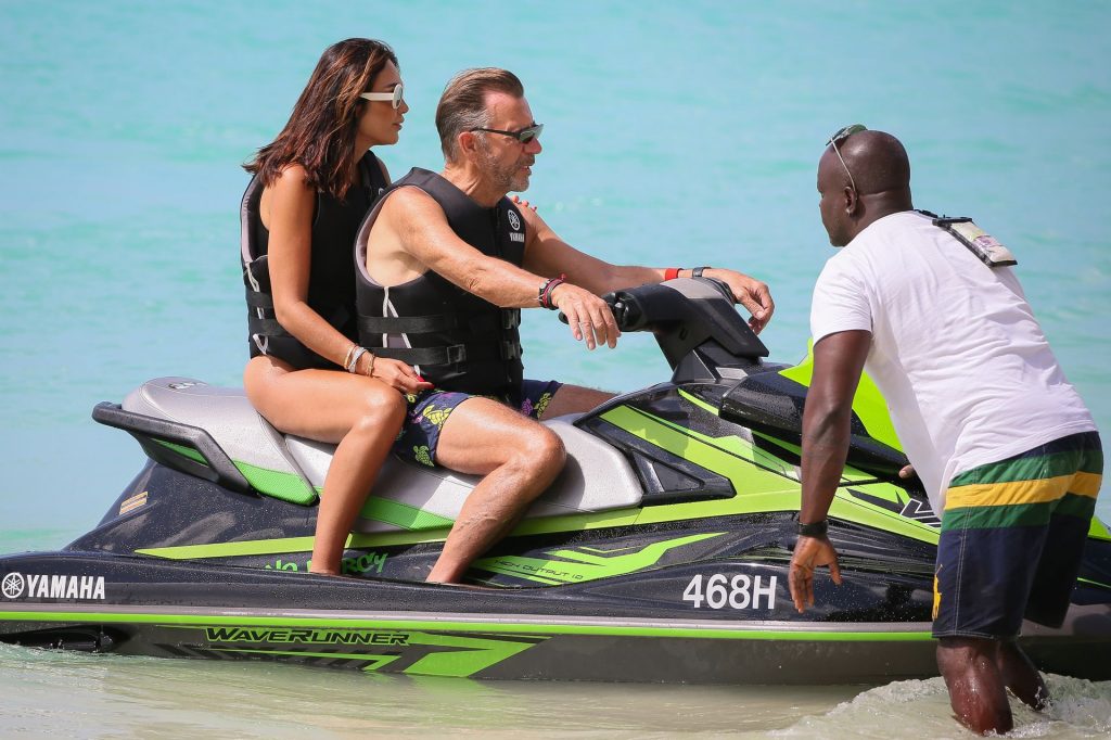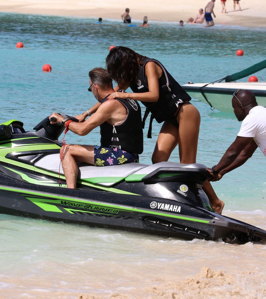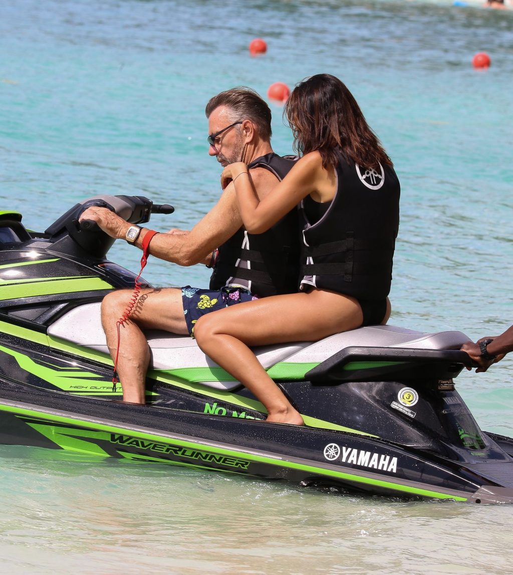 Imprenditore scozzese Duncan Bannatyne e sua moglie Nigora Bannatyne sono stati fotografati mentre si godevano la spiaggia a Barbados, 28/12/2019. Nigora ha mostrato il suo corpo mozzafiato indossando un costume intero nero con tagli interessanti.