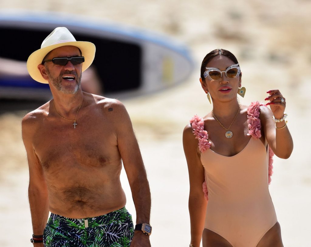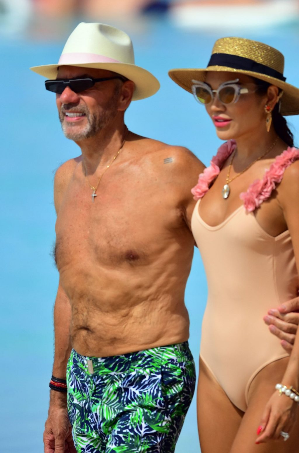 Duncan Bannatyne, 70 anni, e sua moglie Nigora, 39, si scambiano effusioni in pubblico e si tengono per mano durante una passeggiata romantica sulla spiaggia a Barbados, 26/12/2019.