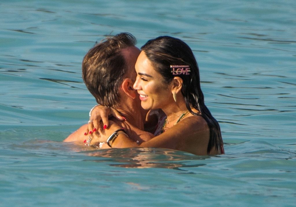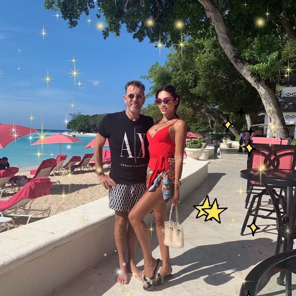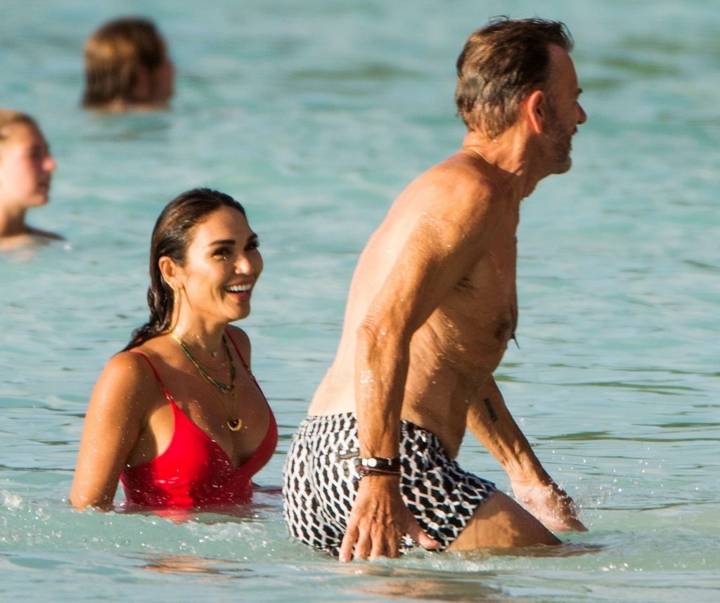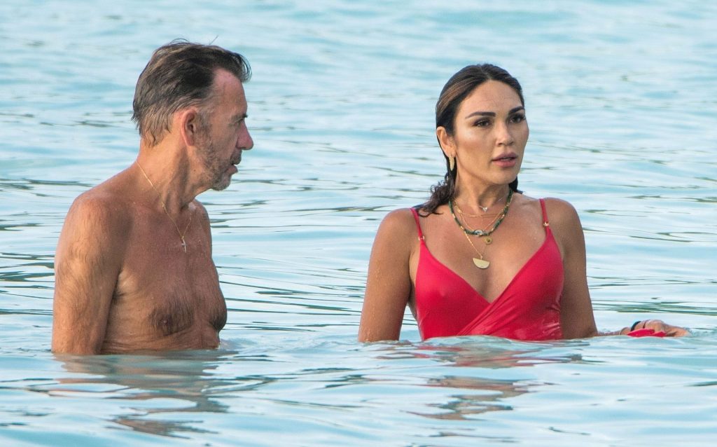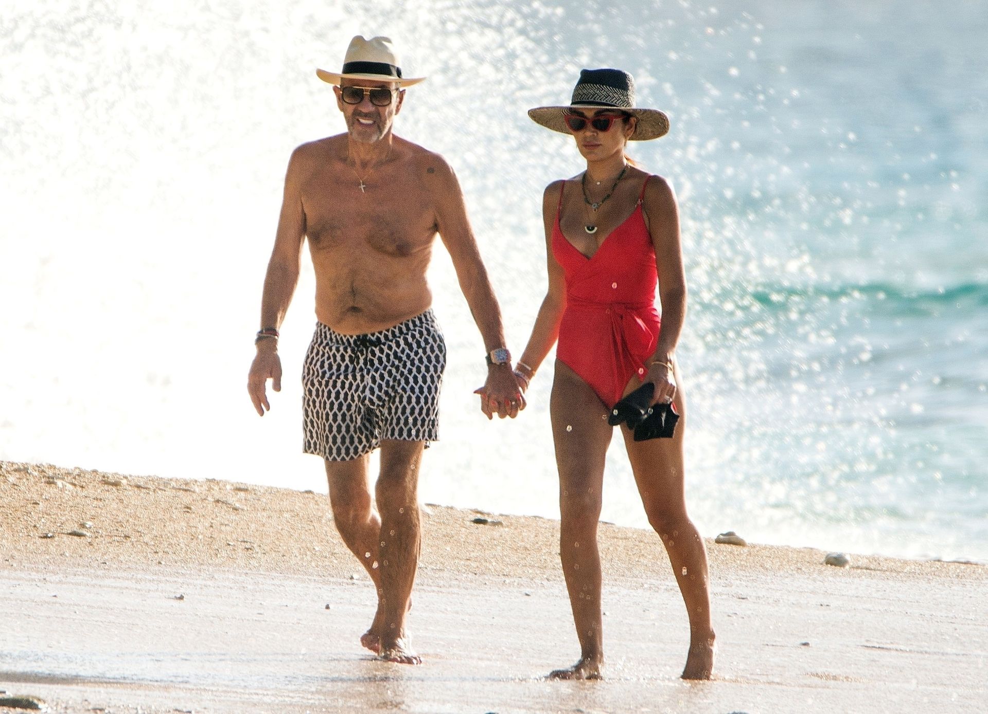 Duncan Bannatyne’s moglie Nigora, 39 anni, mostra il suo incredibile fisico con un costume da bagno rosso in stile Baywatch mentre cammina mano nella mano con il marito Duncan Bannatyne sulla spiaggia di Sandy Lane a Barbados, 25/12/2019.
