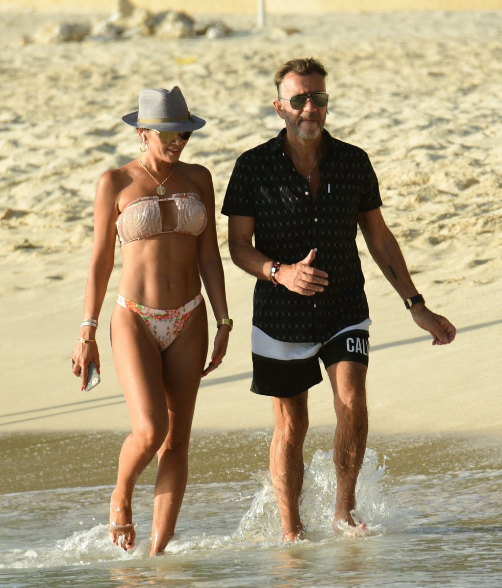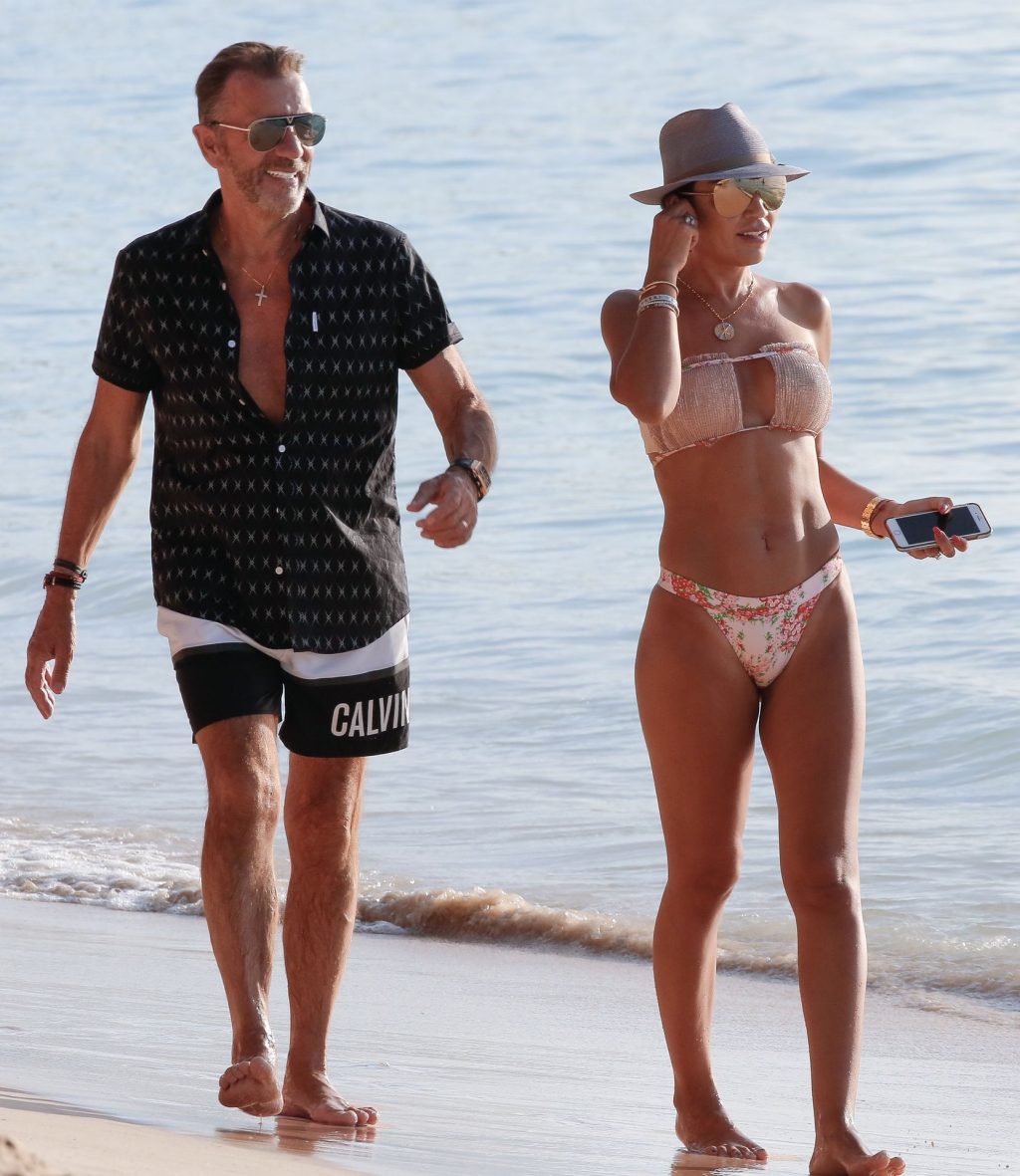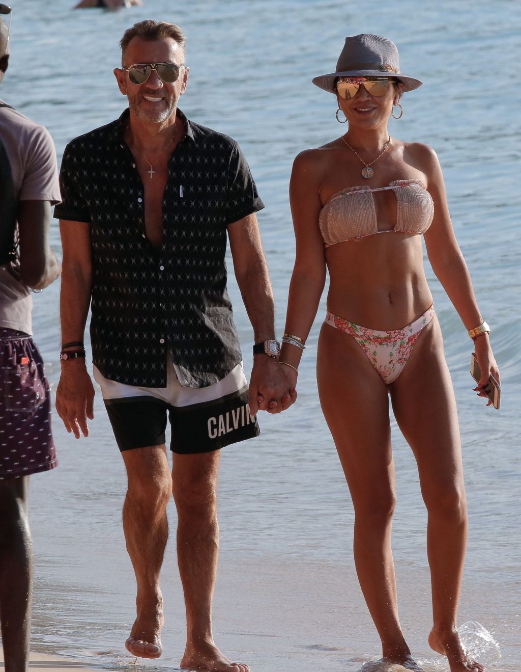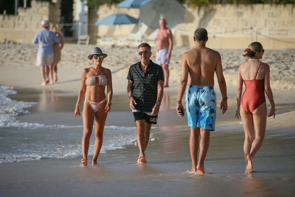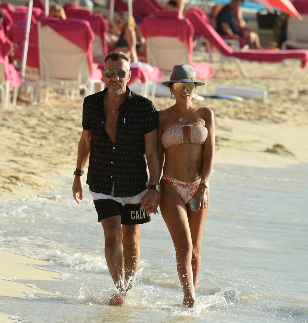 Imprenditore scozzese Duncan Bannatyne e sua moglie Nigora Bannatyne sono stati fotografati mentre si godevano la spiaggia a Barbados, 27/12/2019.
