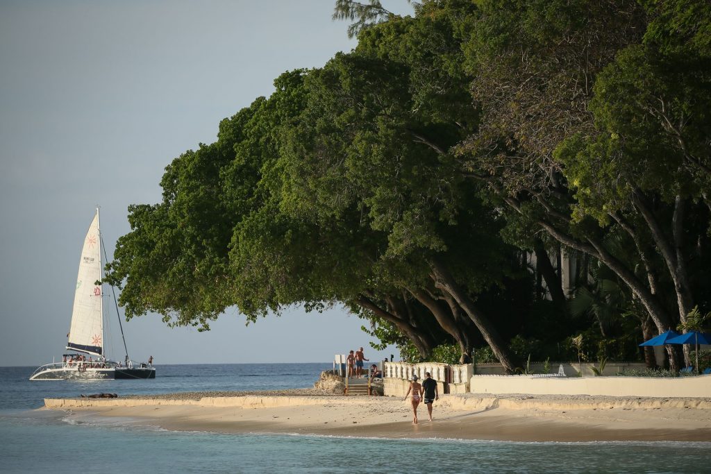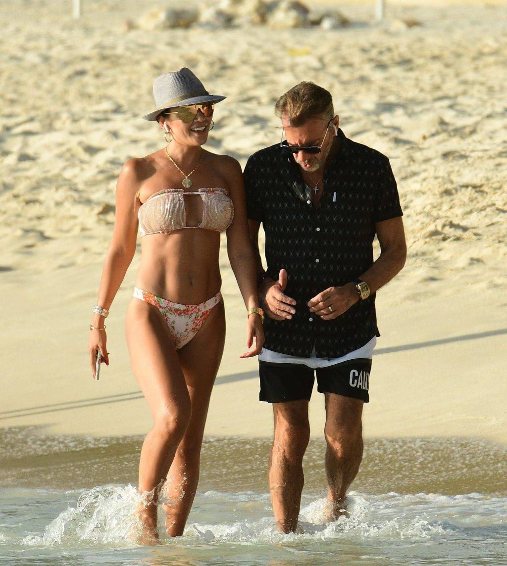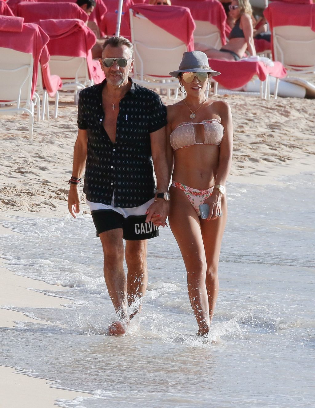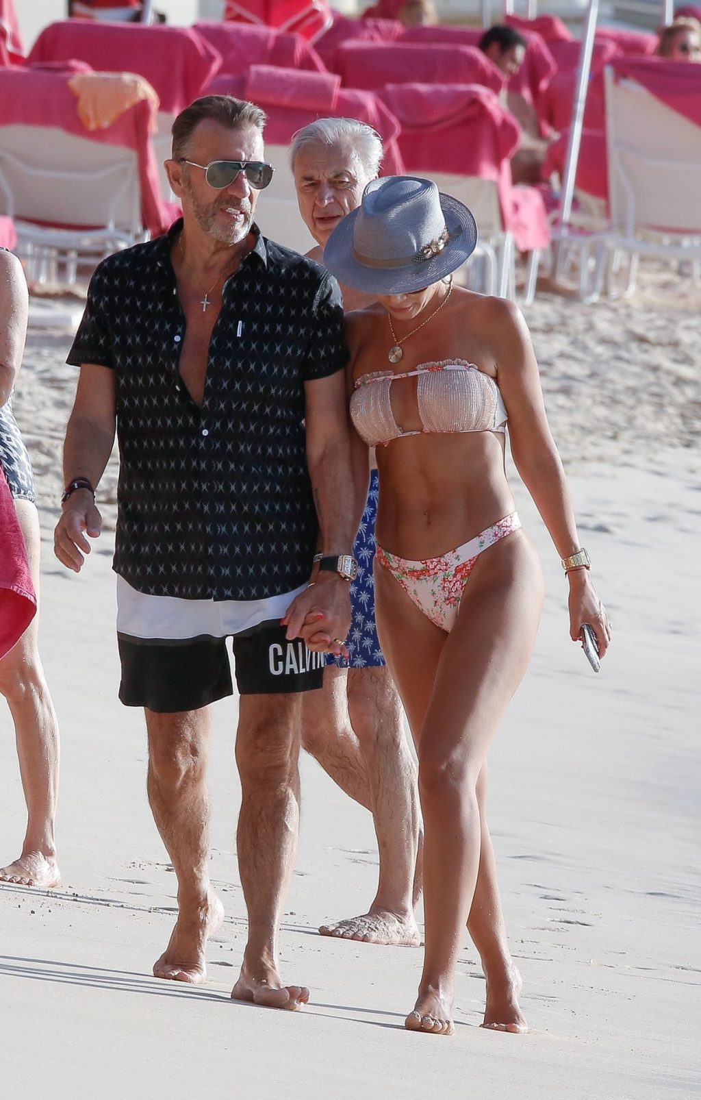 Imprenditore scozzese Duncan Bannatyne e sua moglie Nigora Bannatyne sono stati fotografati mentre si godevano la spiaggia a Barbados, 27/12/2019.