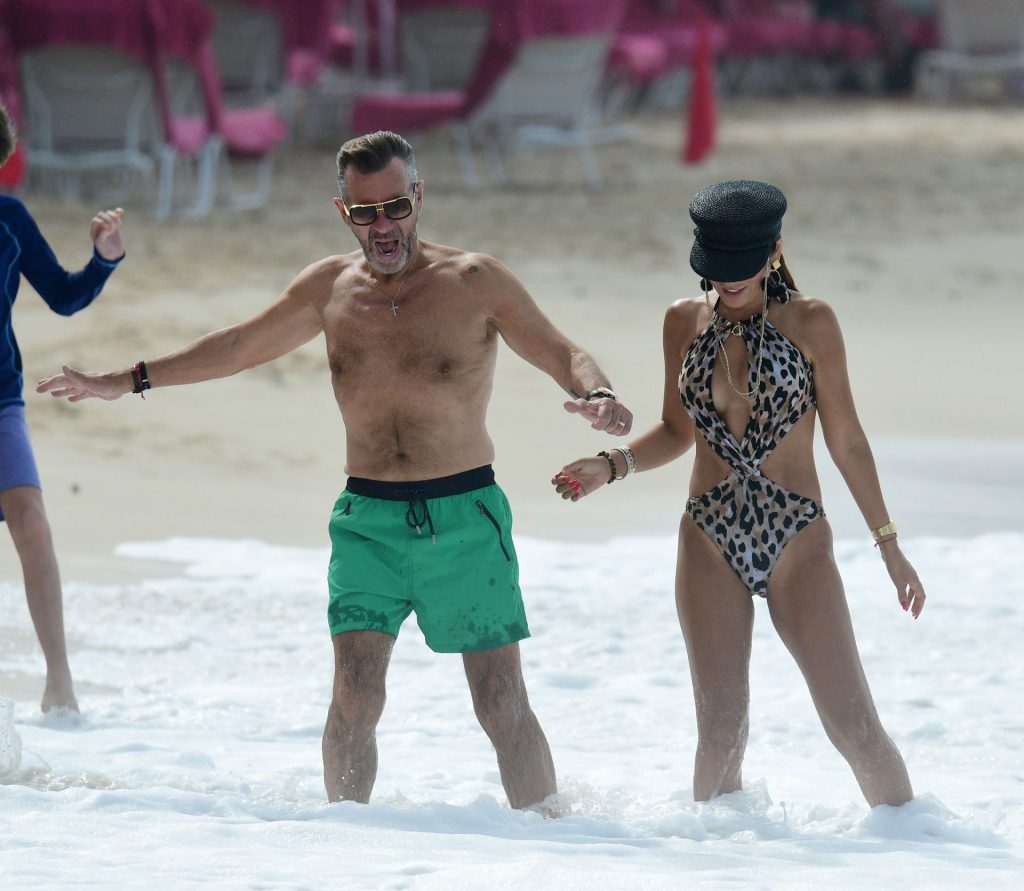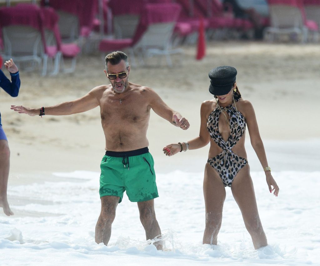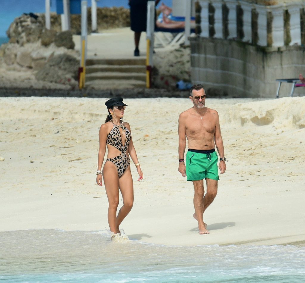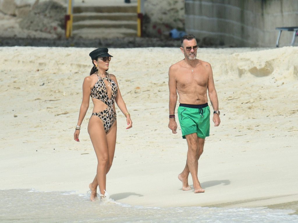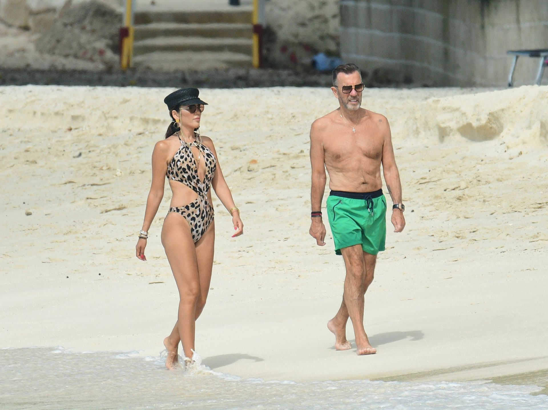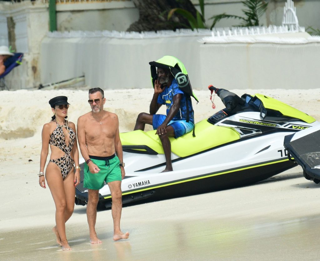 Imprenditore scozzese, Duncan Bannatyne e sua moglie Nigora Bannatyne fanno un figurone sulla spiaggia e si divertono al sole durante una vacanza a Barbados, 29/12/2019.