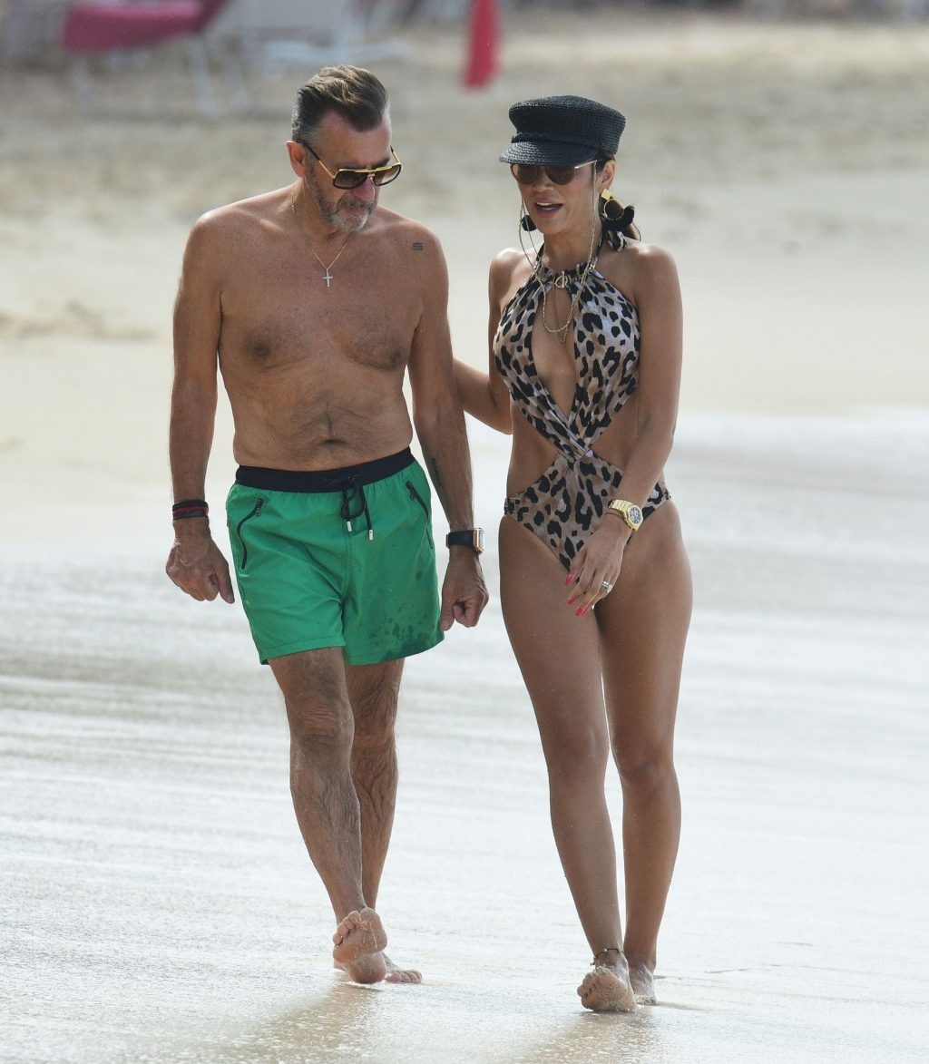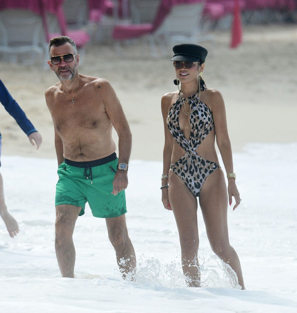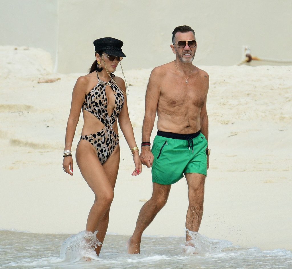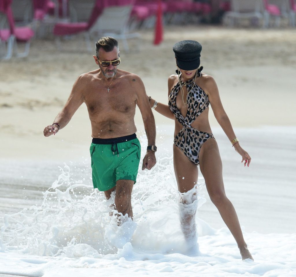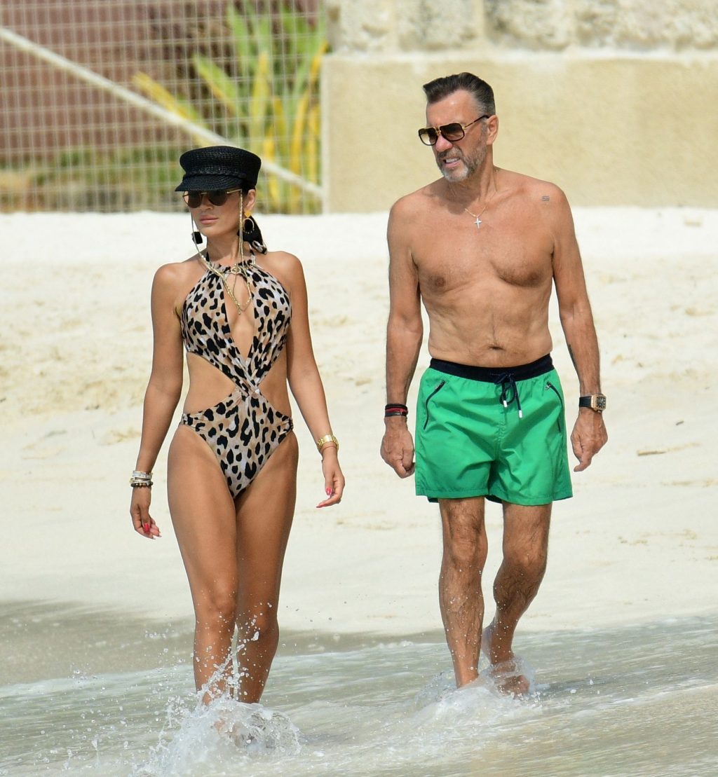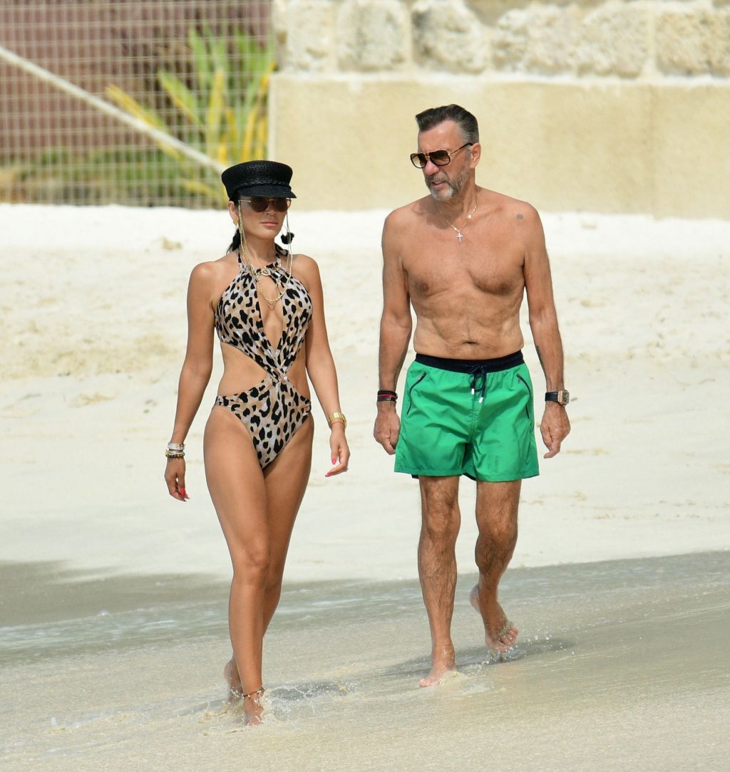 Imprenditore scozzese, Duncan Bannatyne e sua moglie Nigora Bannatyne fanno un figurone sulla spiaggia e si divertono al sole durante una vacanza a Barbados, 29/12/2019.