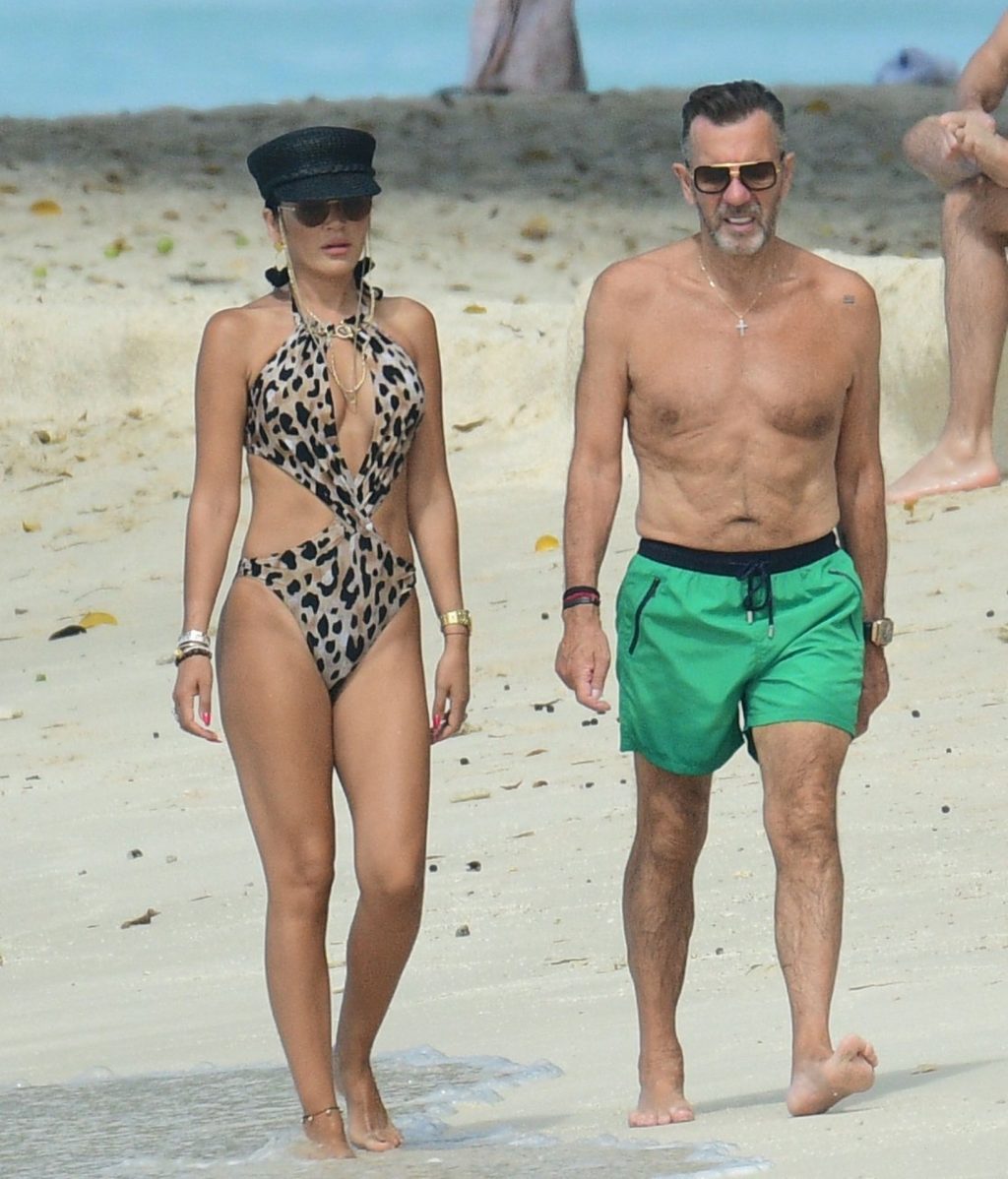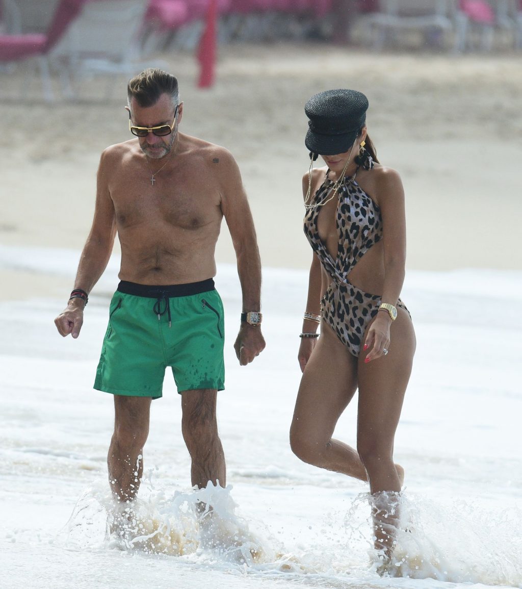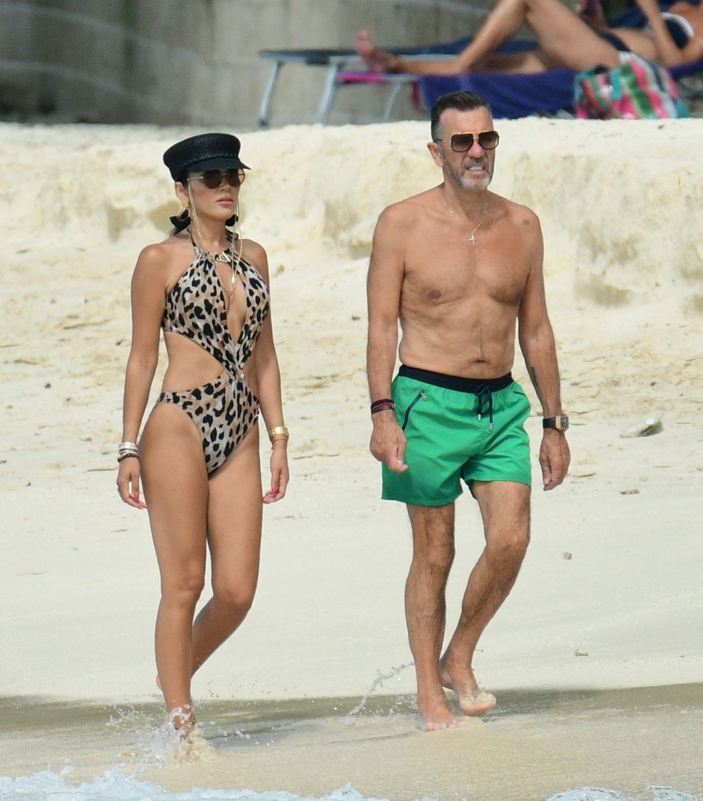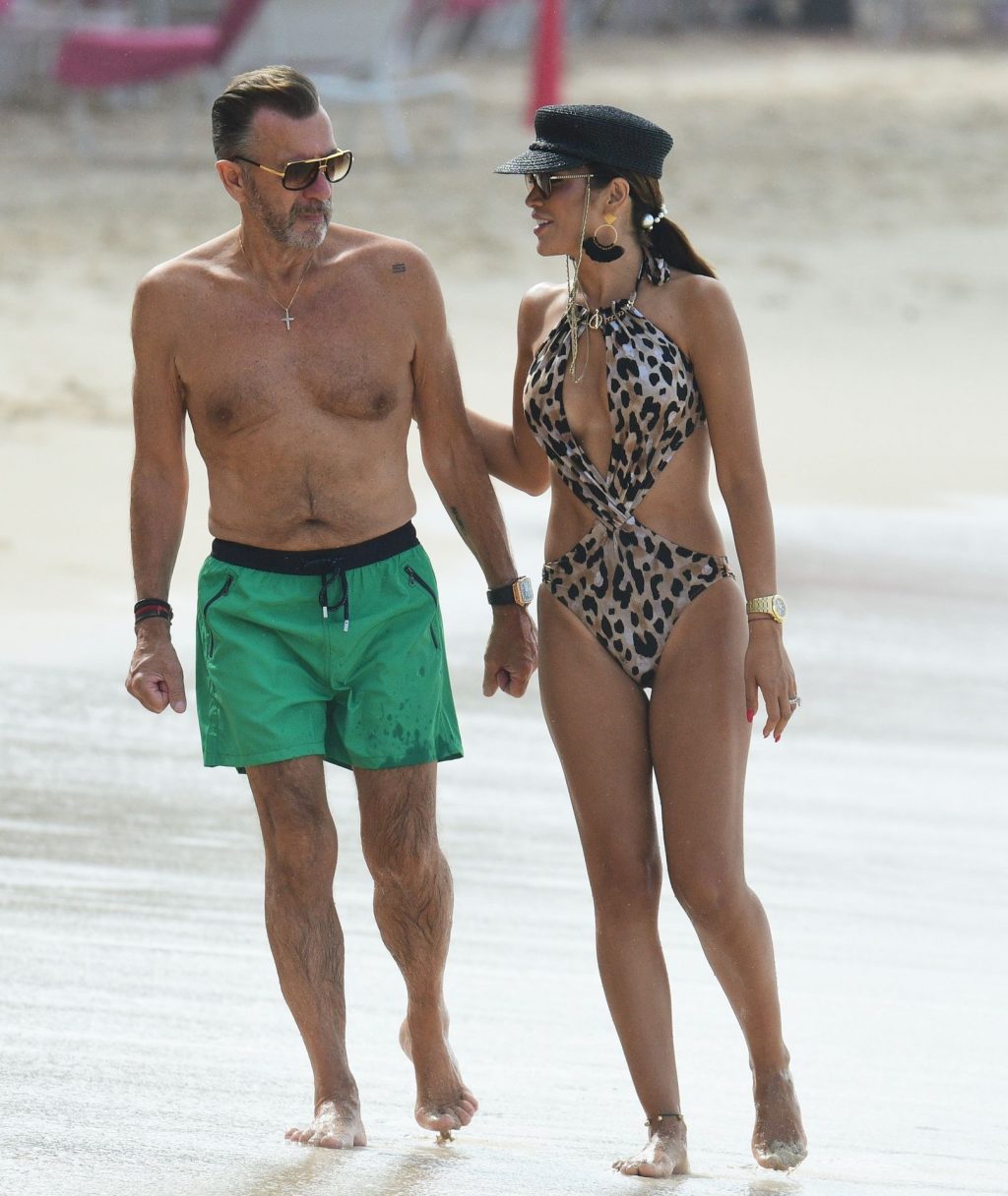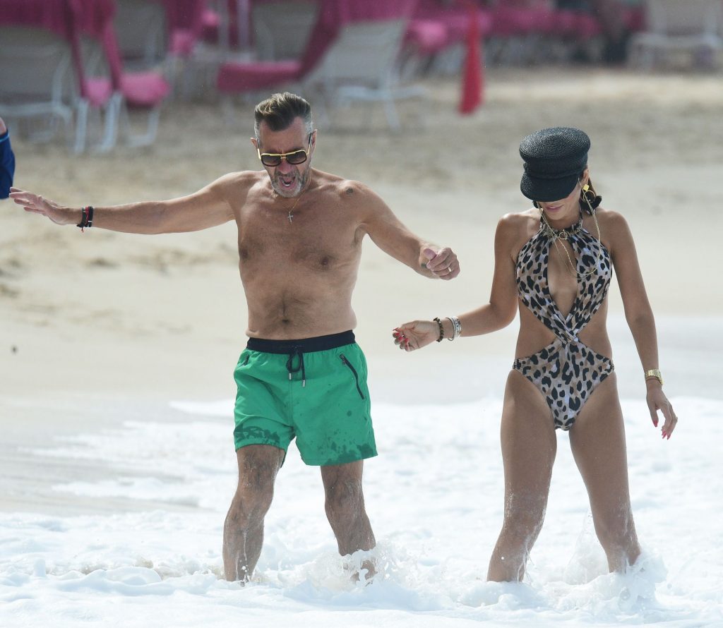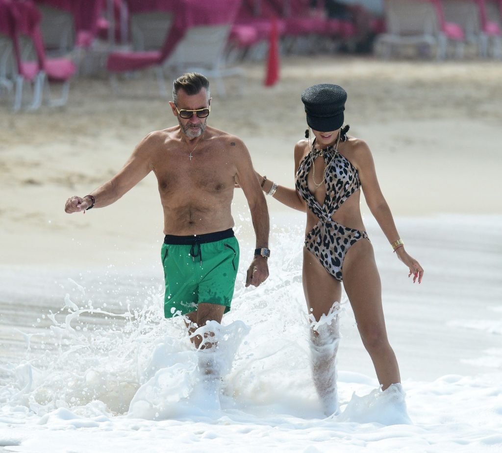 Imprenditore scozzese, Duncan Bannatyne e sua moglie Nigora Bannatyne fanno un figurone sulla spiaggia e si divertono al sole durante una vacanza a Barbados, 29/12/2019.