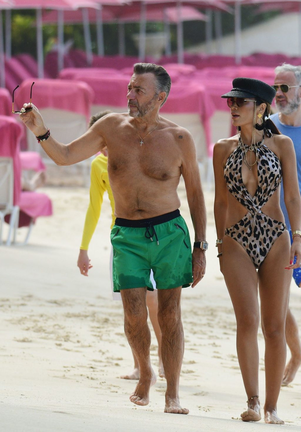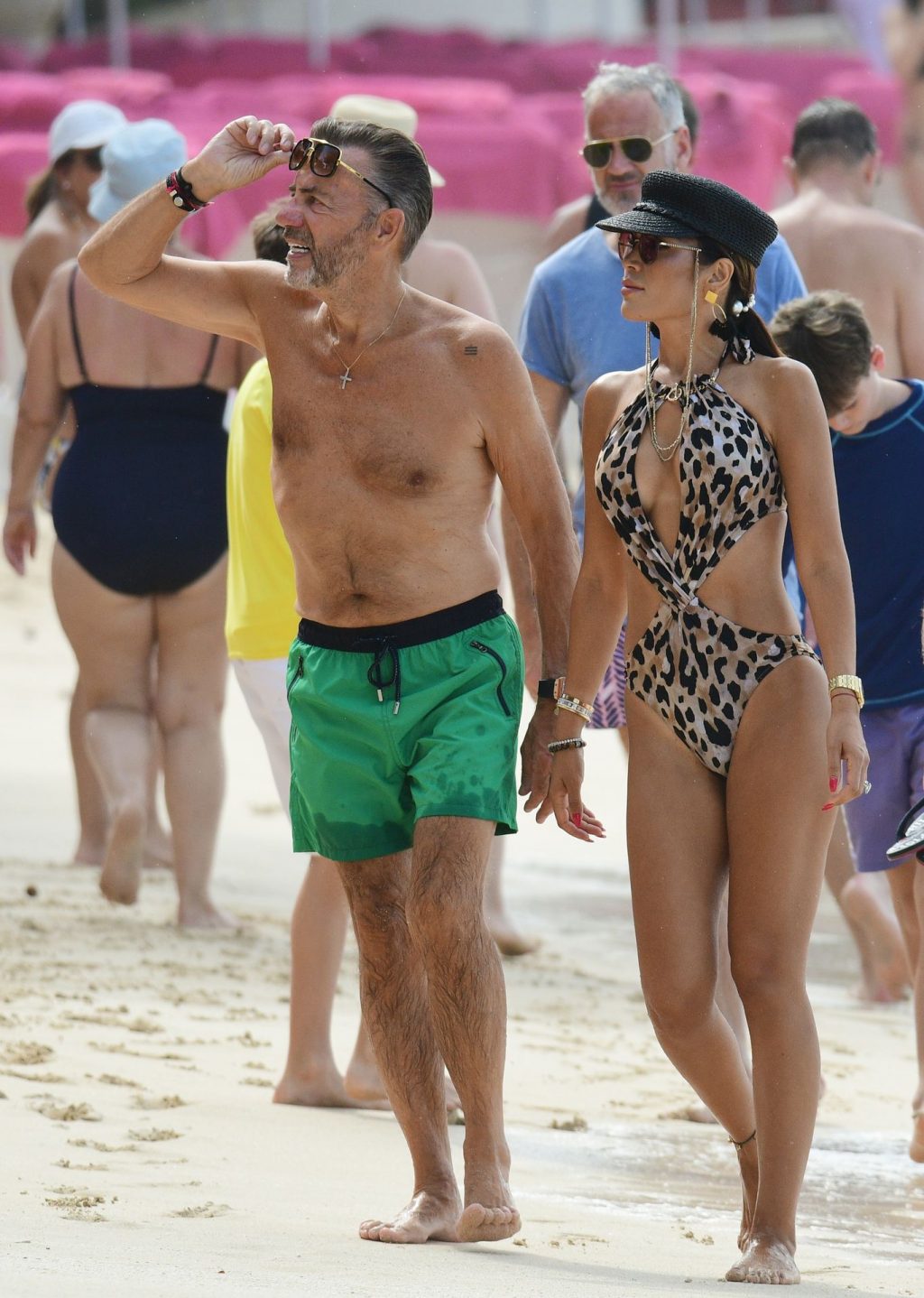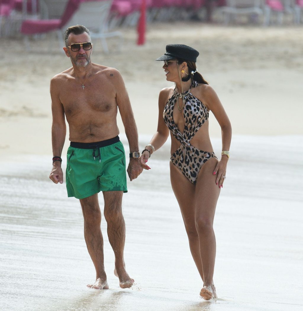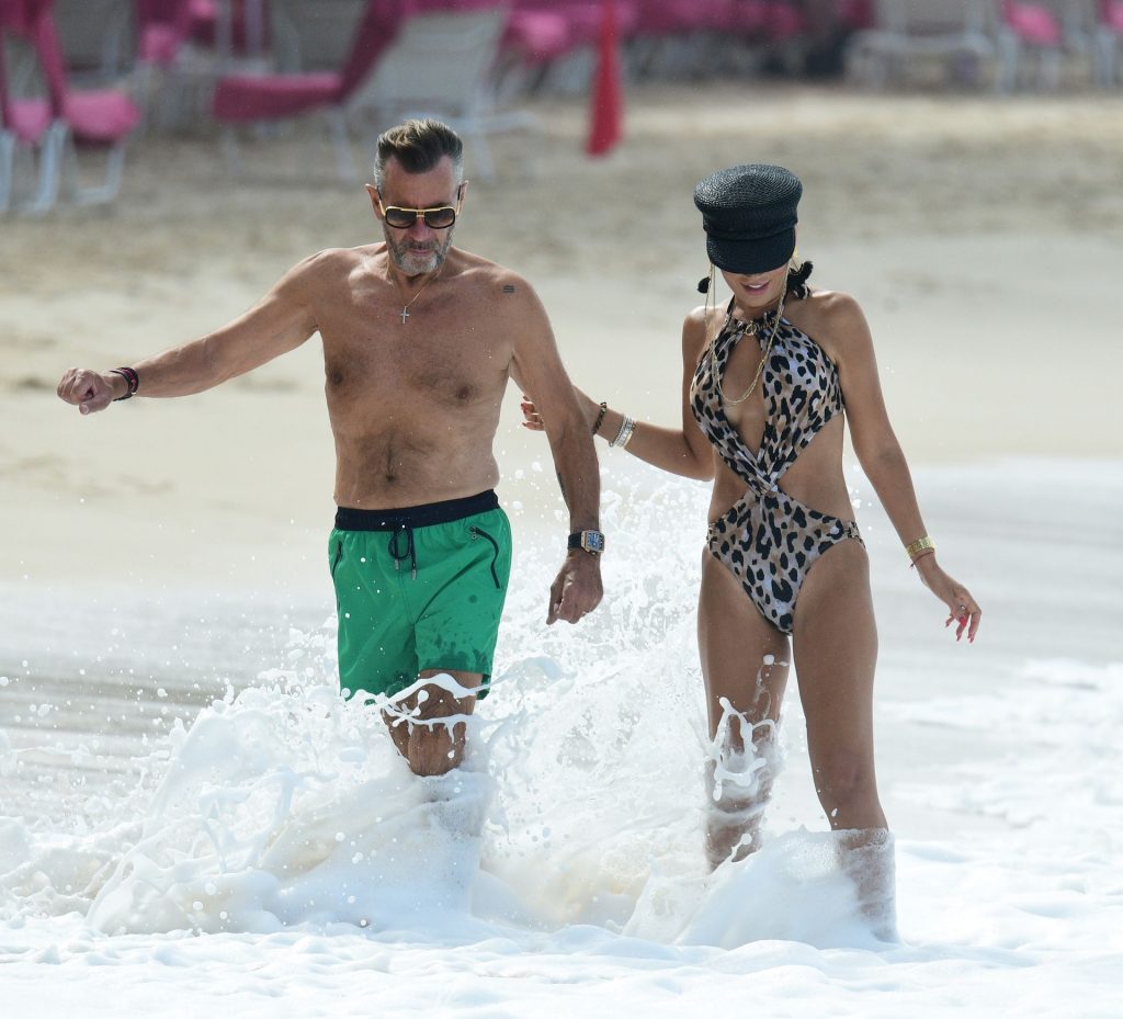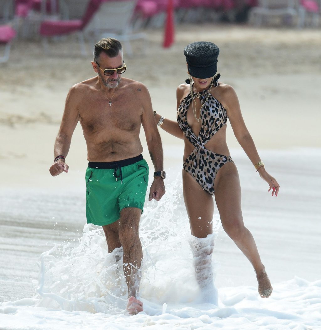 Imprenditore scozzese, Duncan Bannatyne e sua moglie Nigora Bannatyne fanno un figurone sulla spiaggia e si divertono al sole durante una vacanza a Barbados, 29/12/2019.