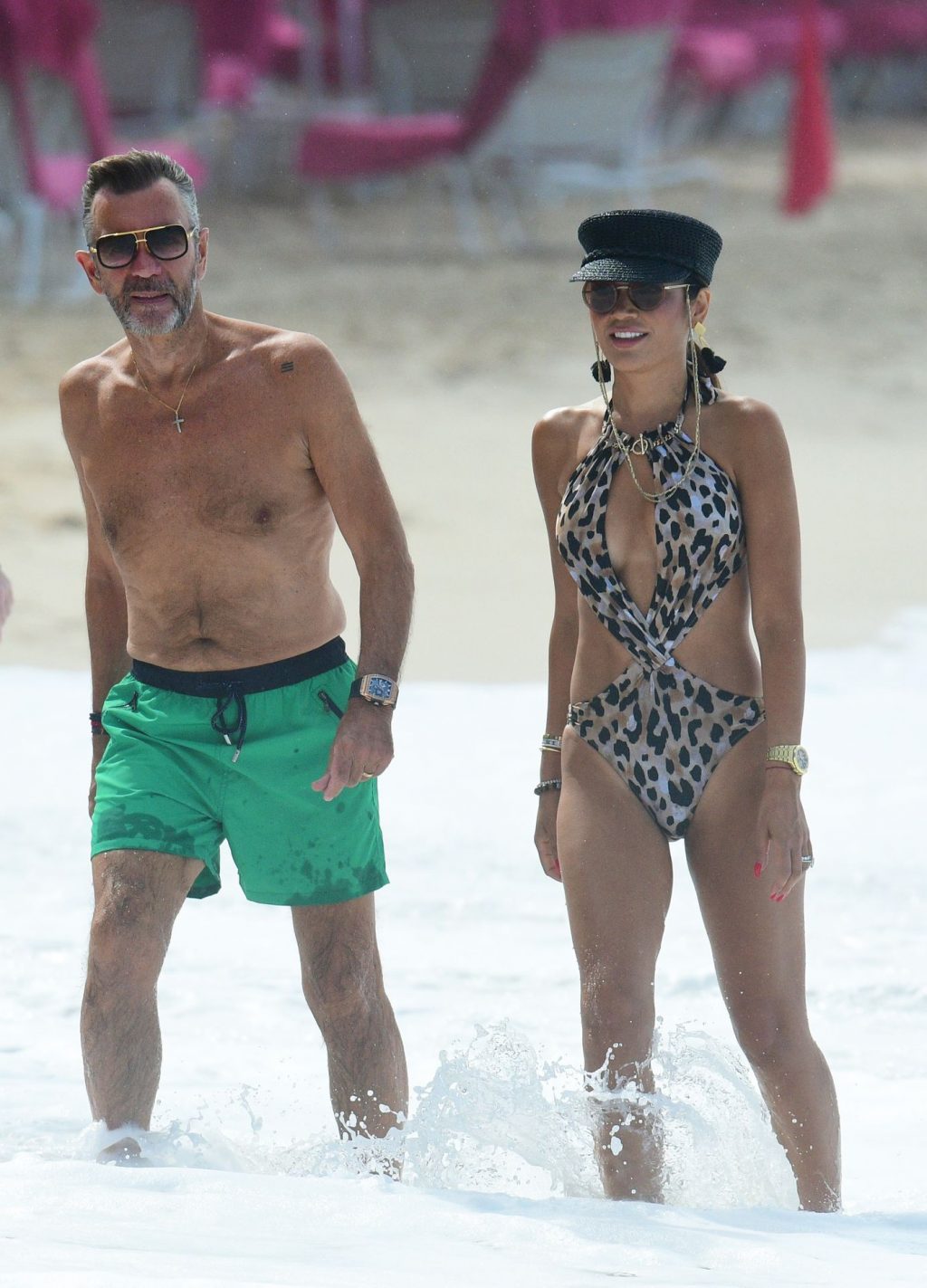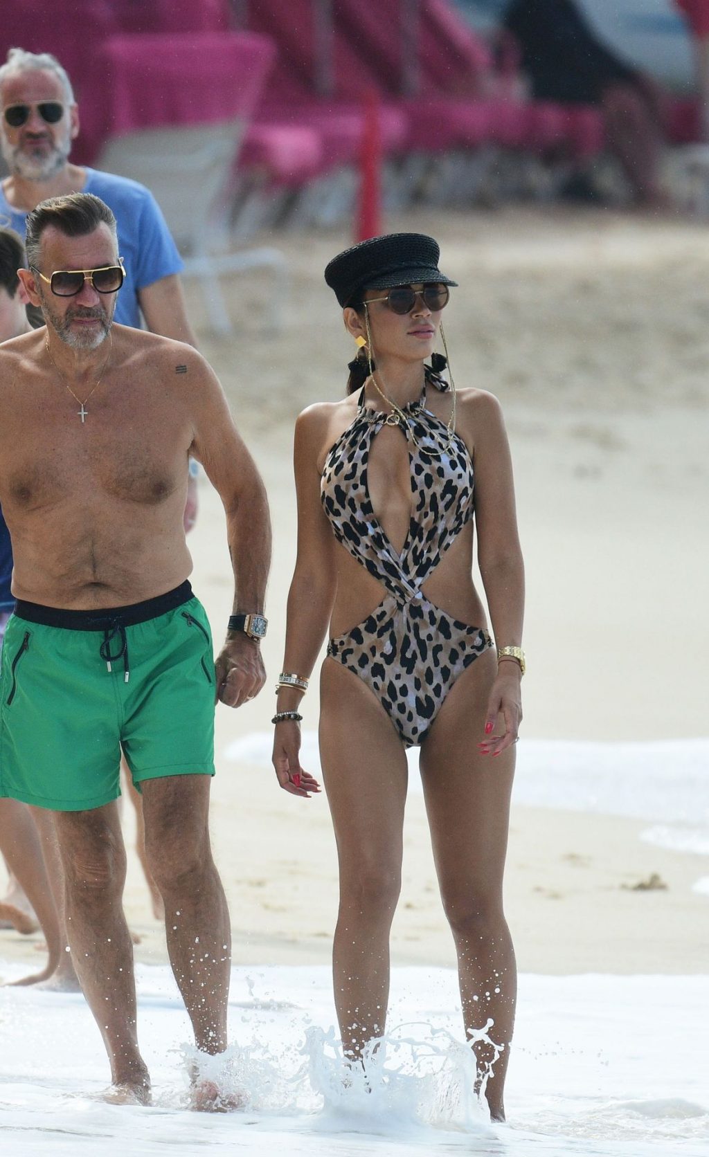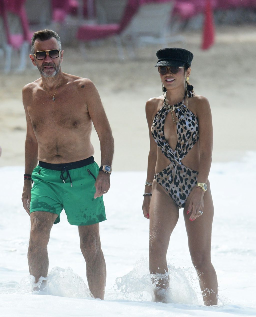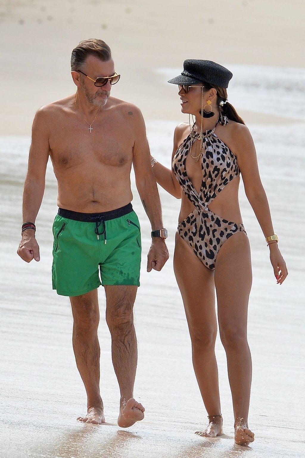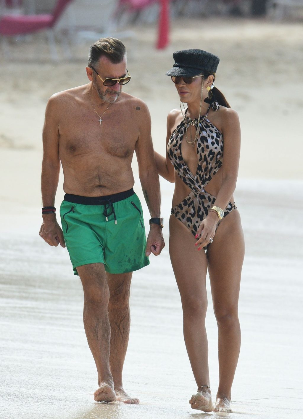 Imprenditore scozzese, Duncan Bannatyne e sua moglie Nigora Bannatyne fanno un figurone sulla spiaggia e si divertono al sole durante una vacanza a Barbados, 29/12/2019.