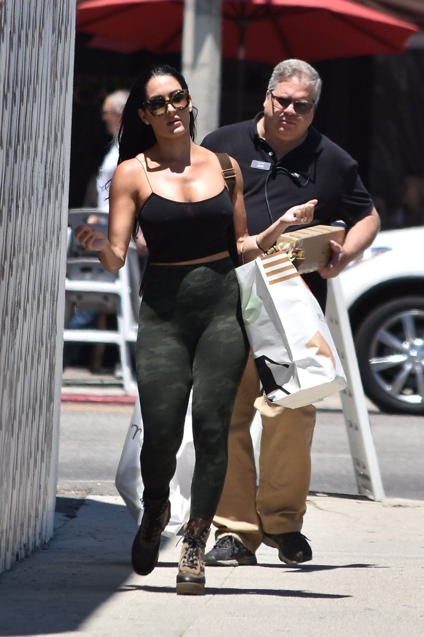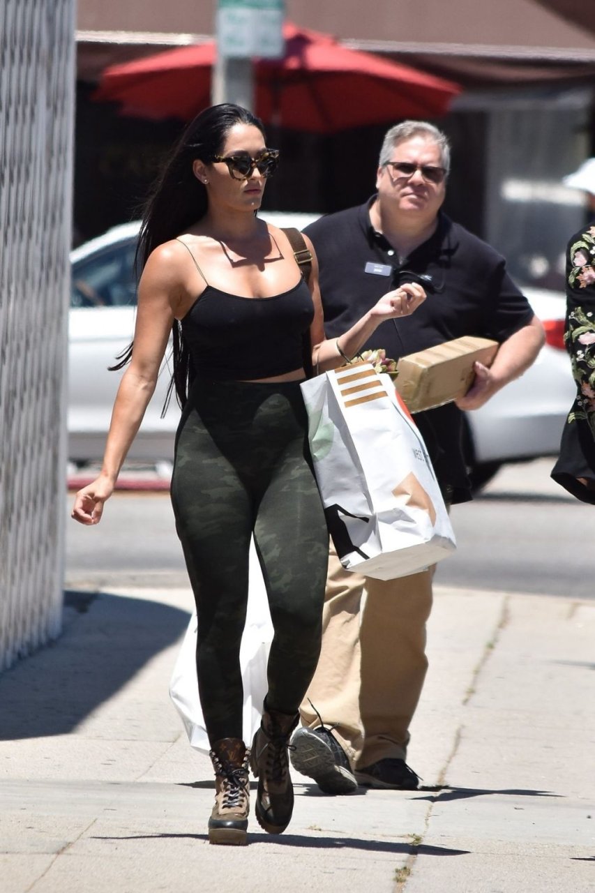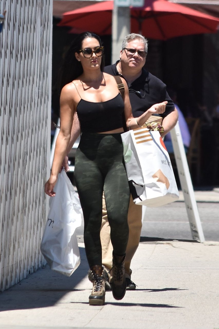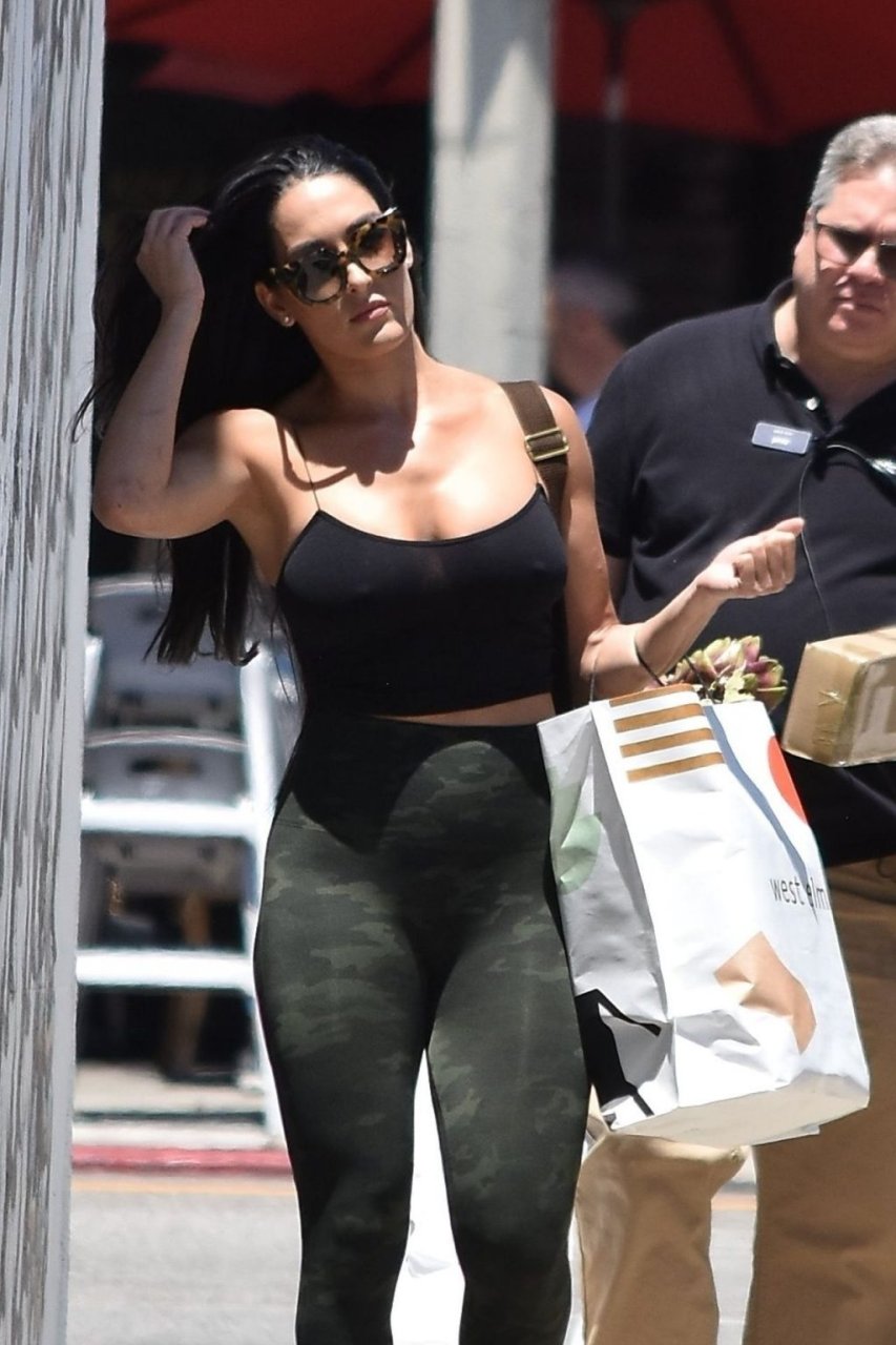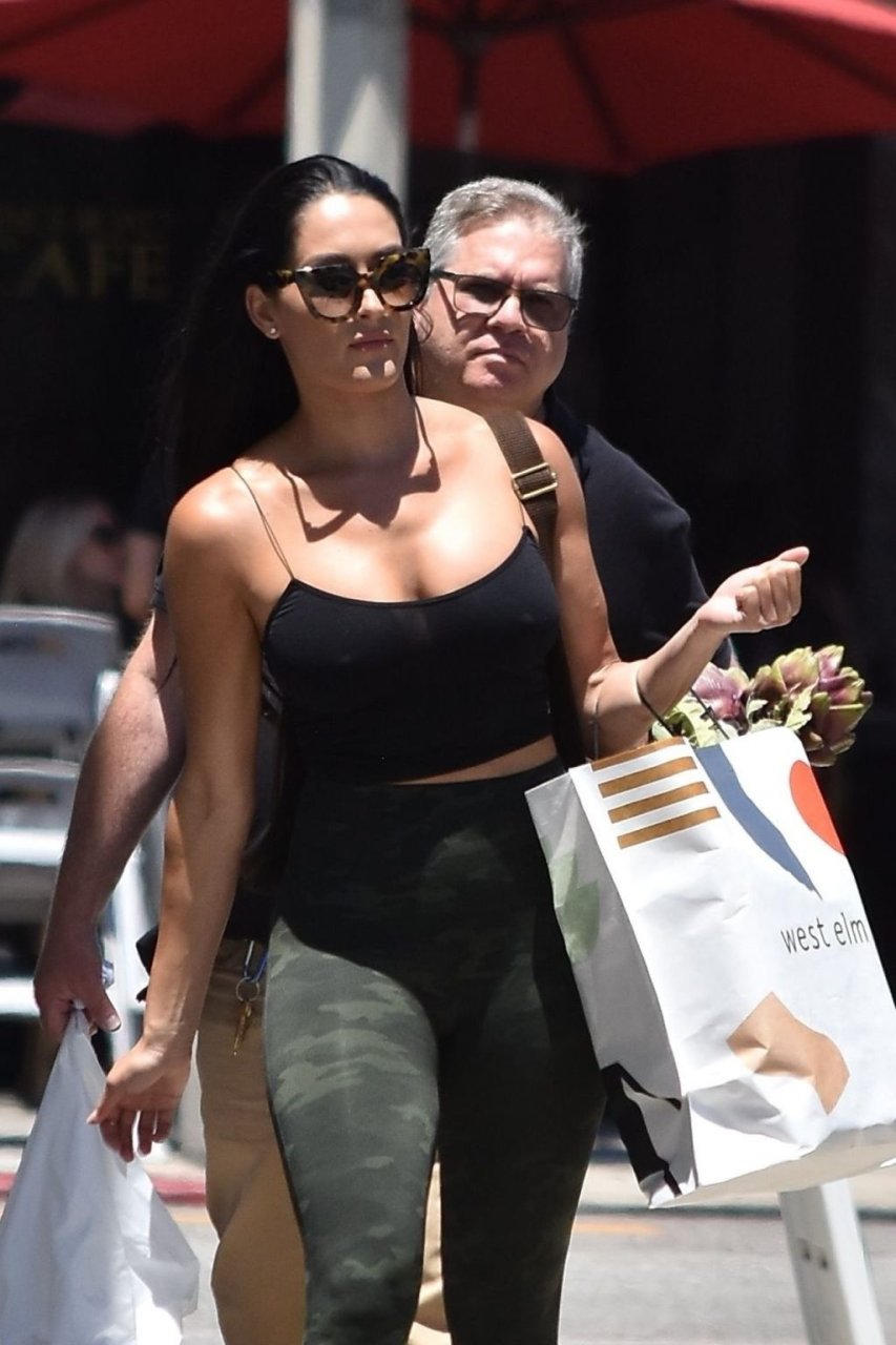 Nikki Bella è stata vista fare shopping di mobili a West Hollywood, 27/07/2019. La star della WWE ha mostrato il suo seno indossando un top sportivo nero senza reggiseno.